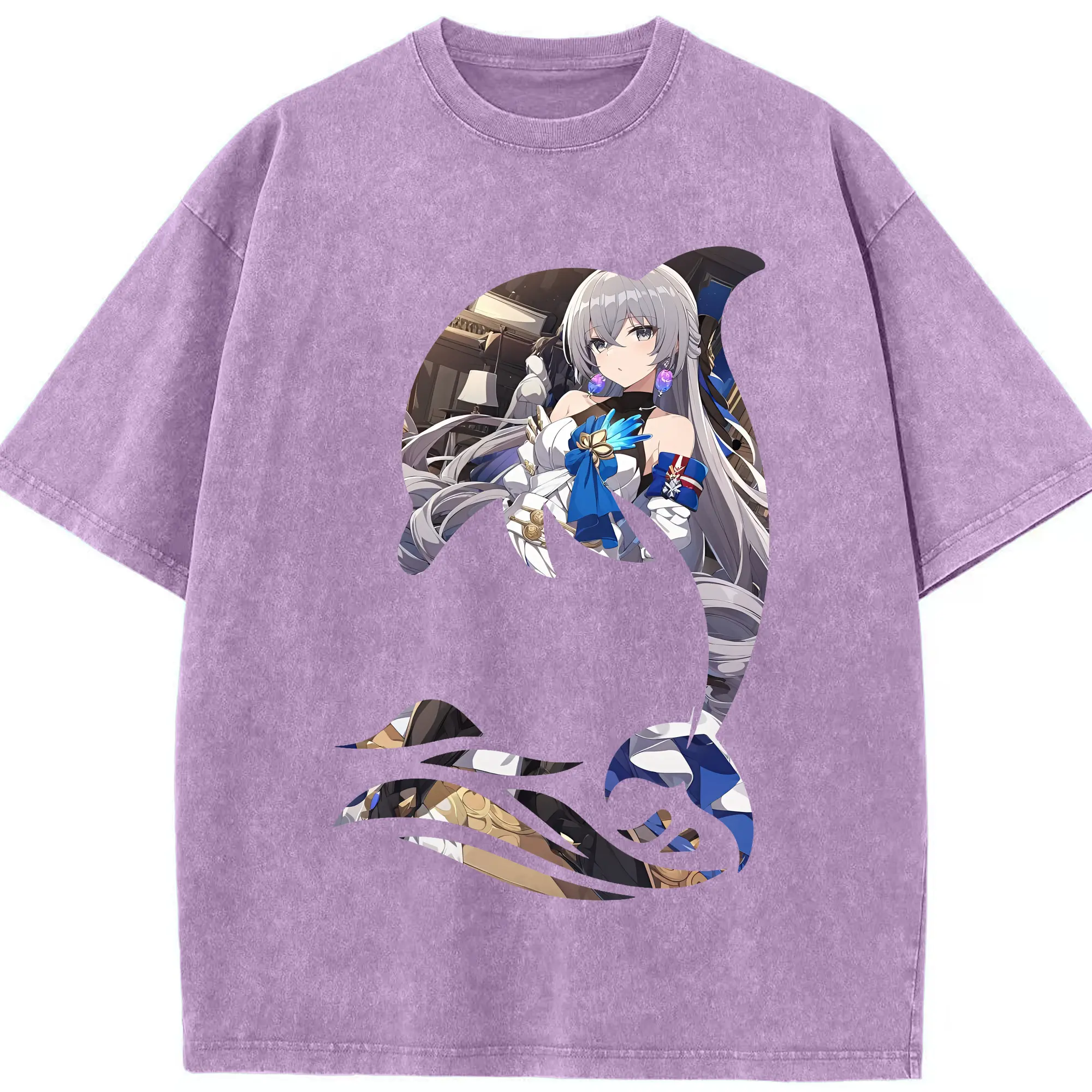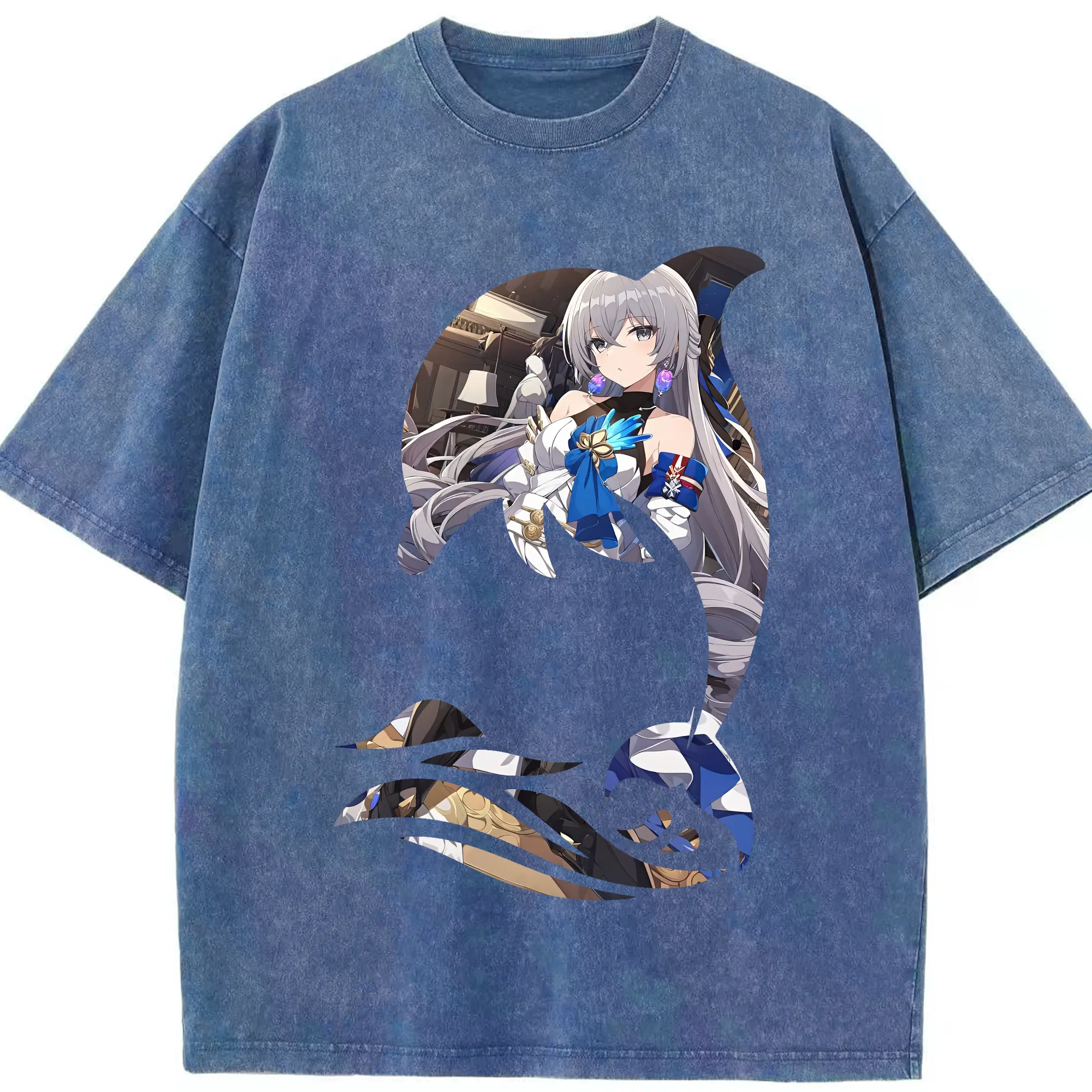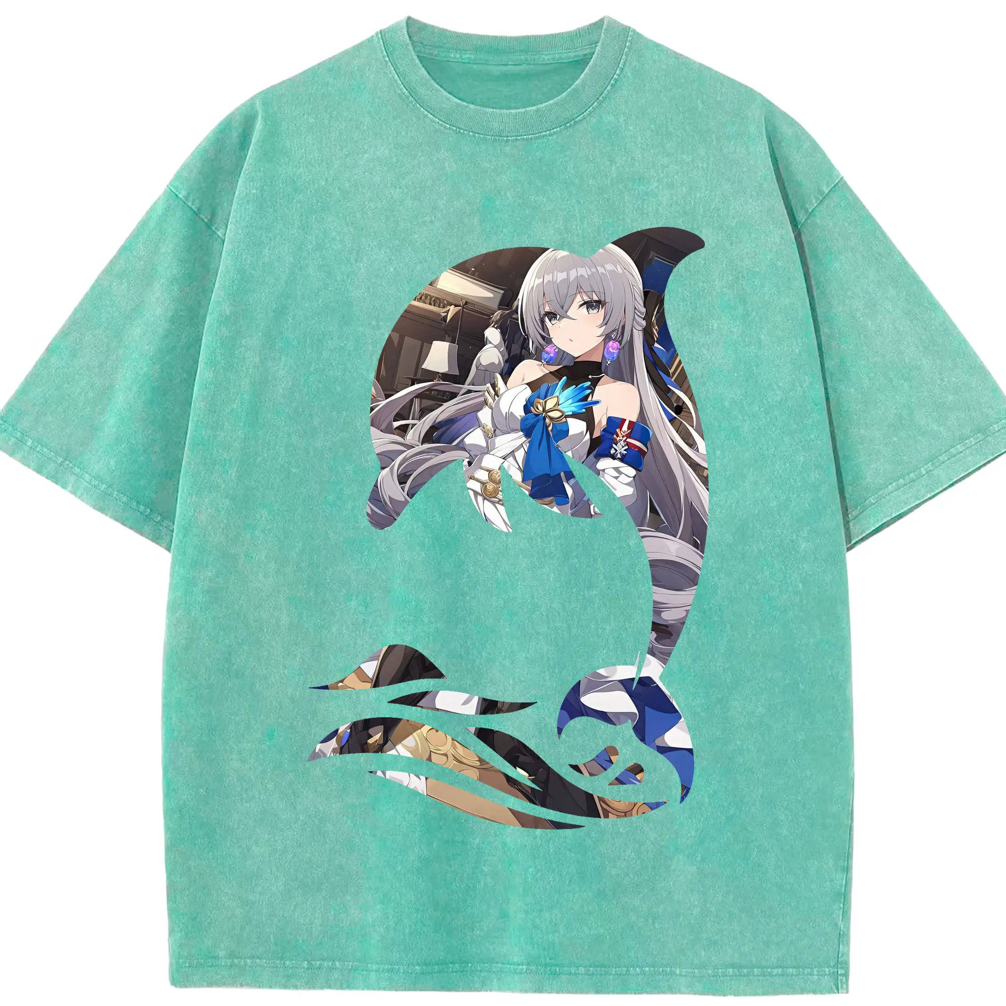 崩壊:スターレイル グッズ ブローニャ - 綿100% ヴィンテージ風 半袖Tシャツ ・ 背面プリント ・ 柔らか肌触り ・ 通気性 快適 ・ スポーツ カジュアル 外出用