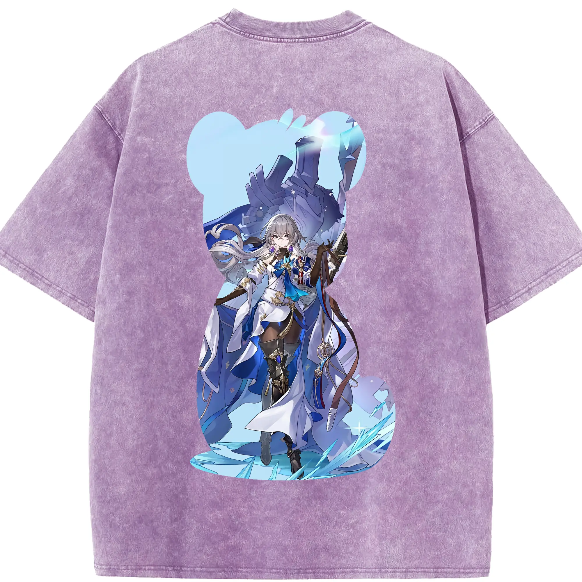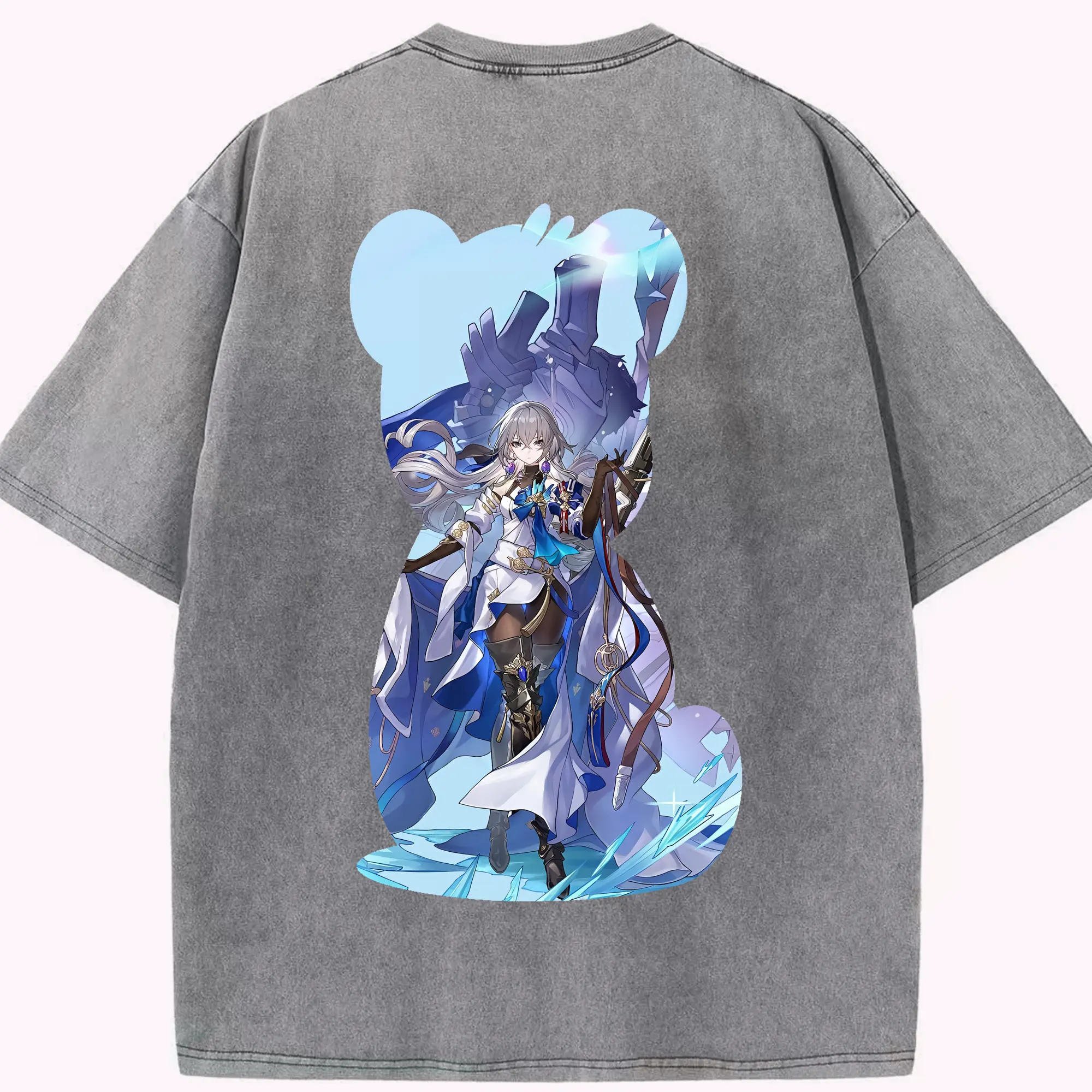 崩壊:スターレイル グッズ ブローニャ - 綿100% ヴィンテージ風 半袖Tシャツ ・ フロントプリント ・ 柔らか肌触り ・ 通気性 快適 ・ スポーツ カジュアル 外出用
