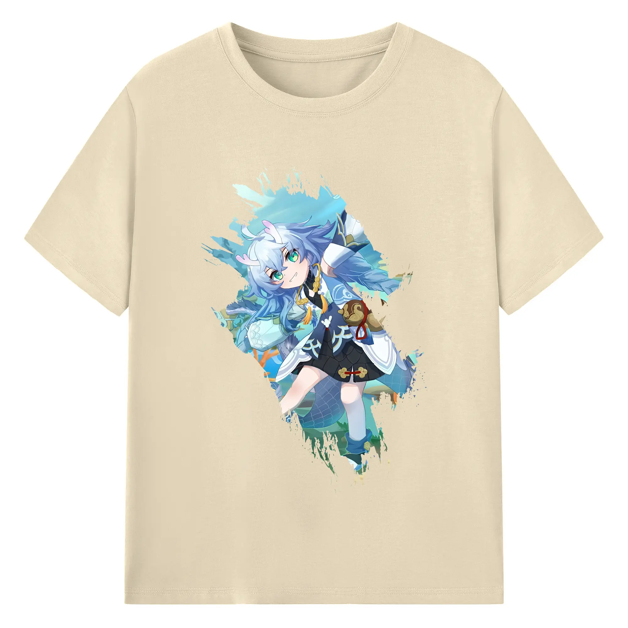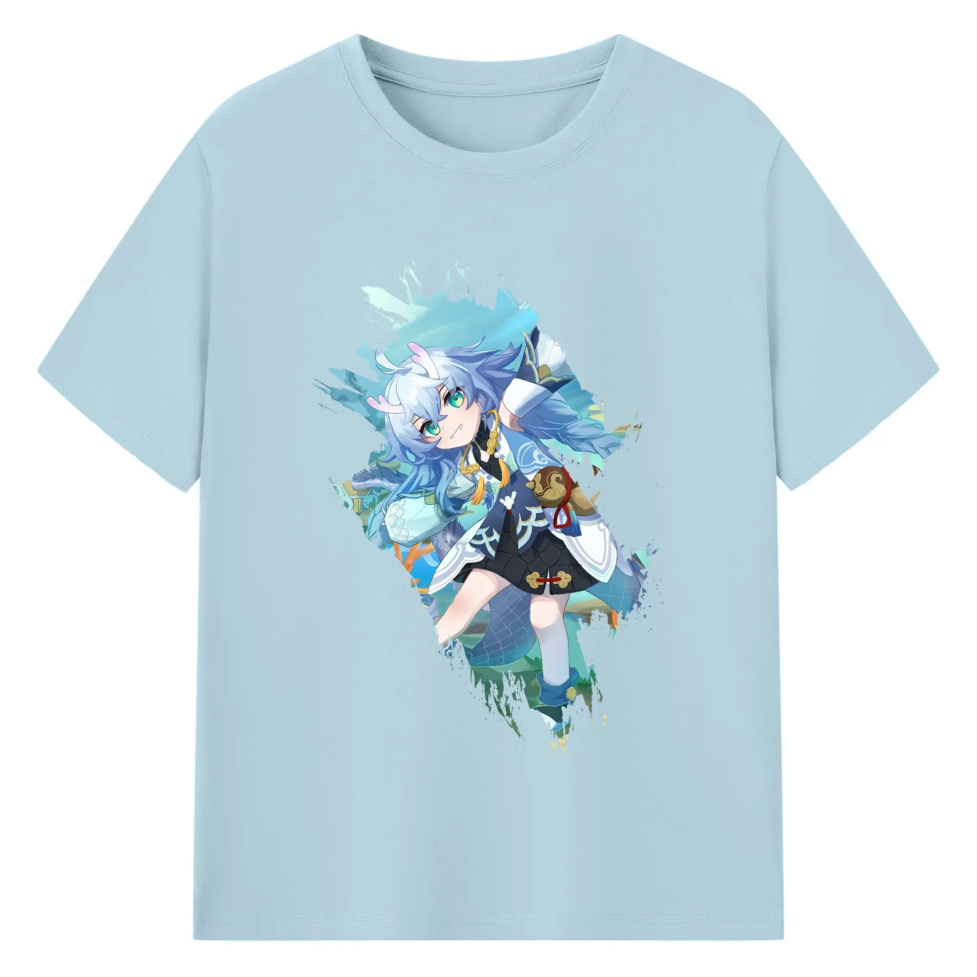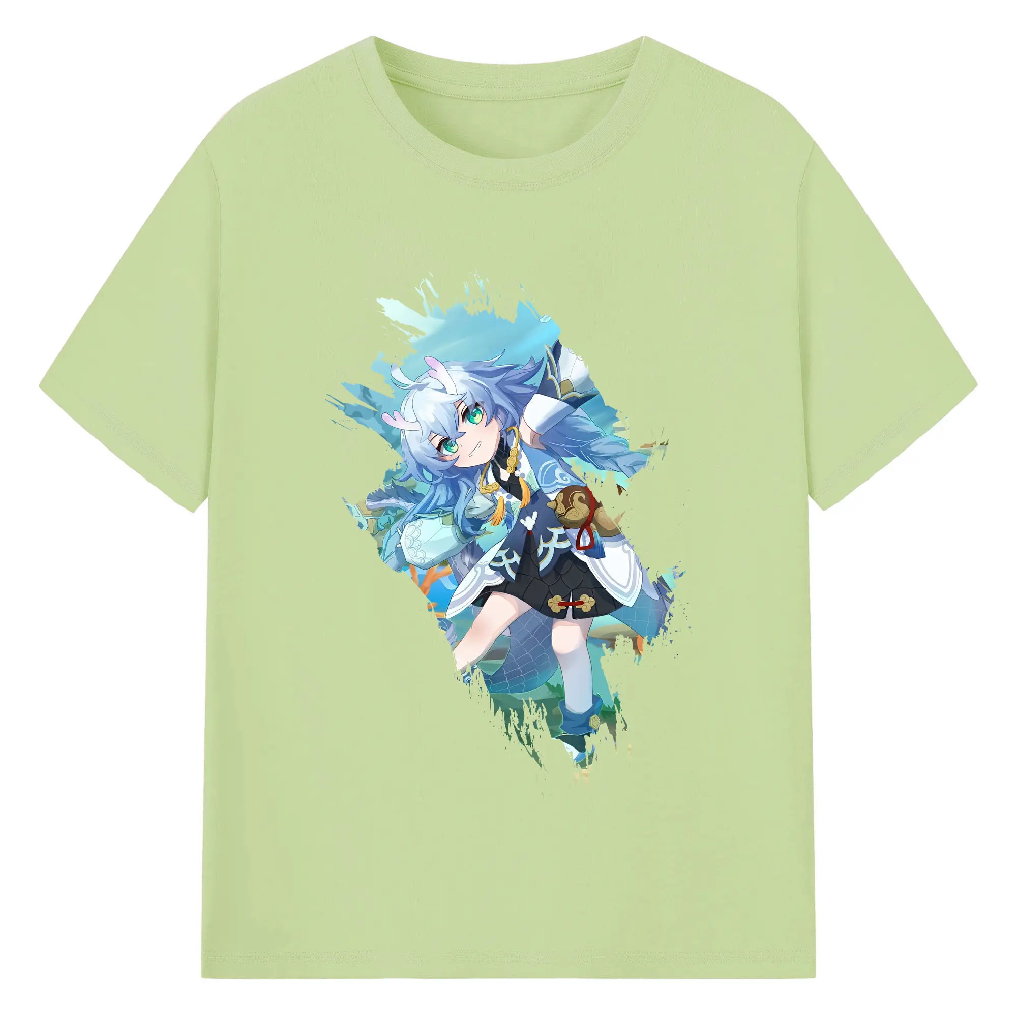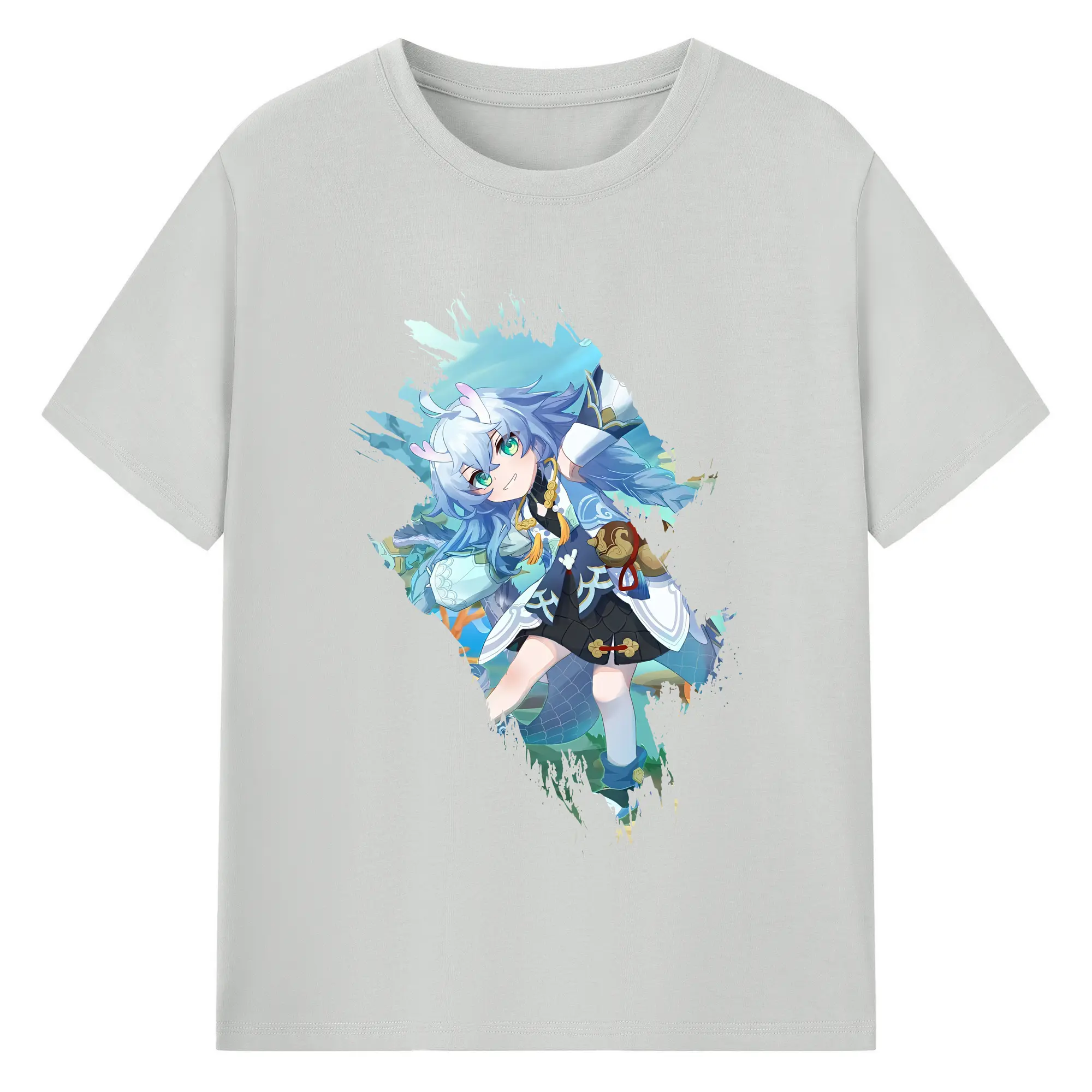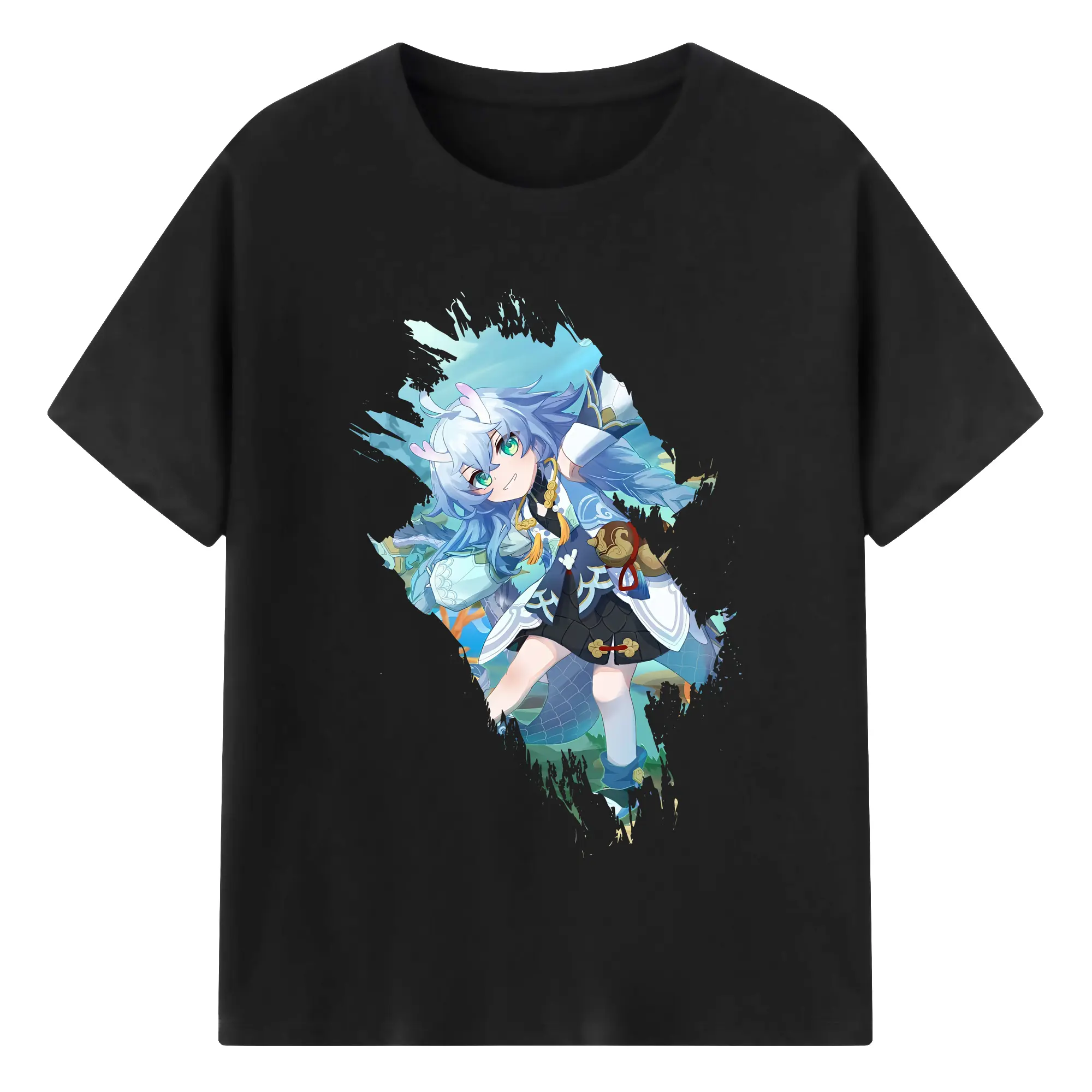崩壊:スターレイル グッズ 白露 - 綿100% ヴィンテージ風 半袖Tシャツ ・ フロントプリント ・ 柔らか肌触り ・ 通気性 快適 ・ スポーツ カジュアル 外出用