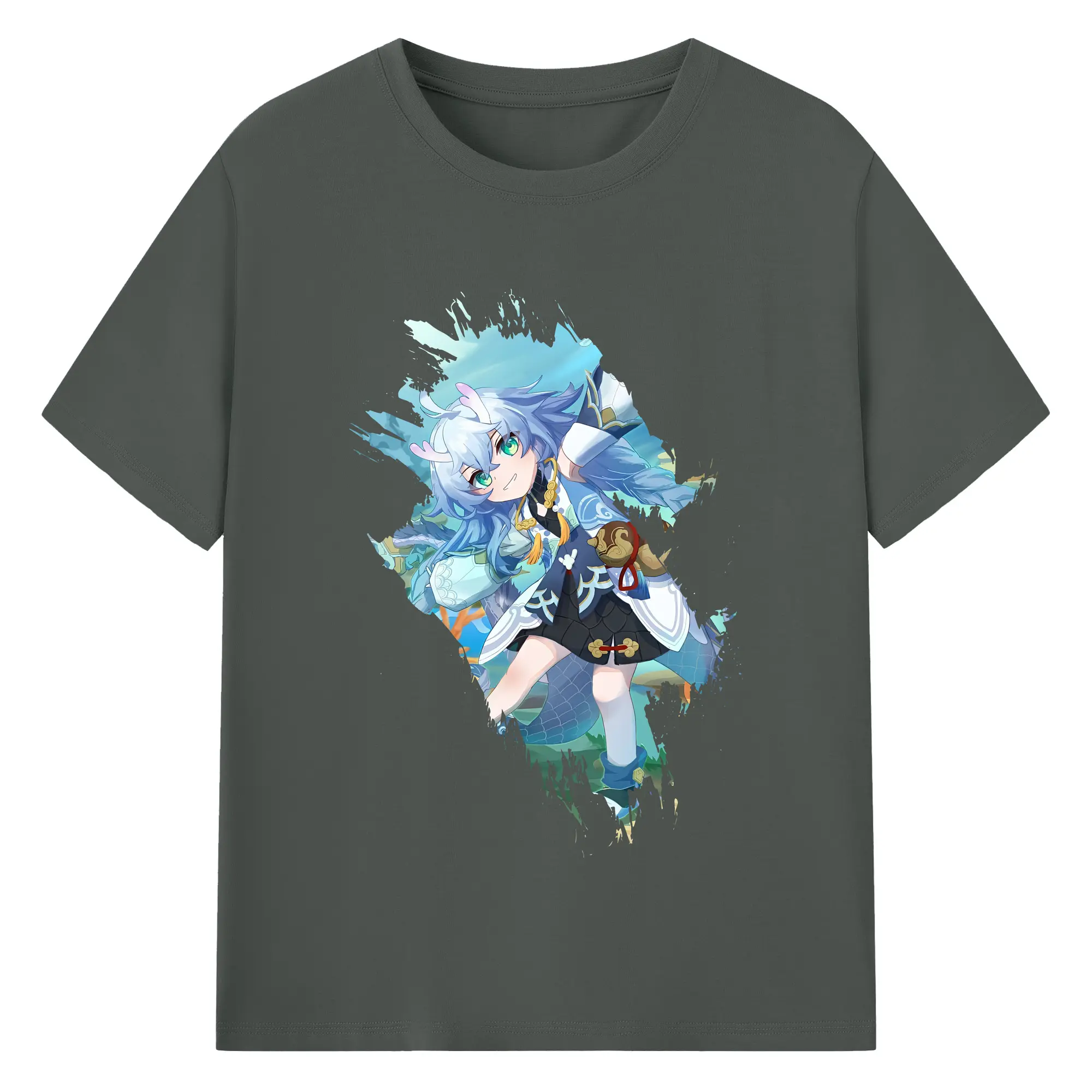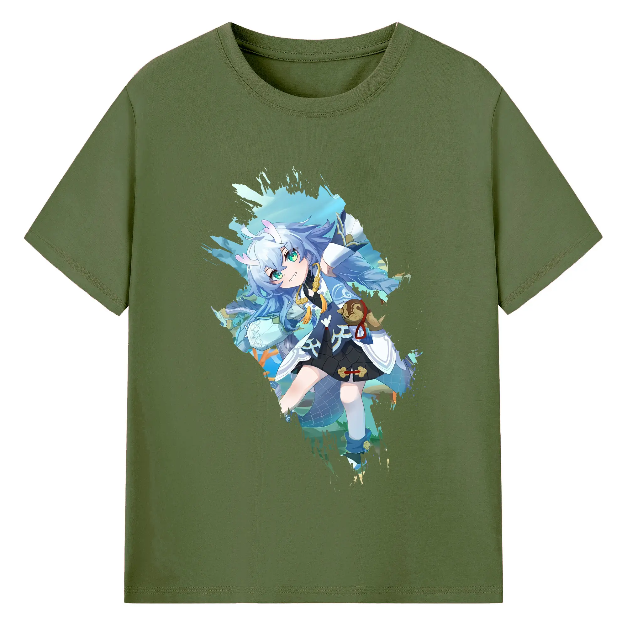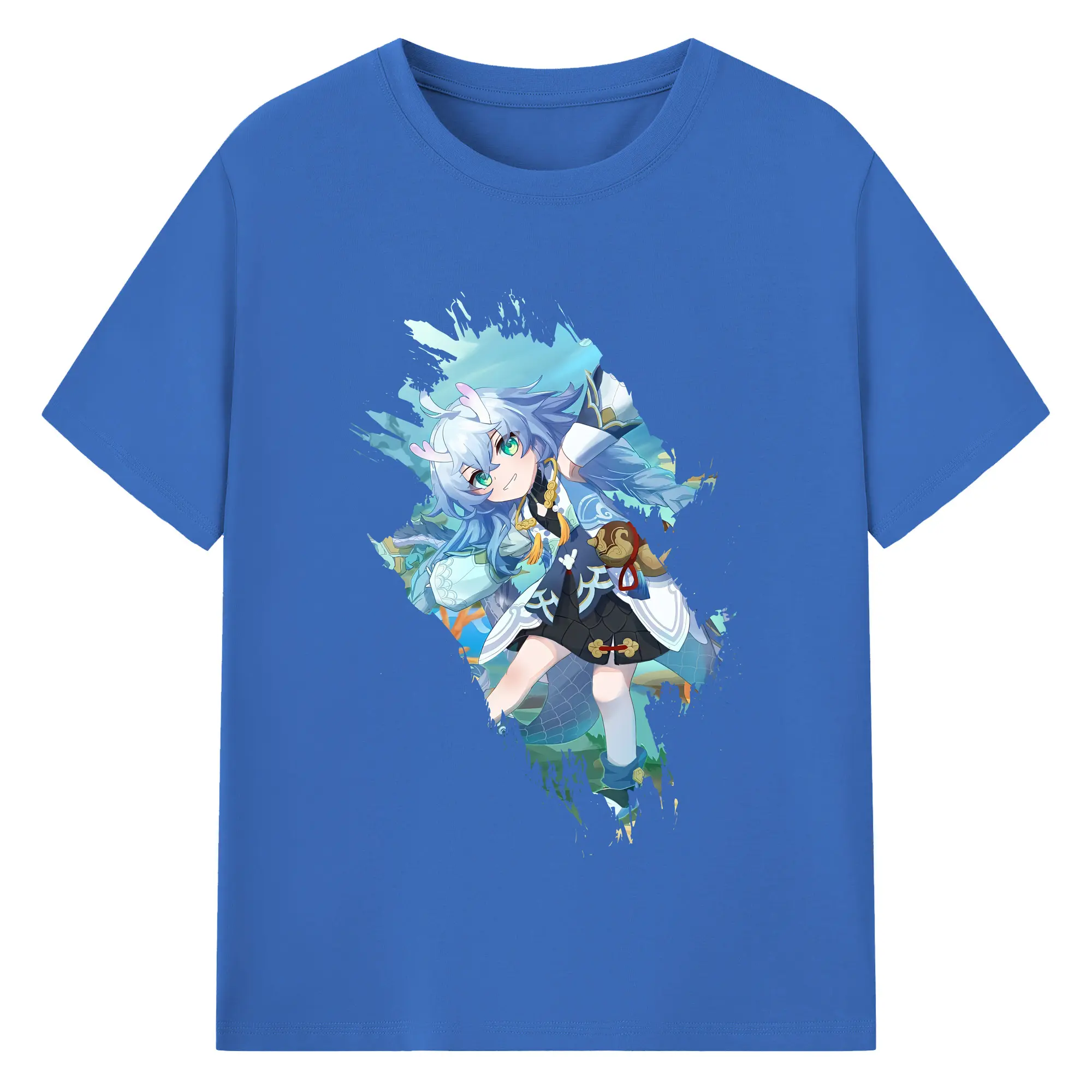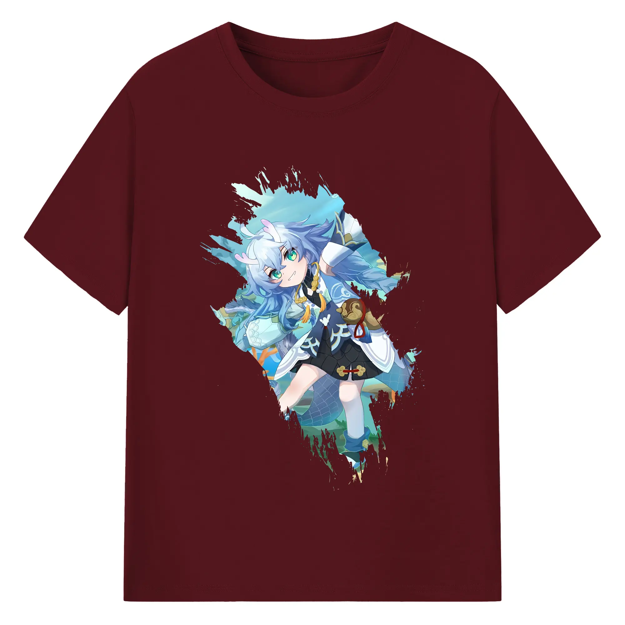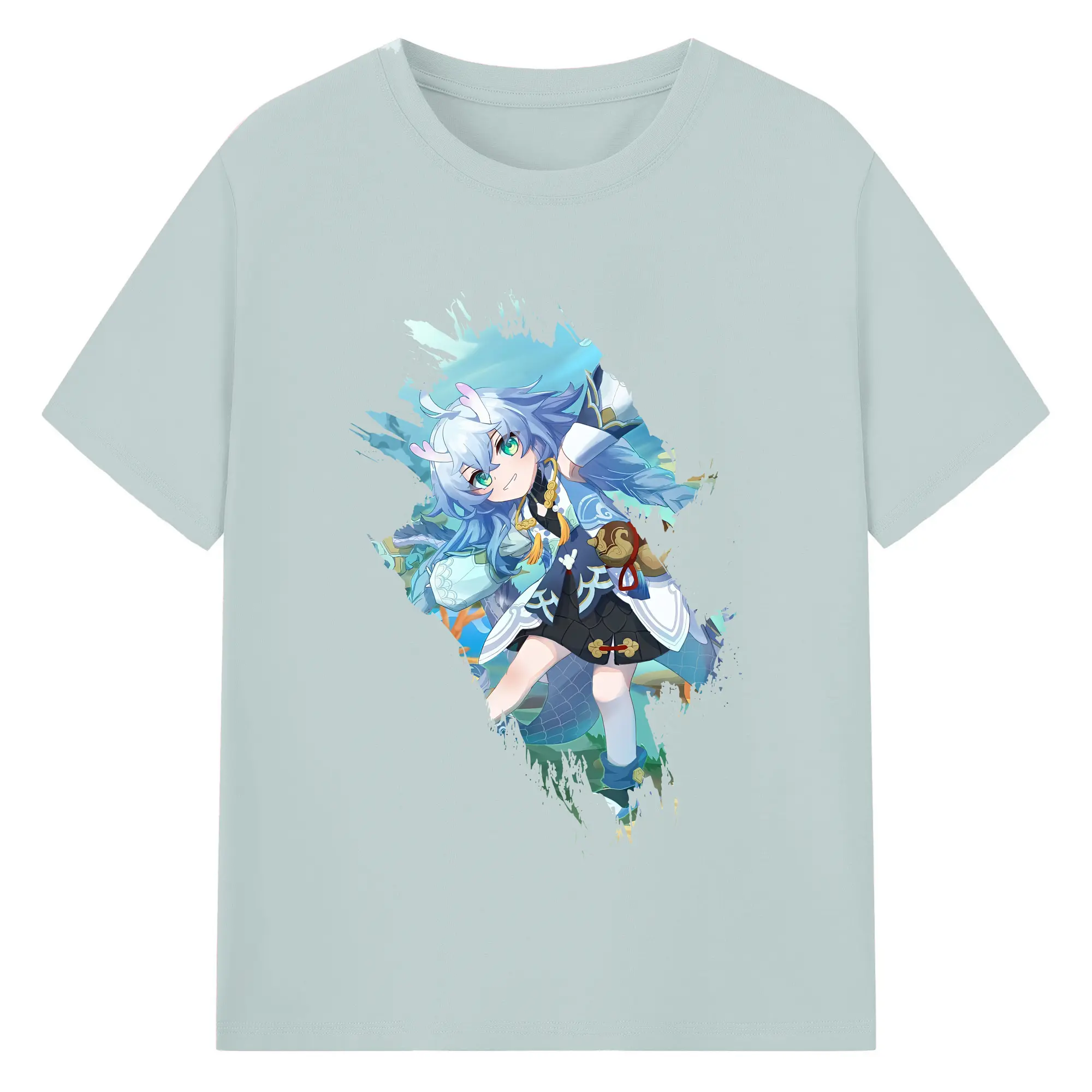 崩壊:スターレイル グッズ 白露 - 綿100% ヴィンテージ風 半袖Tシャツ ・ フロントプリント ・ 柔らか肌触り ・ 通気性 快適 ・ スポーツ カジュアル 外出用