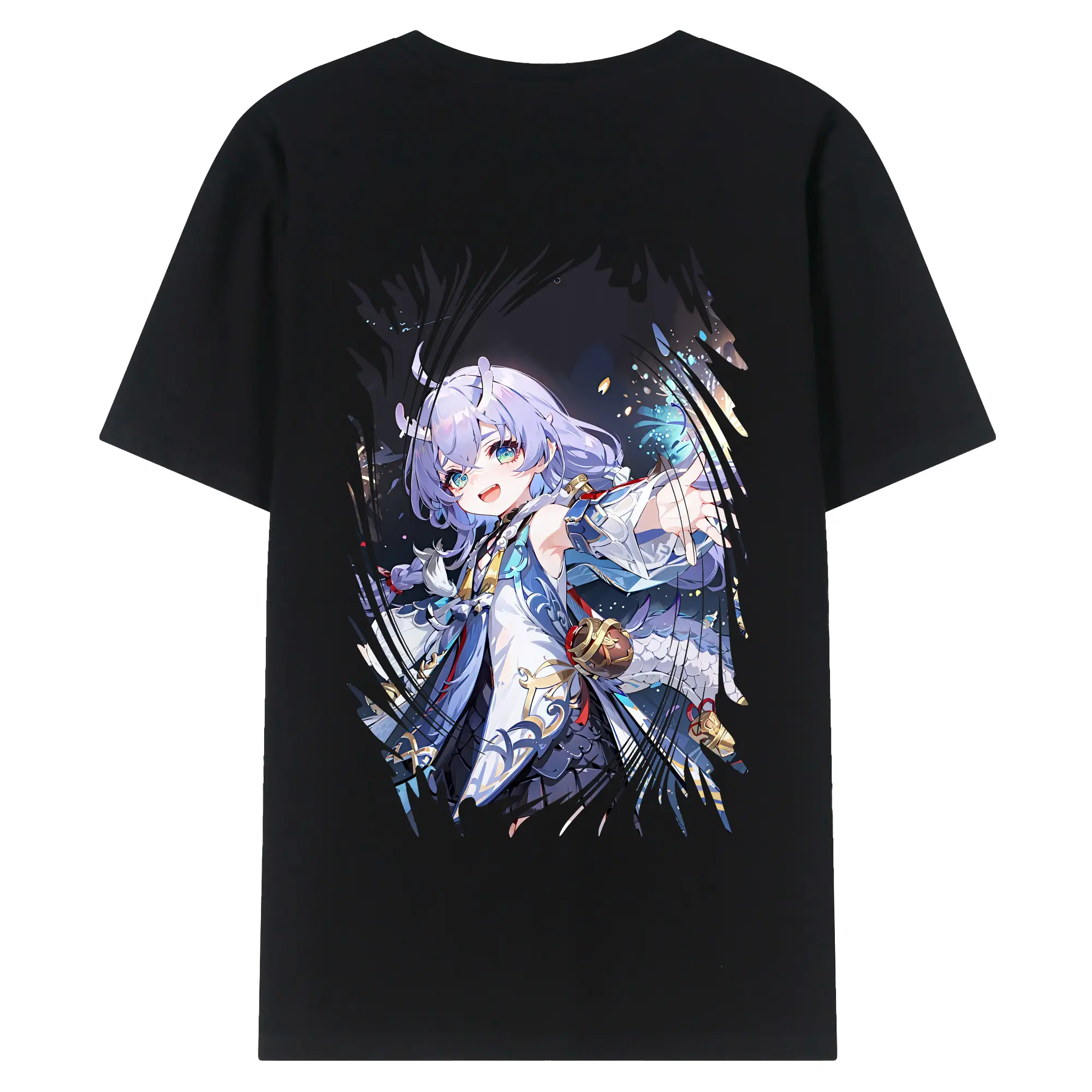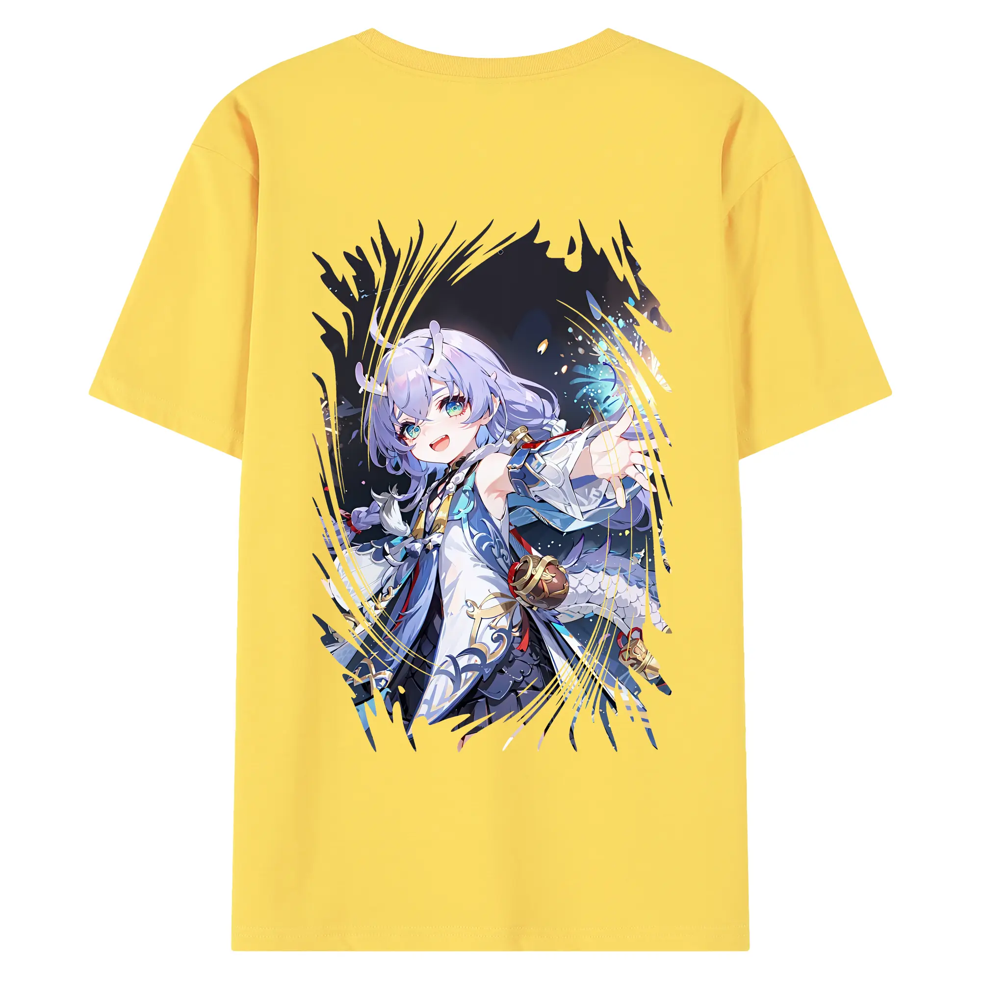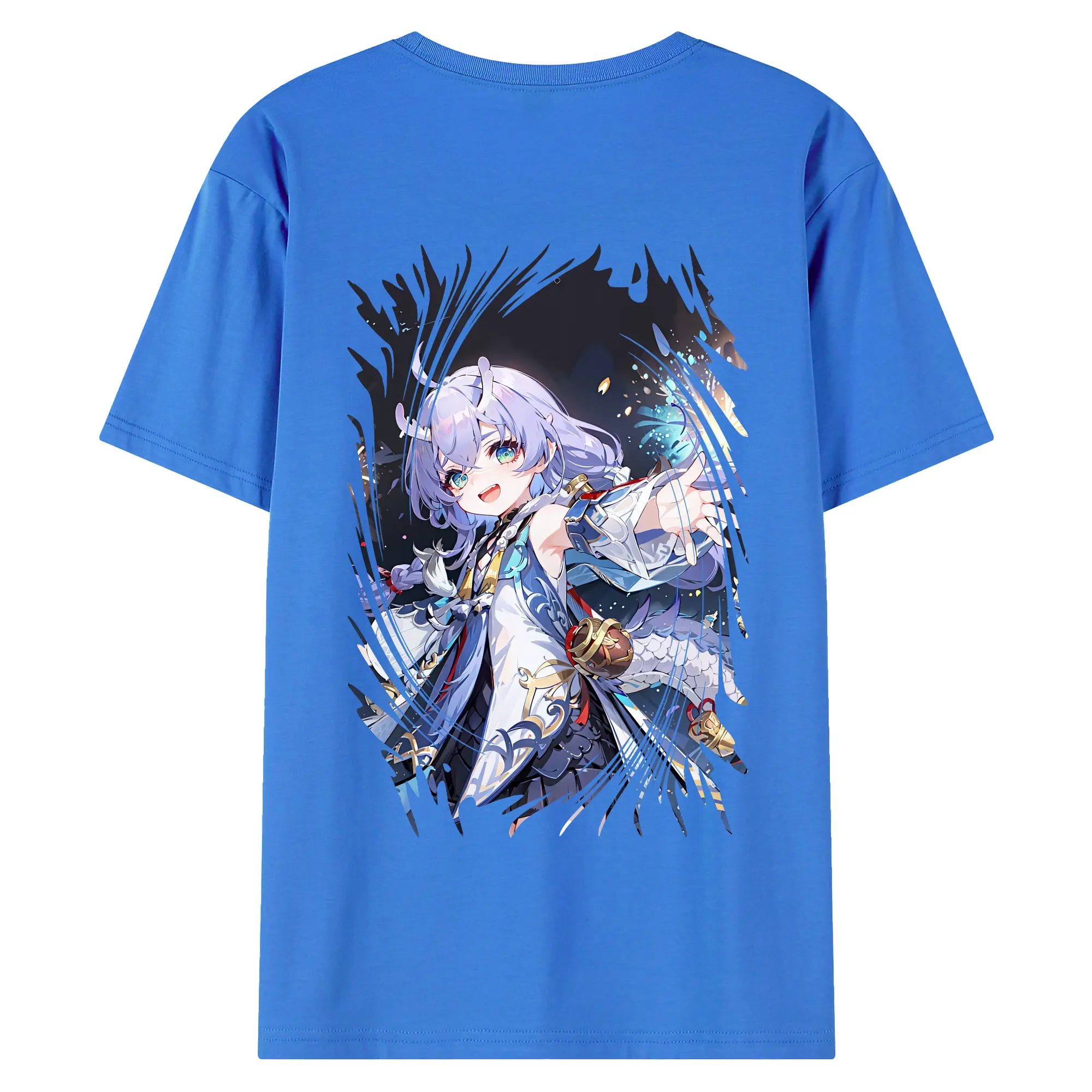 崩壊:スターレイル グッズ 白露 - 綿100% 半袖Tシャツ ・ フロントプリント ・ 快適 通気性 ・ 日常使い 散歩 スポーツ用