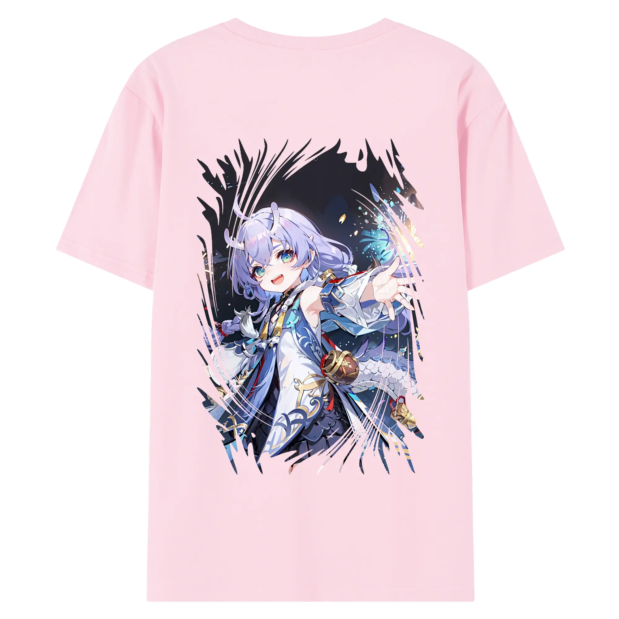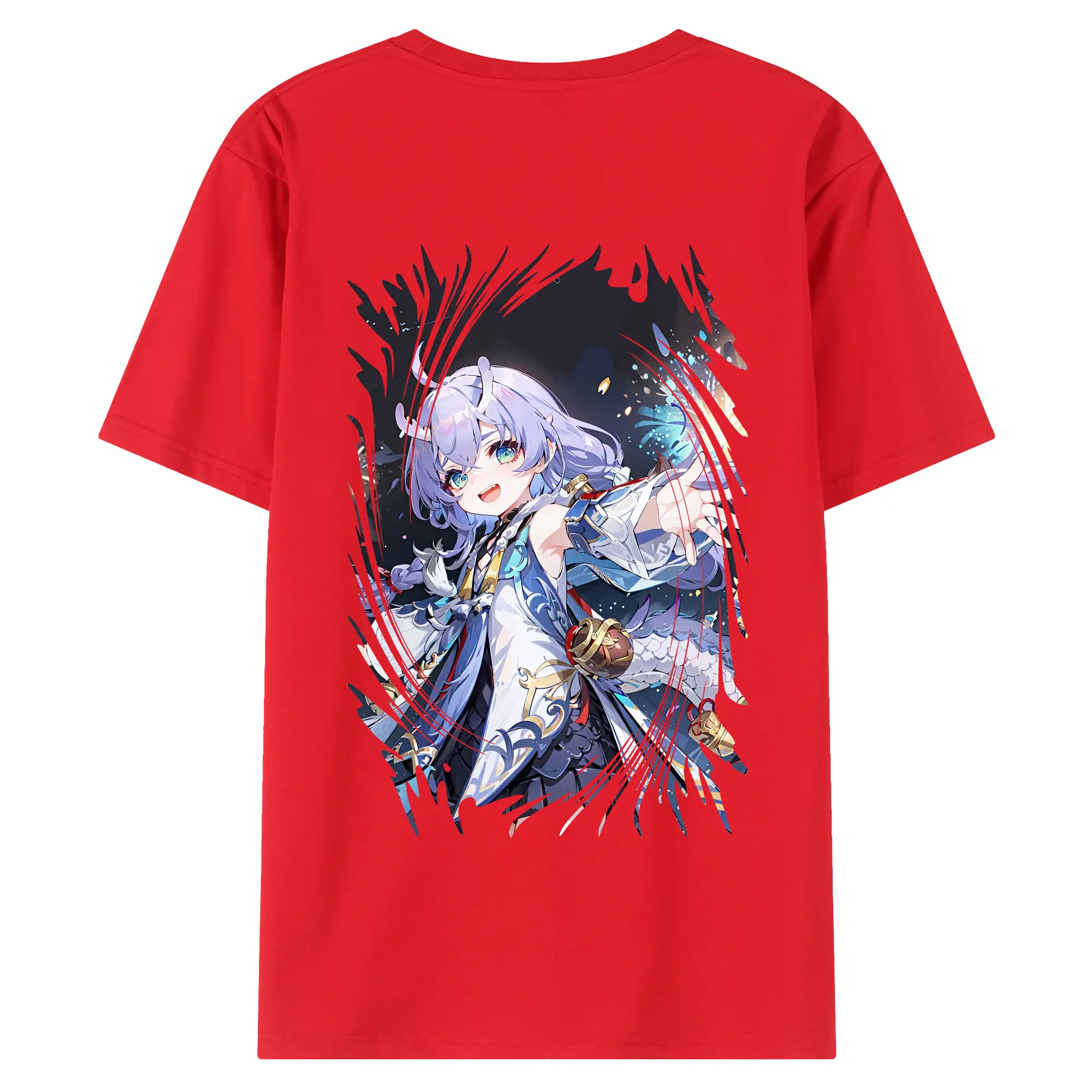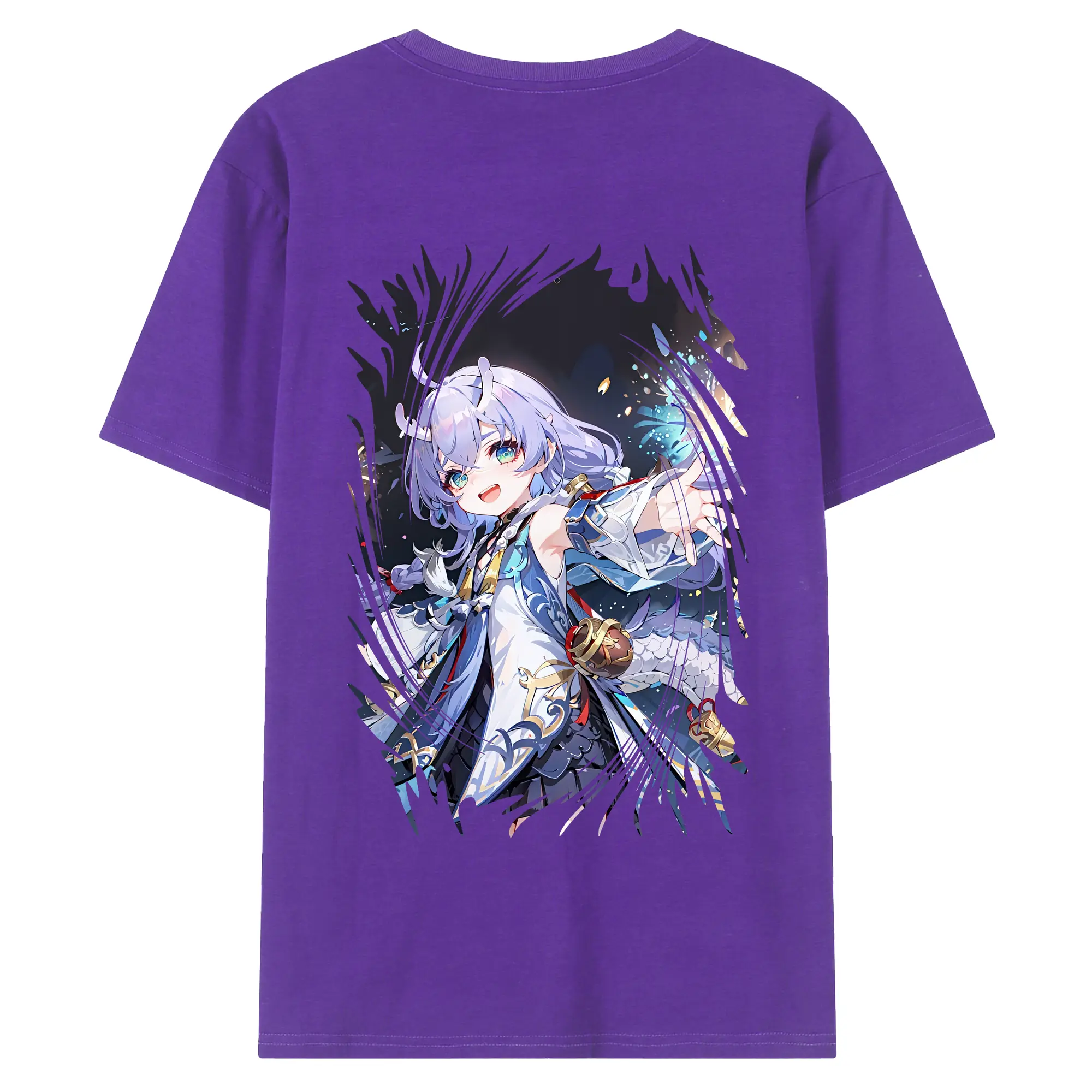 崩壊:スターレイル グッズ 白露 - 綿100% 半袖Tシャツ ・ フロントプリント ・ 快適 通気性 ・ 日常使い 散歩 スポーツ用