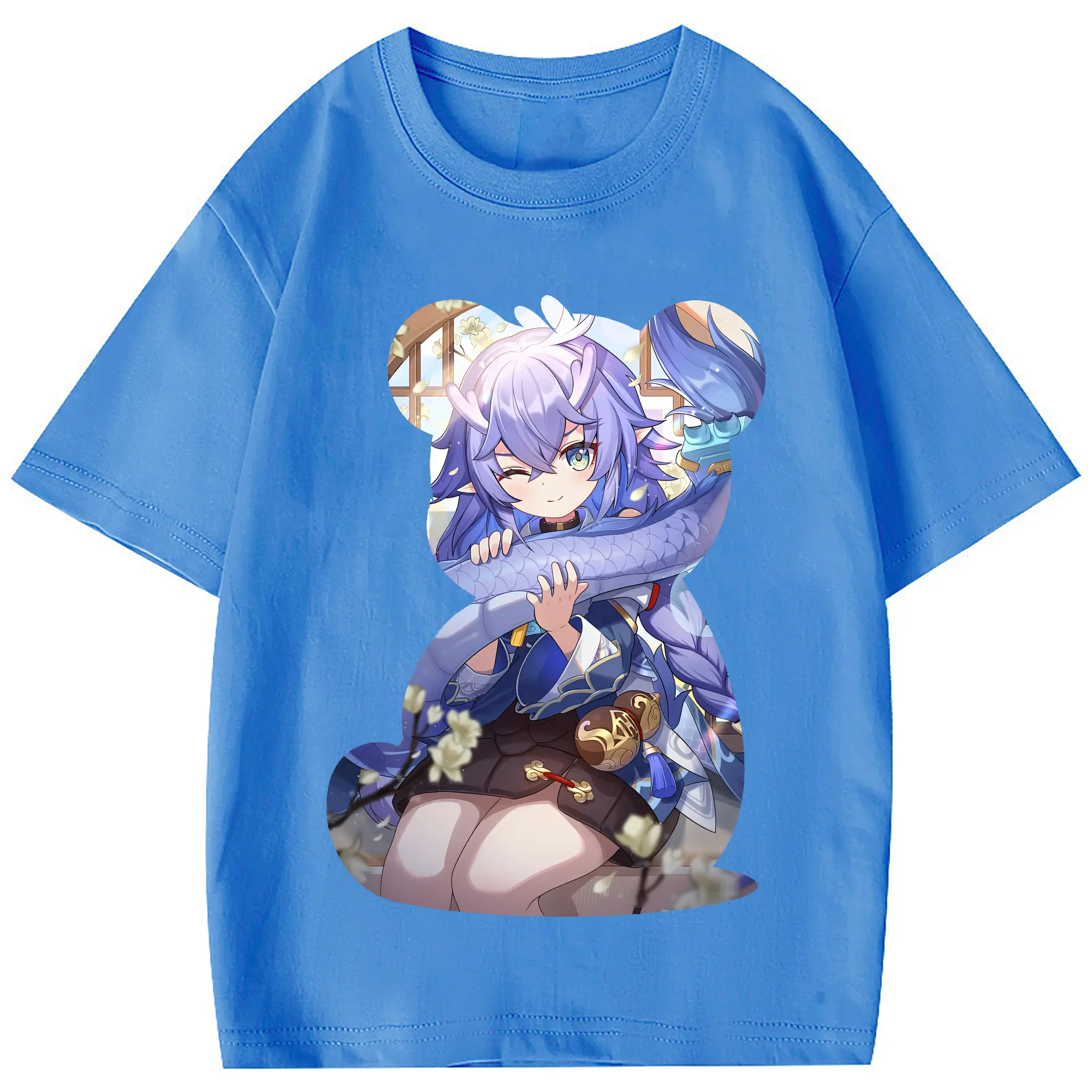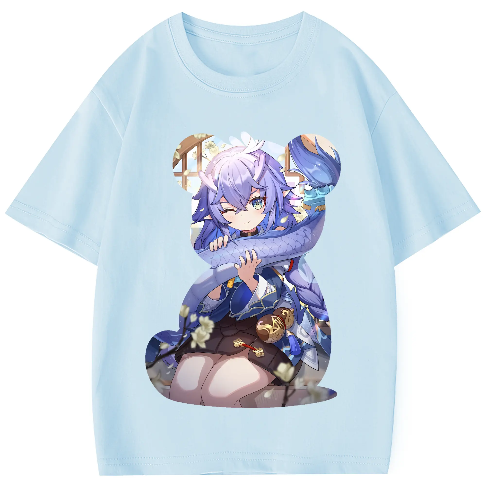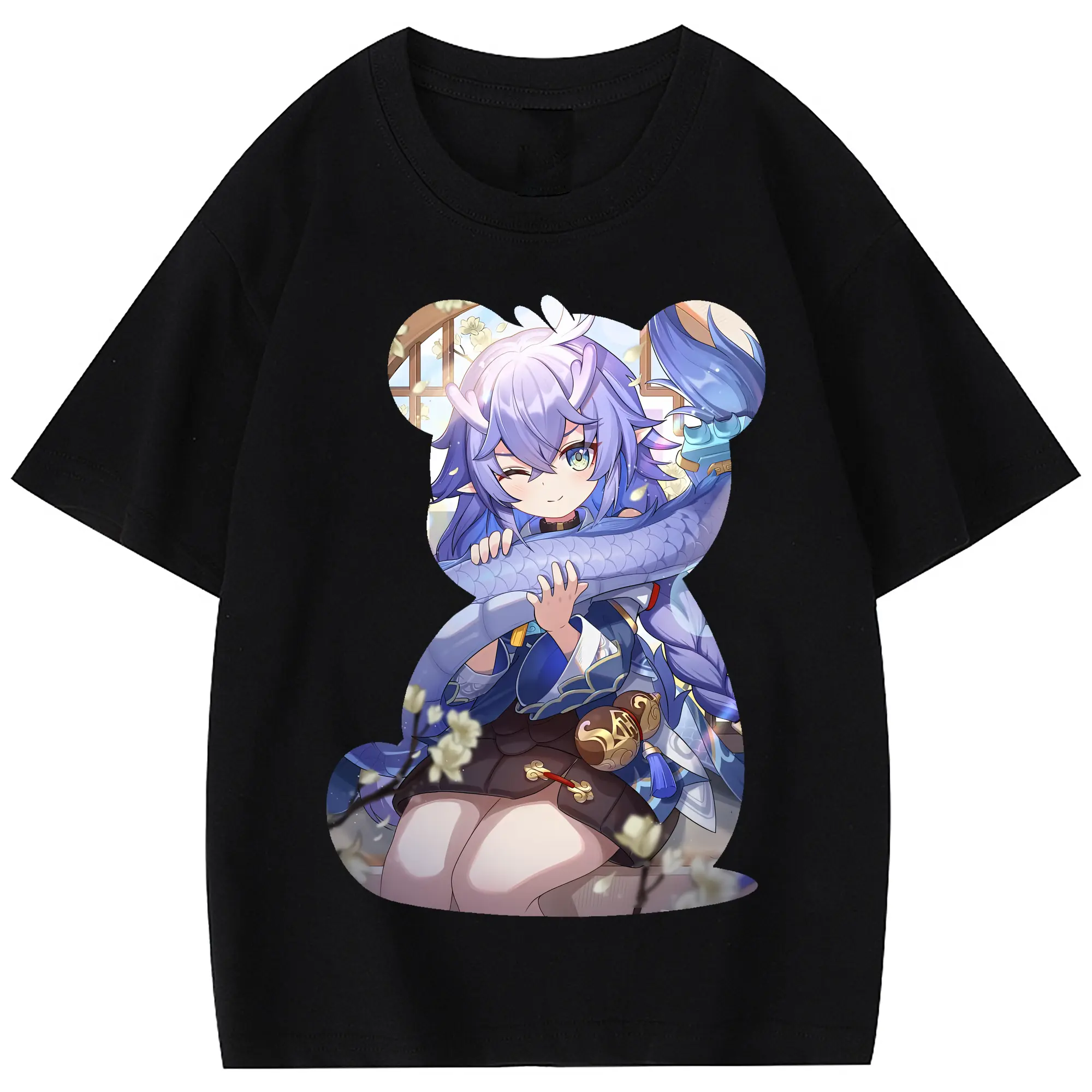 崩壊:スターレイル グッズ 白露 - 綿100% 半袖Tシャツ ・ フロントプリント ・ 快適 通気性 ・ 日常使い 散歩 スポーツ用