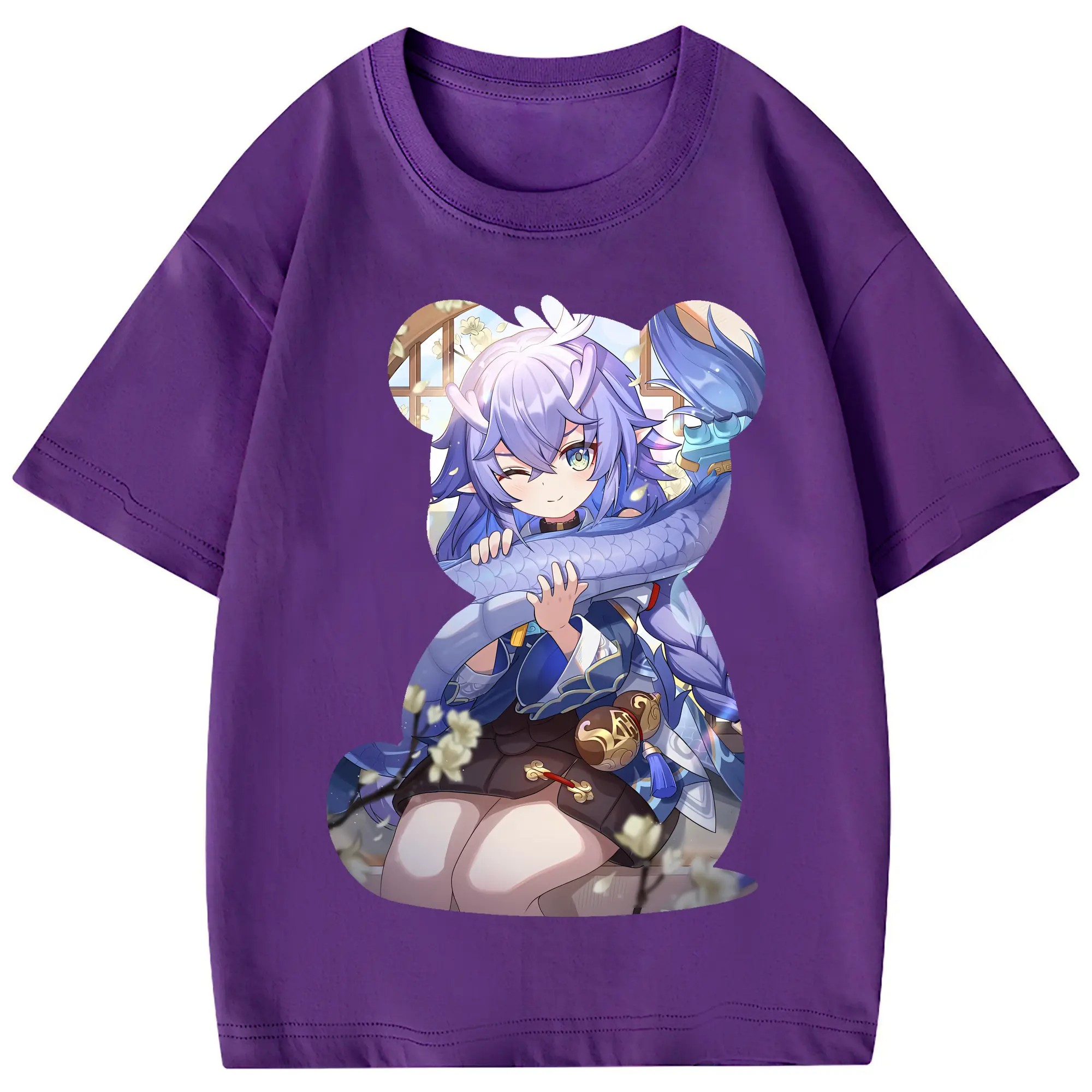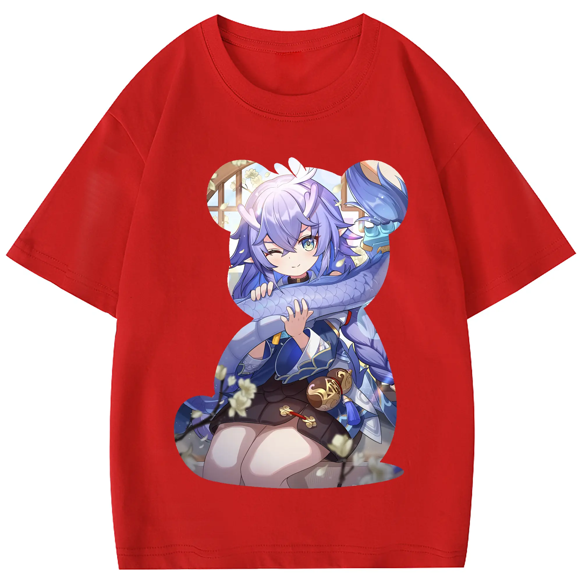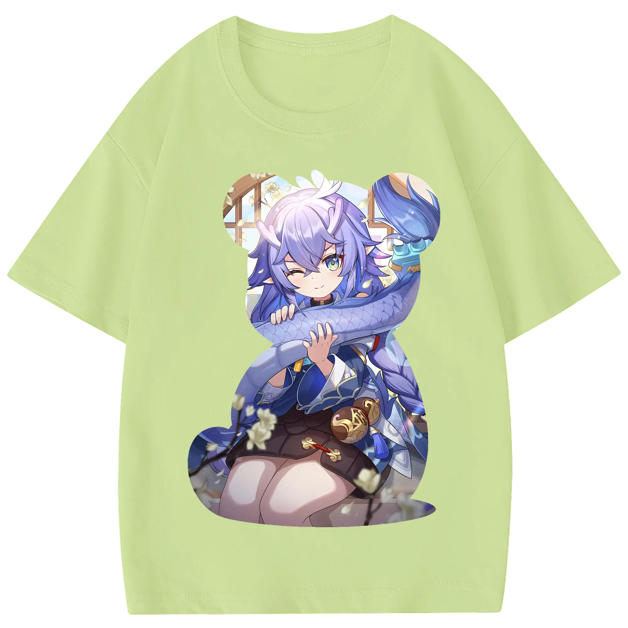 崩壊:スターレイル グッズ 白露 - 綿100% 半袖Tシャツ ・ フロントプリント ・ 快適 通気性 ・ 日常使い 散歩 スポーツ用