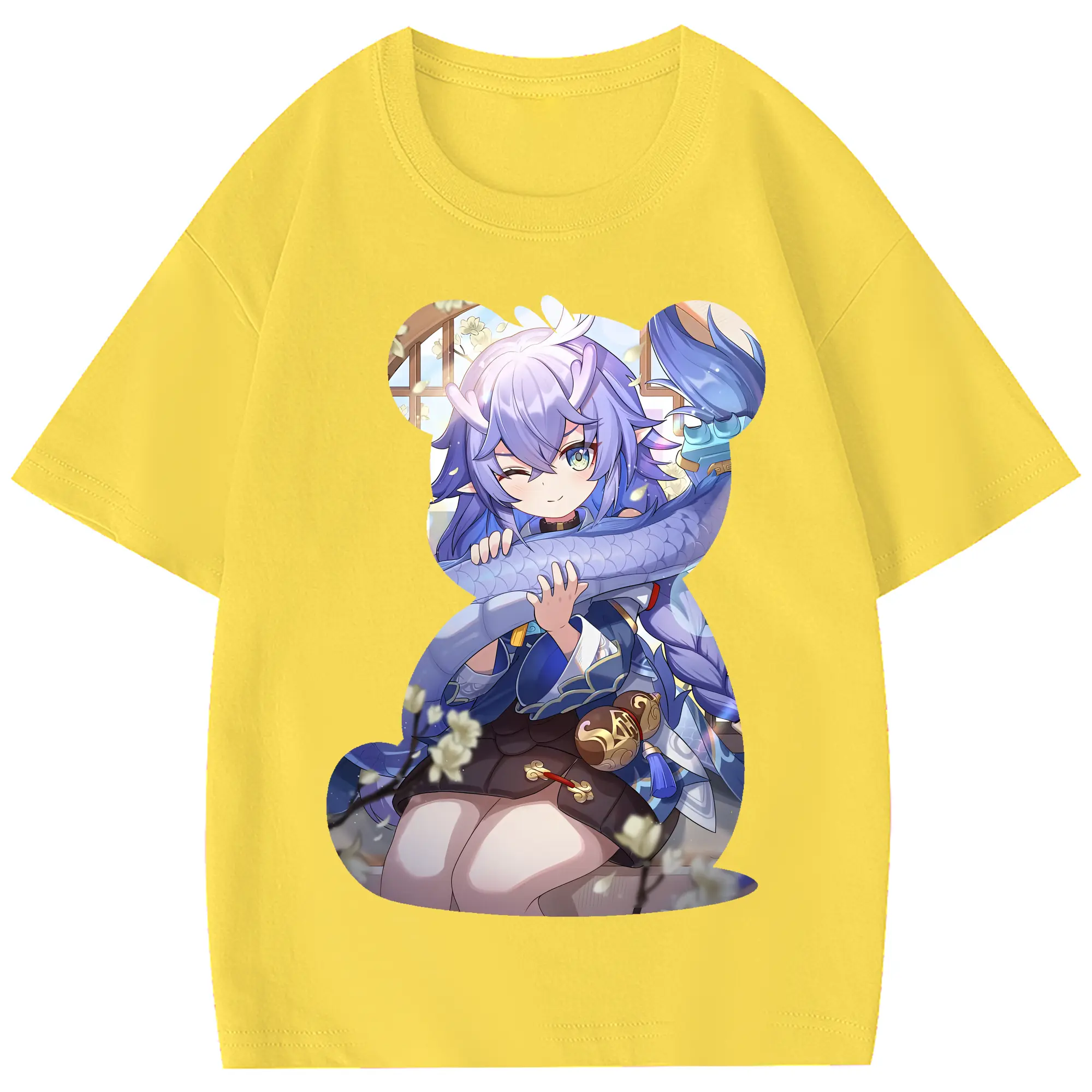 崩壊:スターレイル グッズ 白露 - 綿100% ヴィンテージ風 半袖Tシャツ ・ フロントプリント ・ 柔らか肌触り ・ 通気性 快適 ・ スポーツ カジュアル 外出用