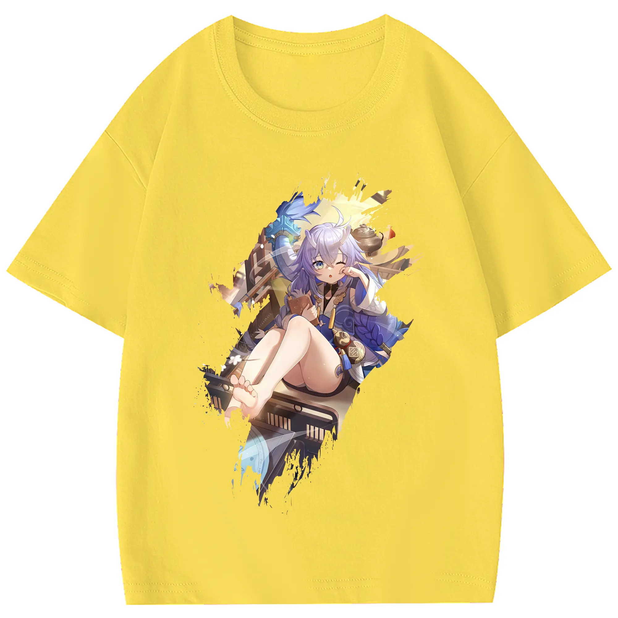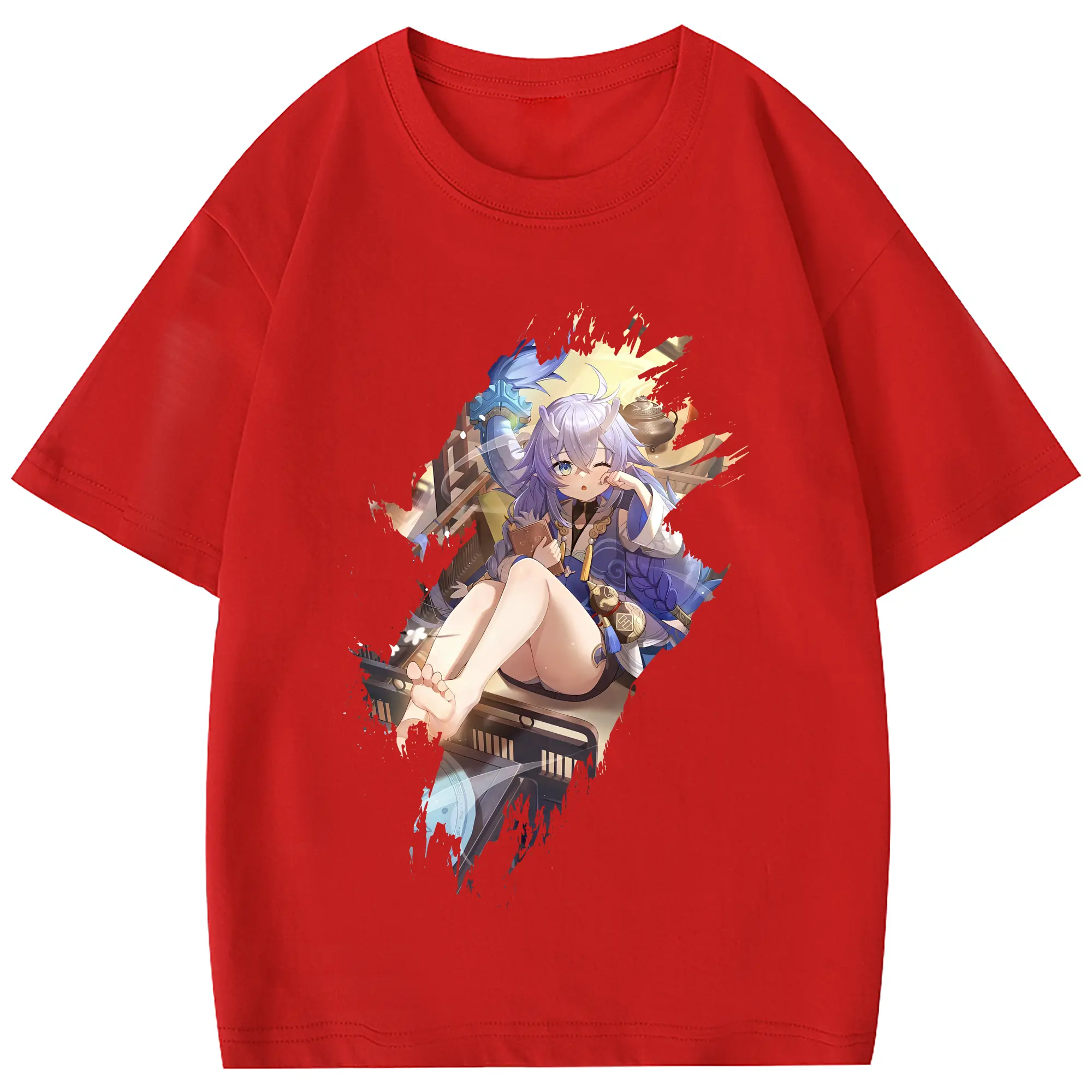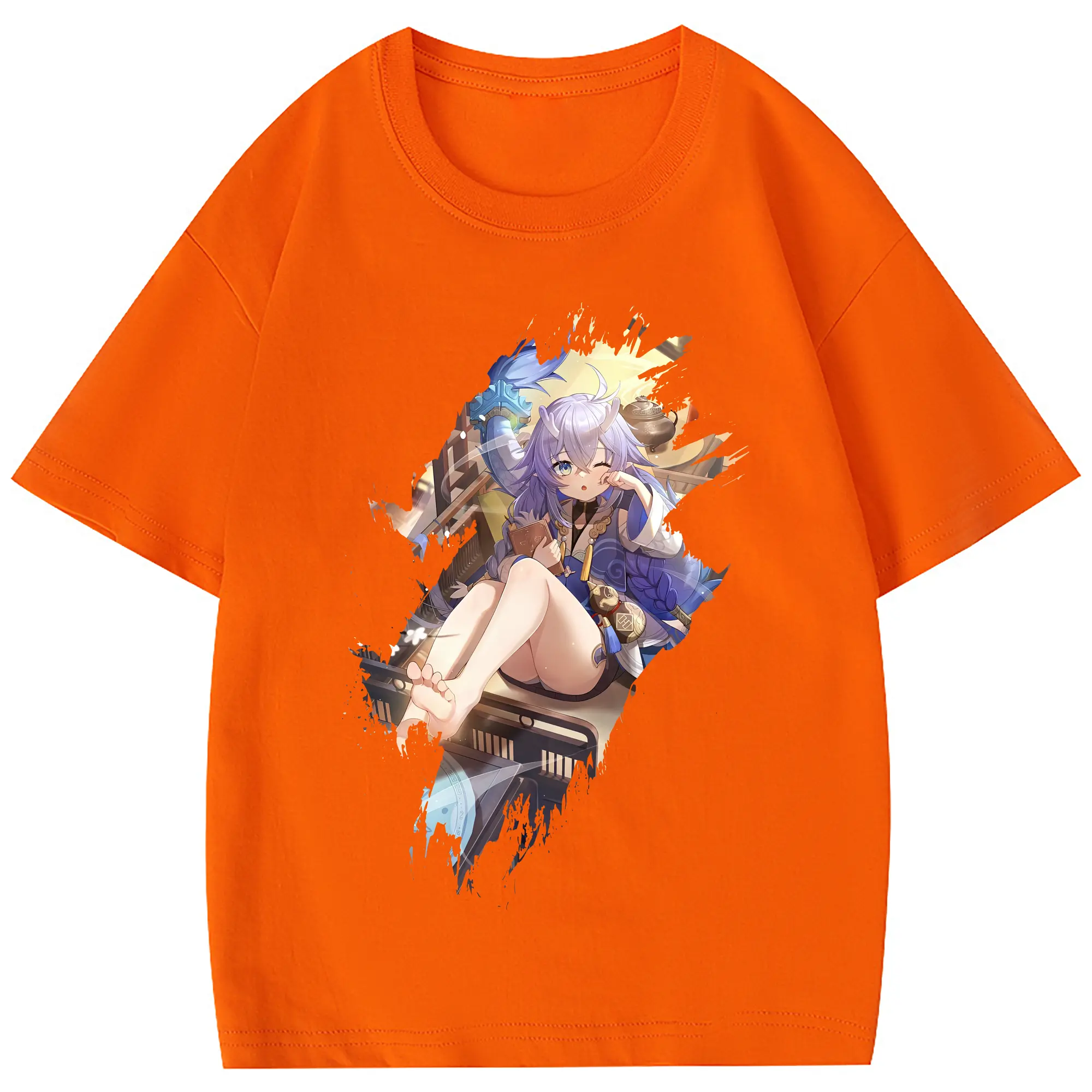 崩壊:スターレイル グッズ 白露 - 綿100% ヴィンテージ風 半袖Tシャツ ・ フロントプリント ・ 柔らか肌触り ・ 通気性 快適 ・ スポーツ カジュアル 外出用