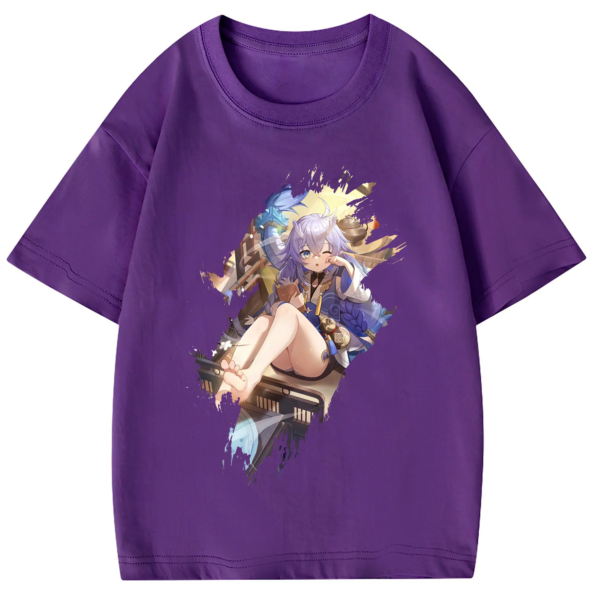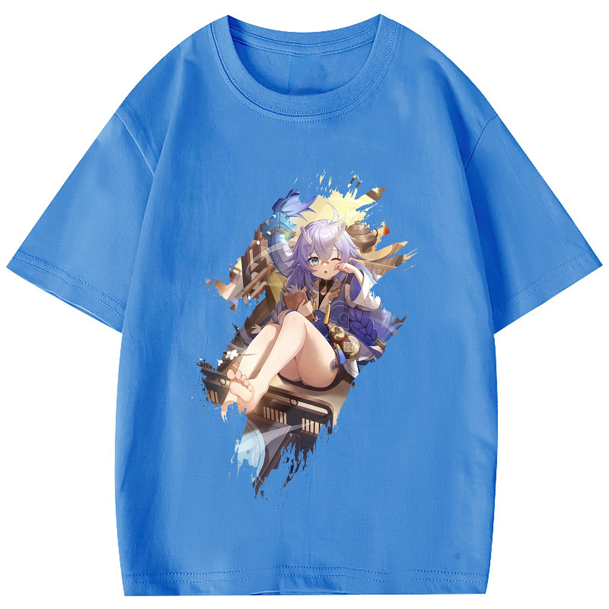 崩壊:スターレイル グッズ 白露 - 綿100% 半袖Tシャツ ・ フロントプリント ・ 快適 通気性 ・ 日常使い 散歩 スポーツ用
