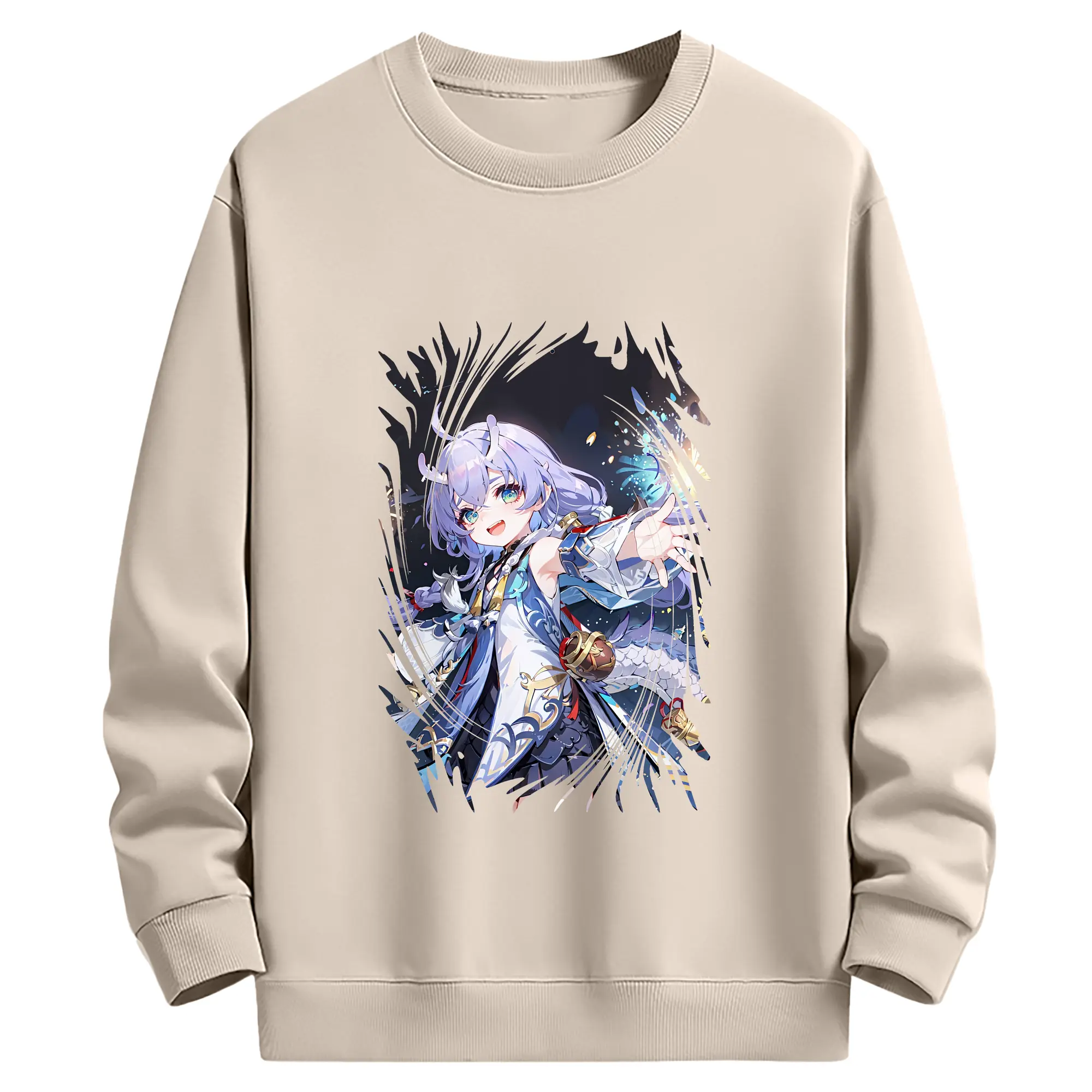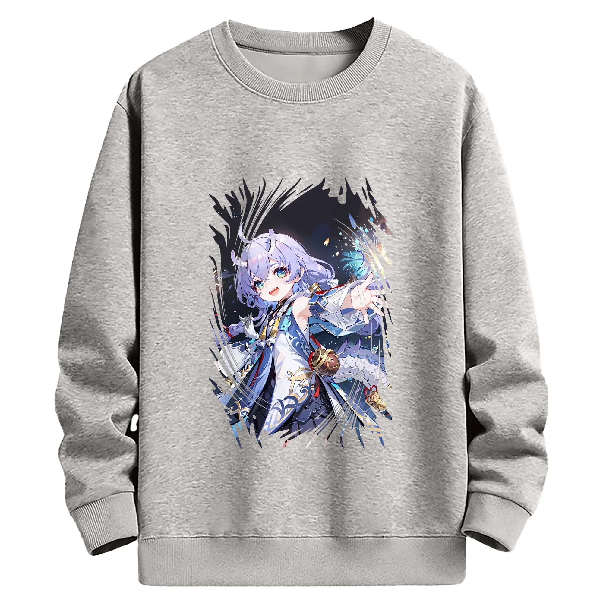 崩壊:スターレイル グッズ 白露 - 薄手 クルーネック スウェット 裏毛260g · ポリエステル 春秋向け カジュアル 男女兼用 · トレーナー デイリー スポーツ 散歩に最適