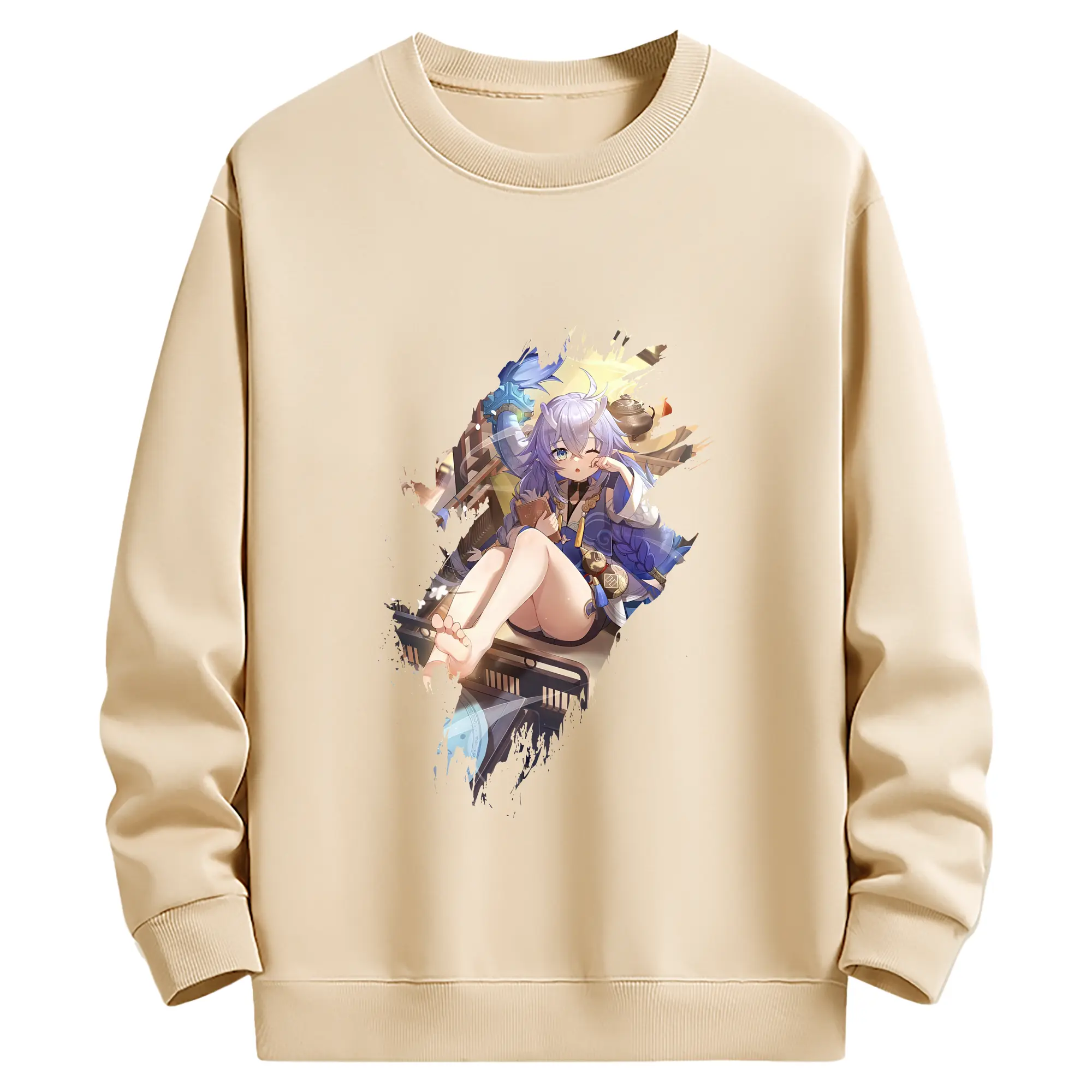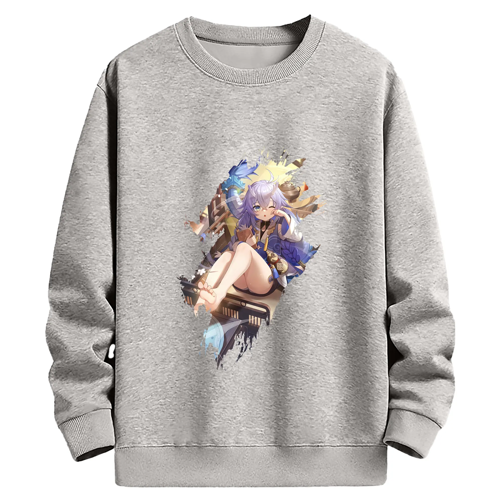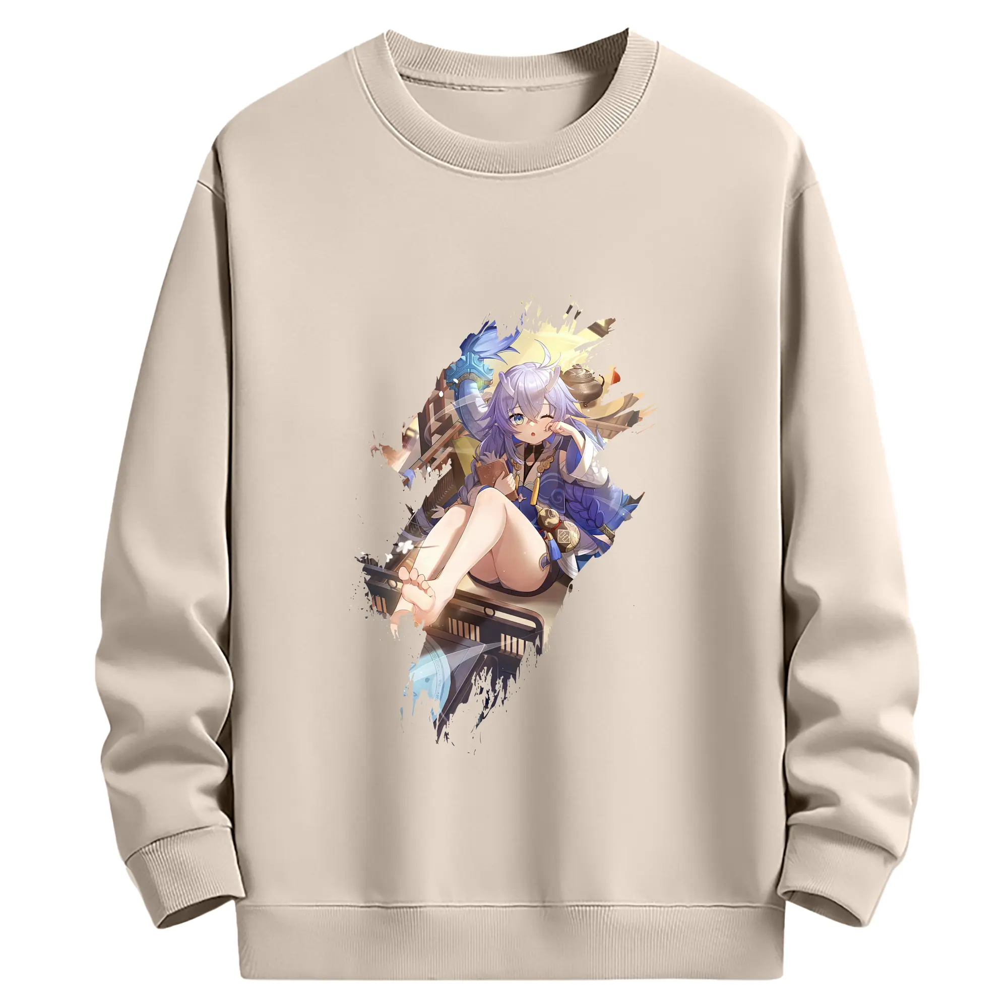 崩壊:スターレイル グッズ 白露 - 薄手 クルーネック スウェット 裏毛260g · ポリエステル 春秋向け カジュアル 男女兼用 · トレーナー デイリー スポーツ 散歩に最適