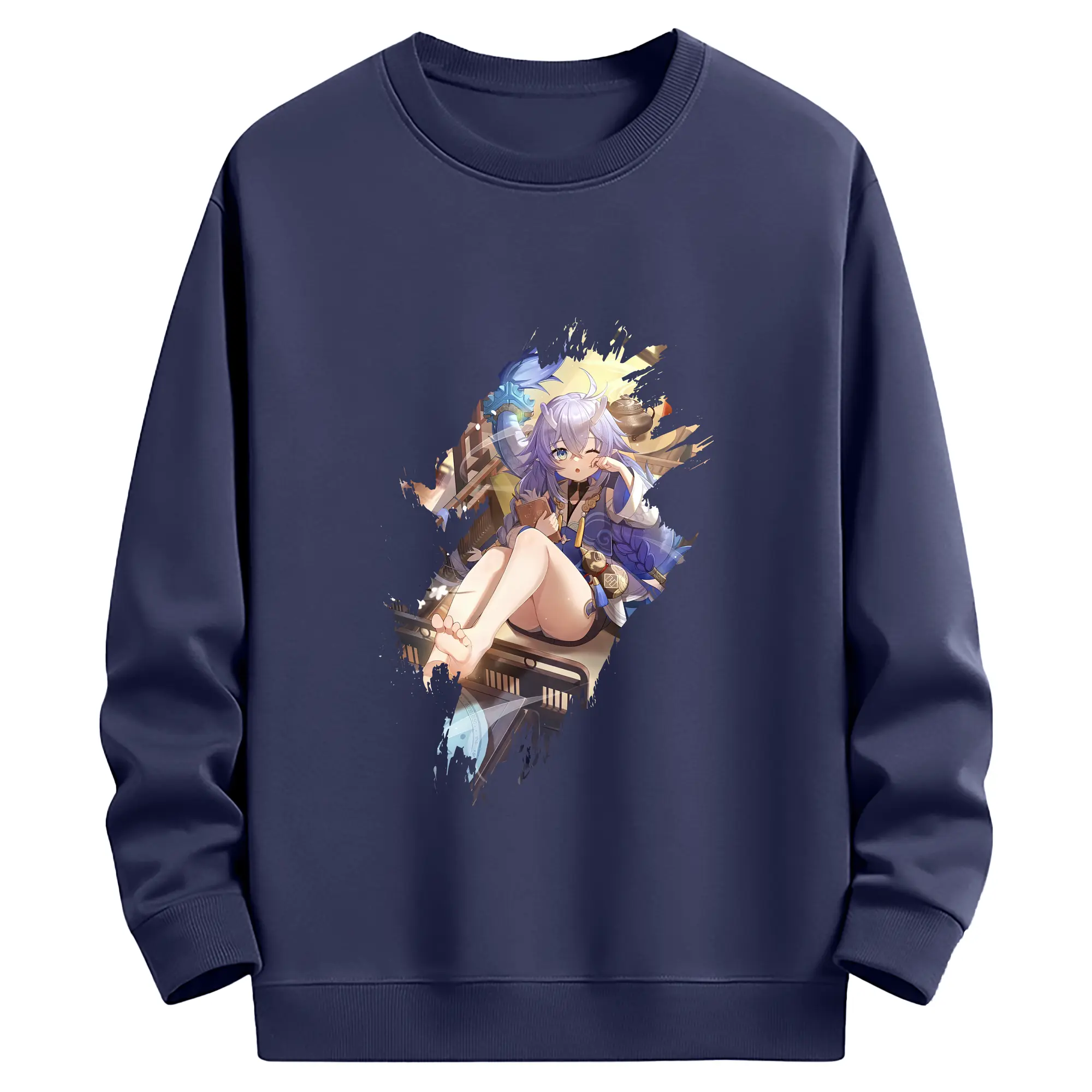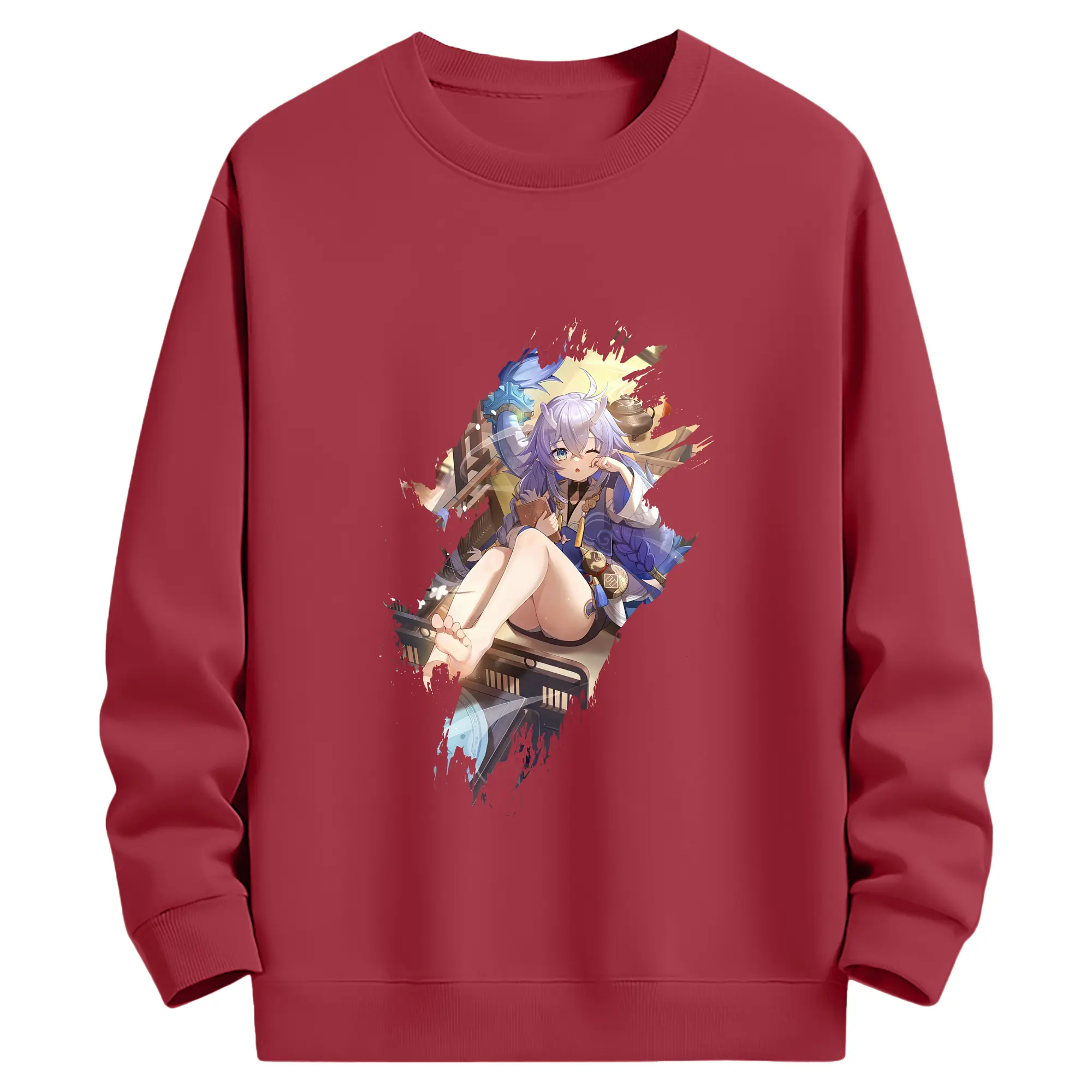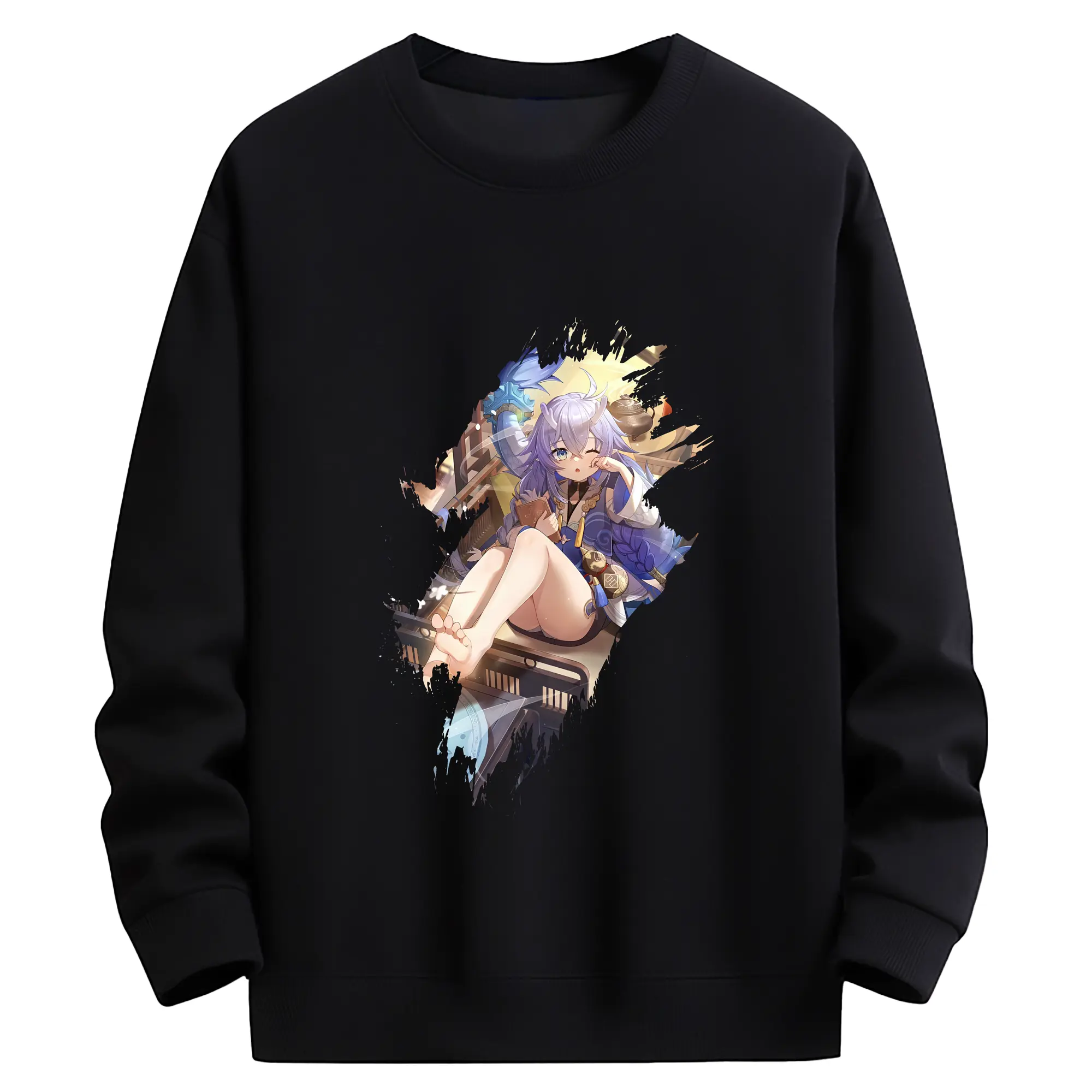 崩壊:スターレイル グッズ 白露 - 薄手 クルーネック スウェット 裏毛260g · ポリエステル 春秋向け カジュアル 男女兼用 · トレーナー デイリー スポーツ 散歩に最適