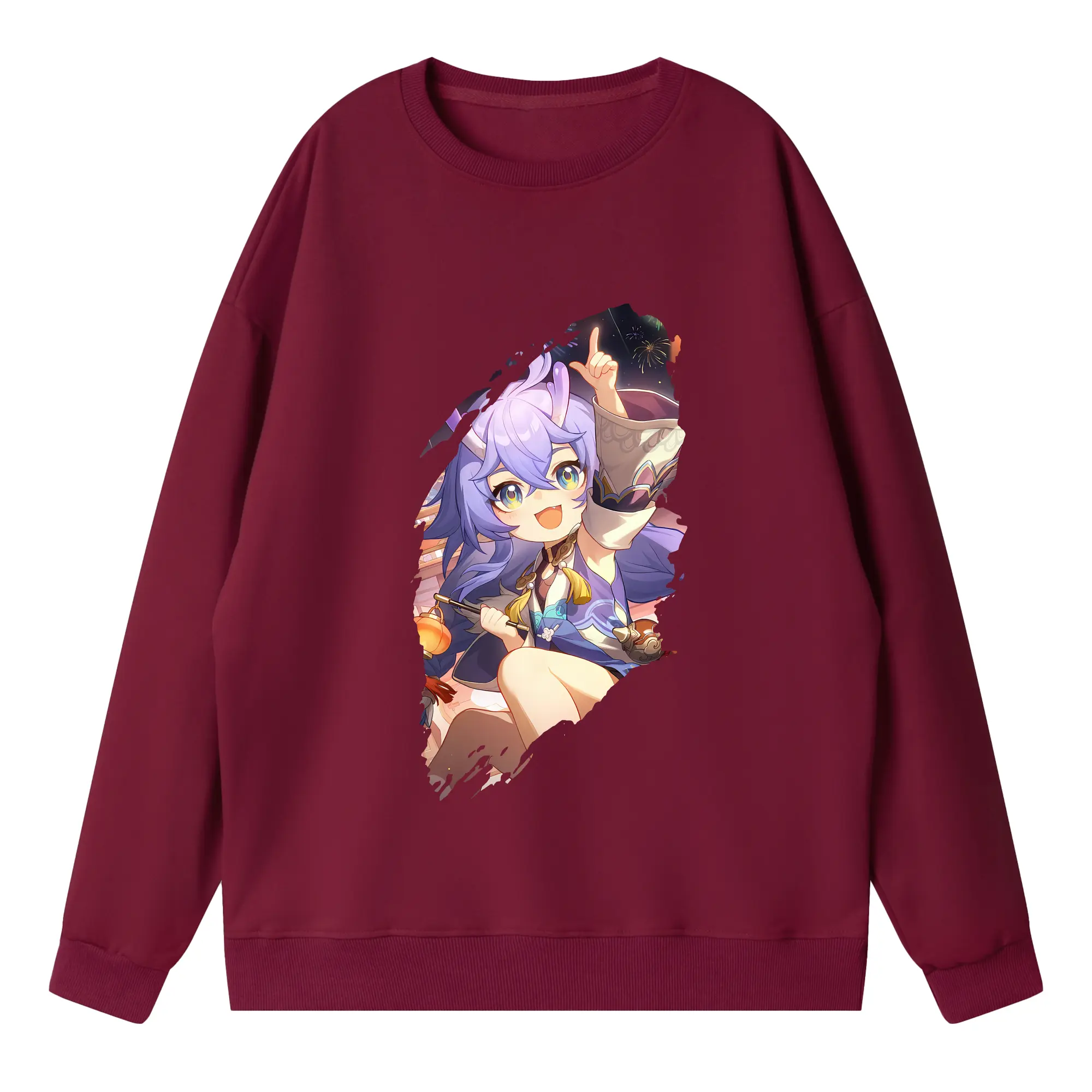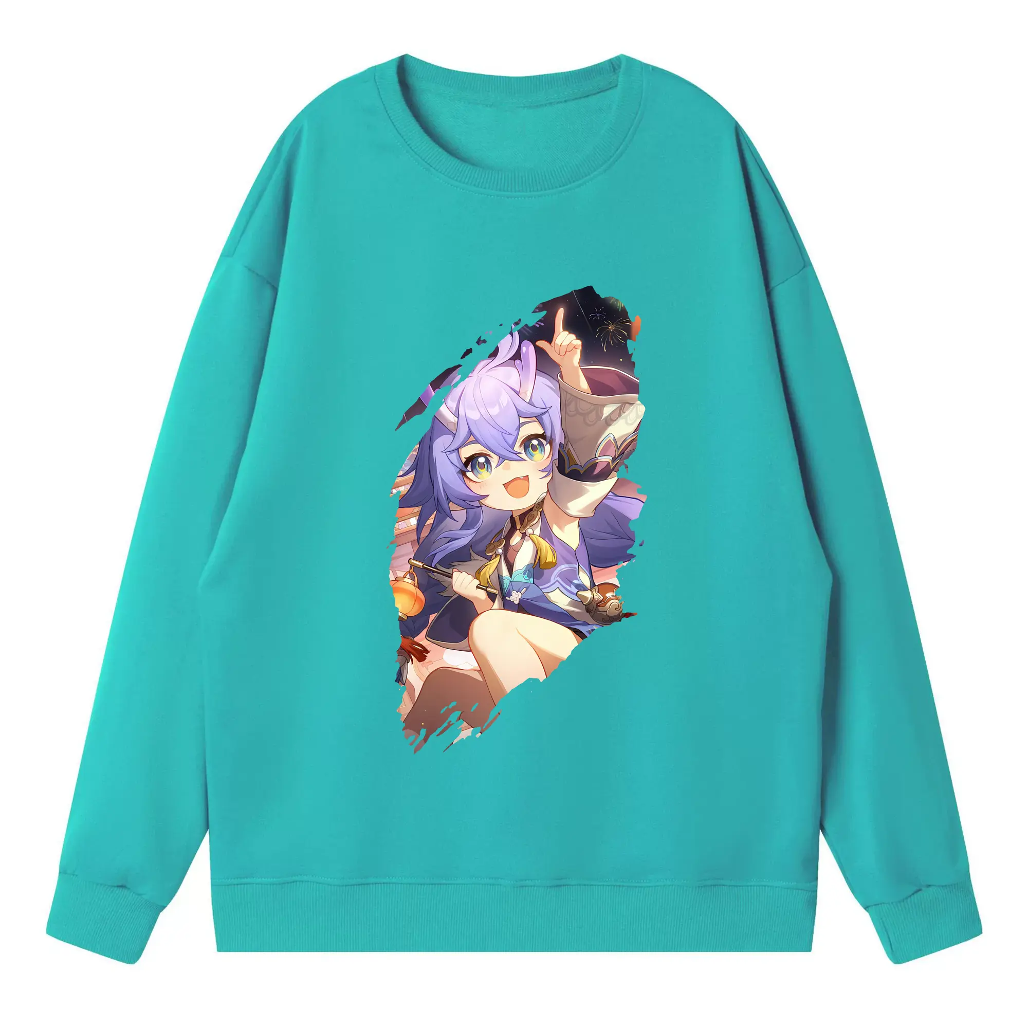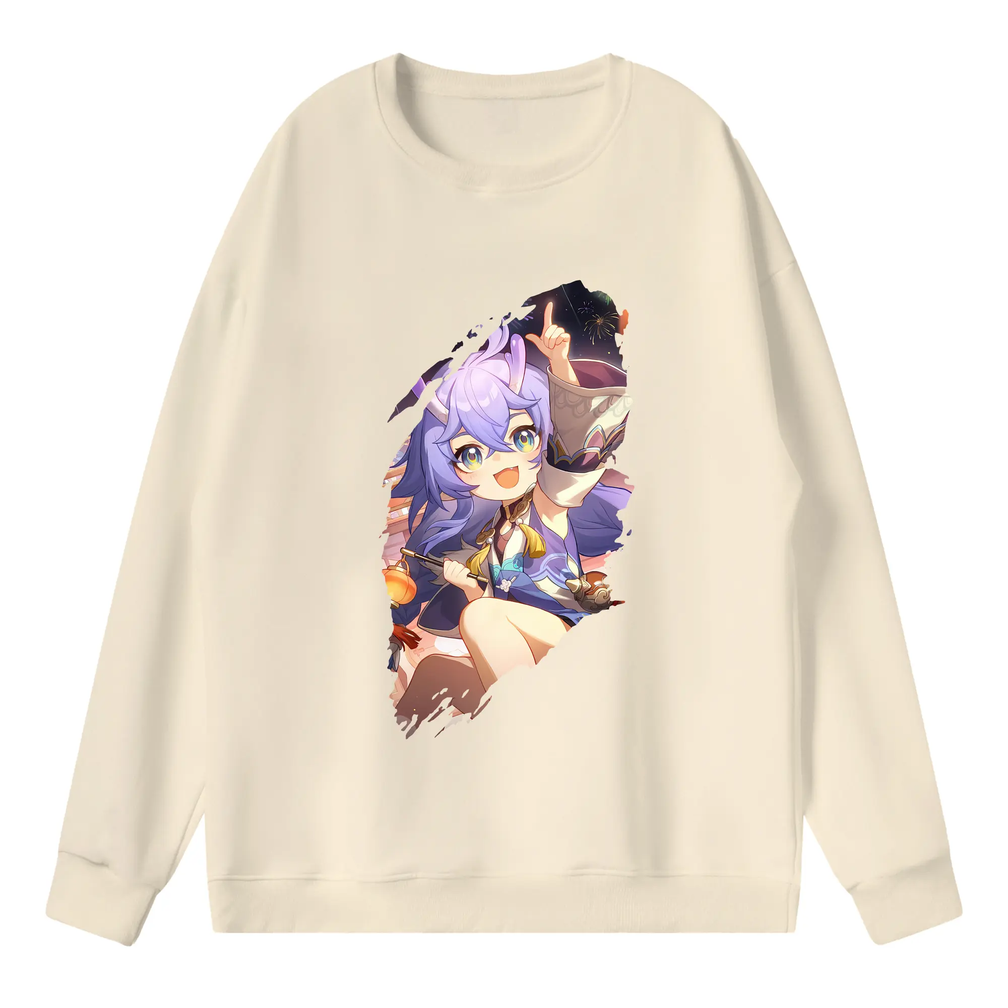 崩壊:スターレイル グッズ 白露 - 高品質 クルーネック スウェット ・ コットン59% ポリエステル41% ・ ユニセックス 長袖 トレーナー ・ カジュアル デイリー スポーツ 散歩用