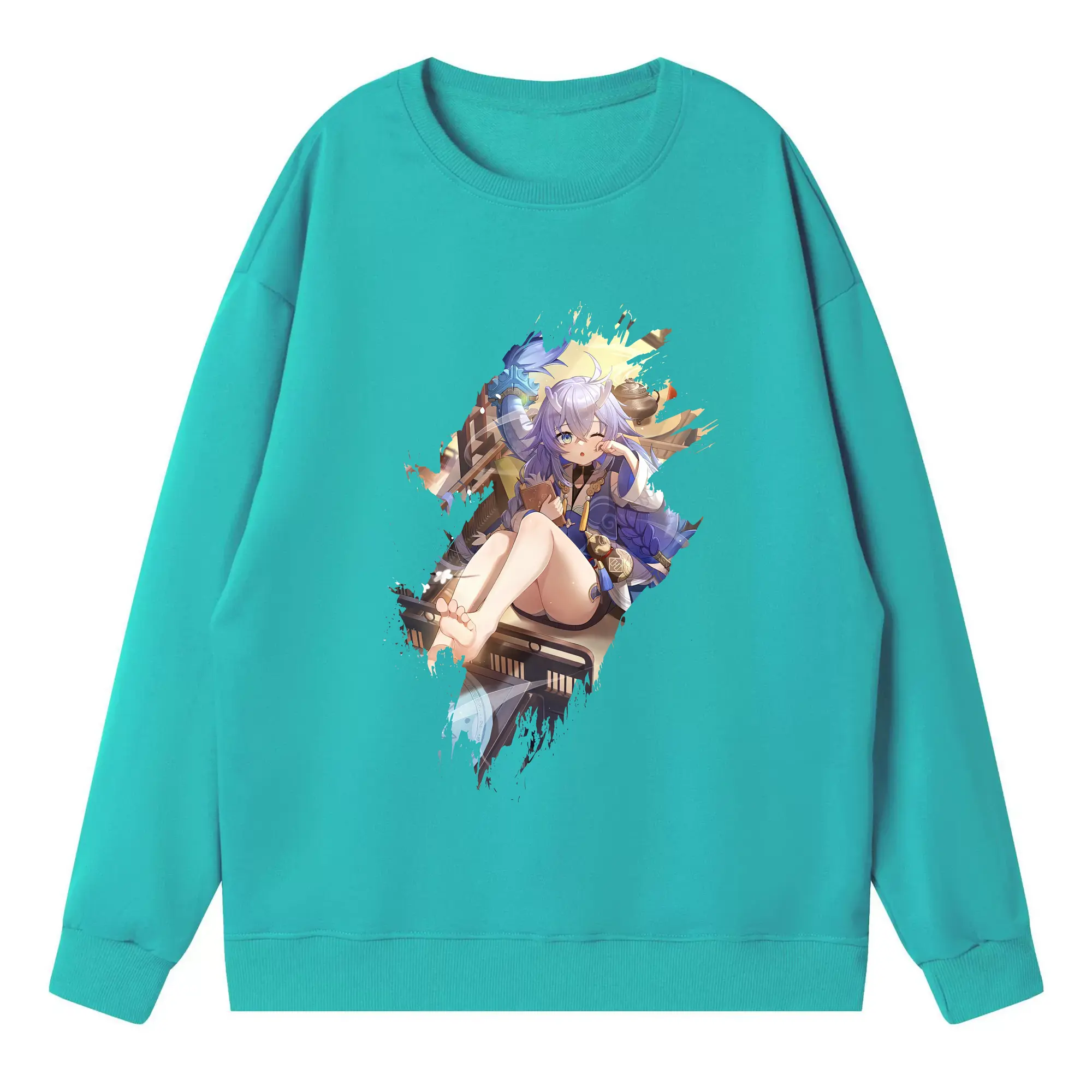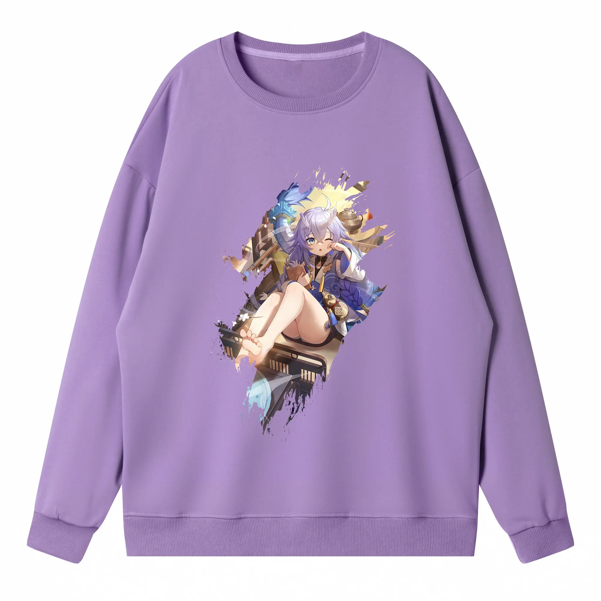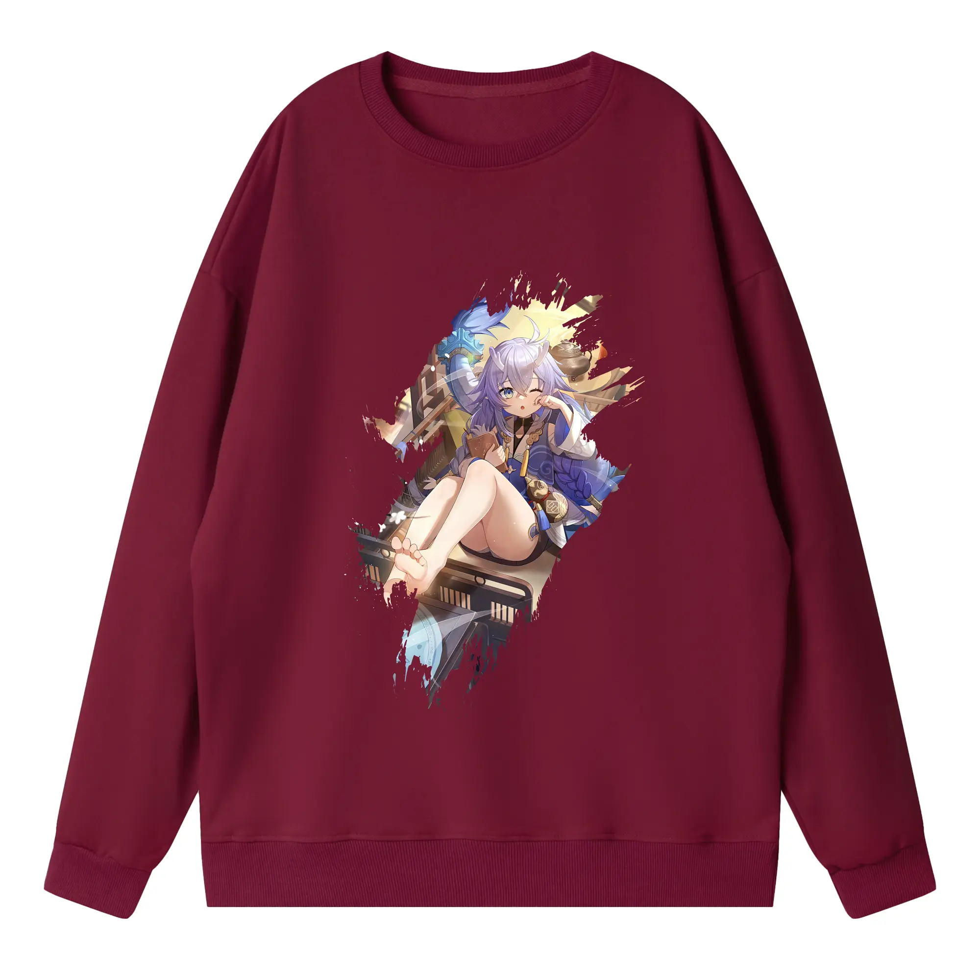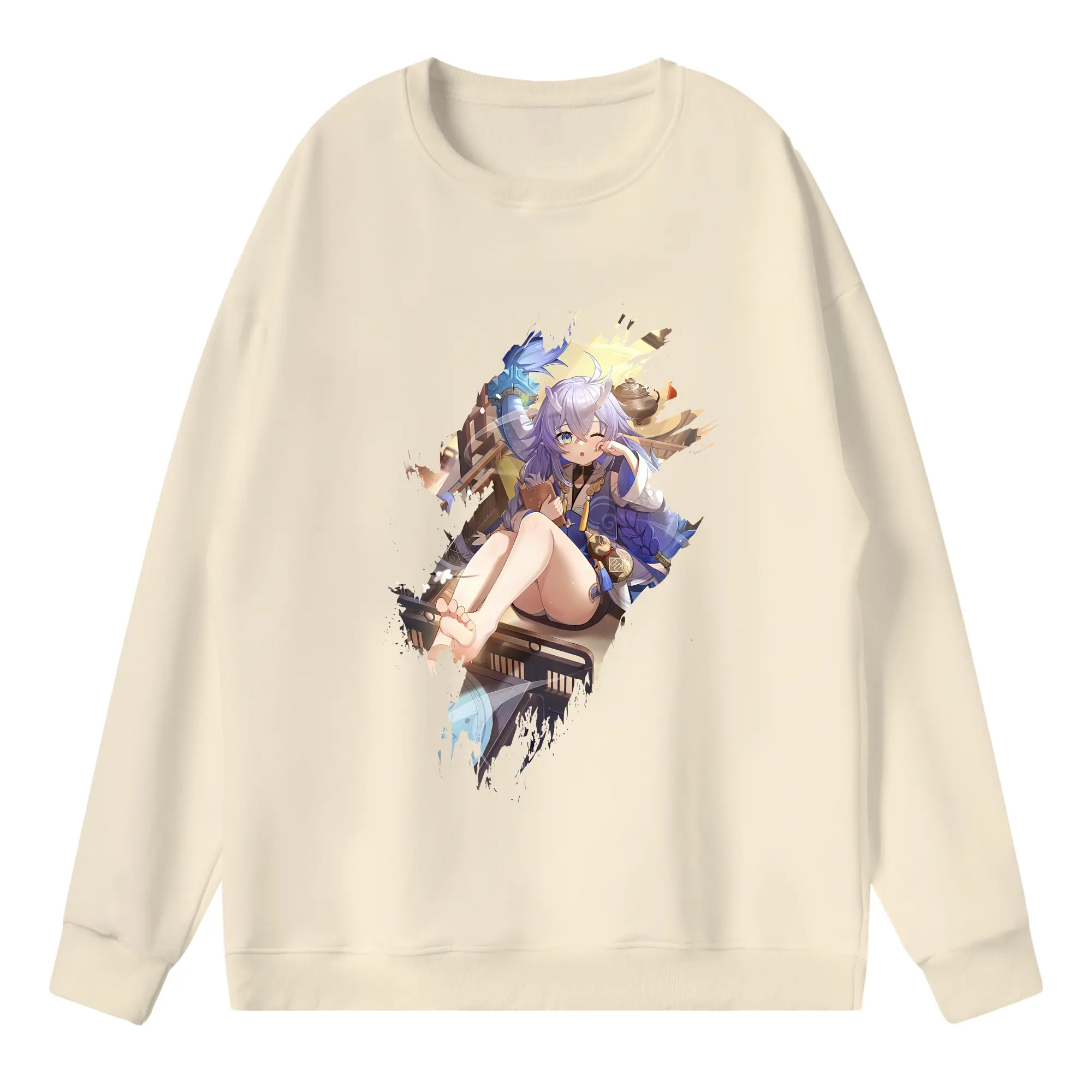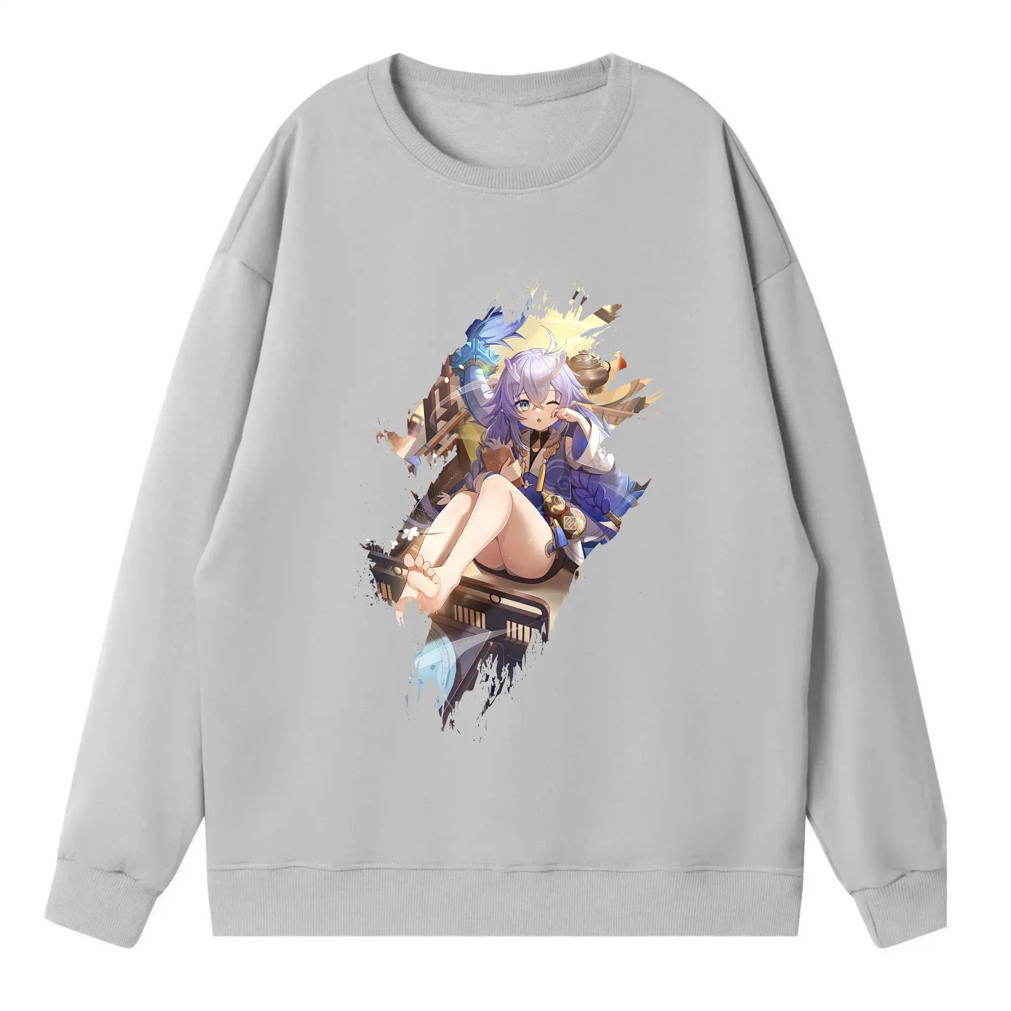 崩壊:スターレイル グッズ 白露 - 高品質 クルーネック スウェット ・ コットン59% ポリエステル41% ・ ユニセックス 長袖 トレーナー ・ カジュアル デイリー スポーツ 散歩用