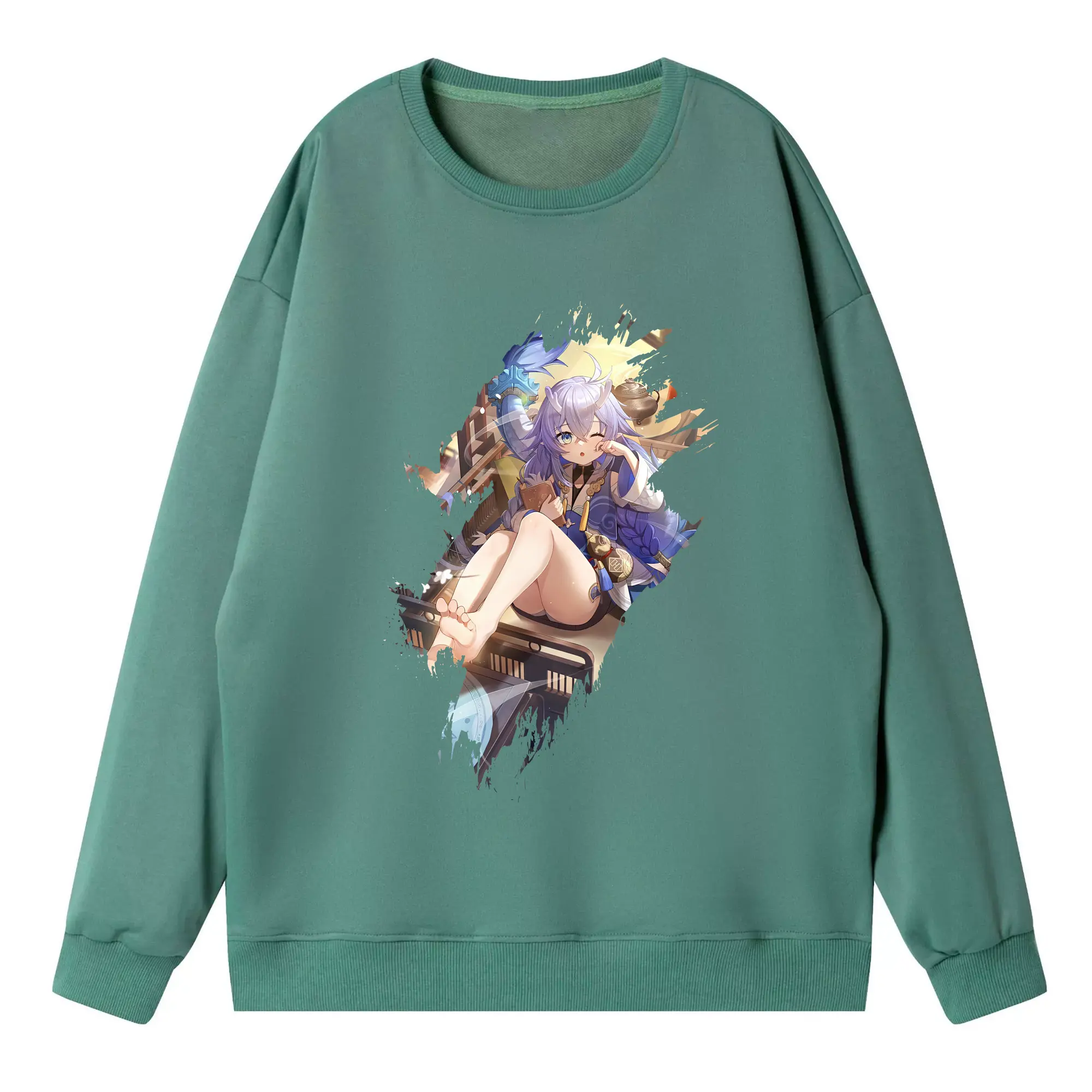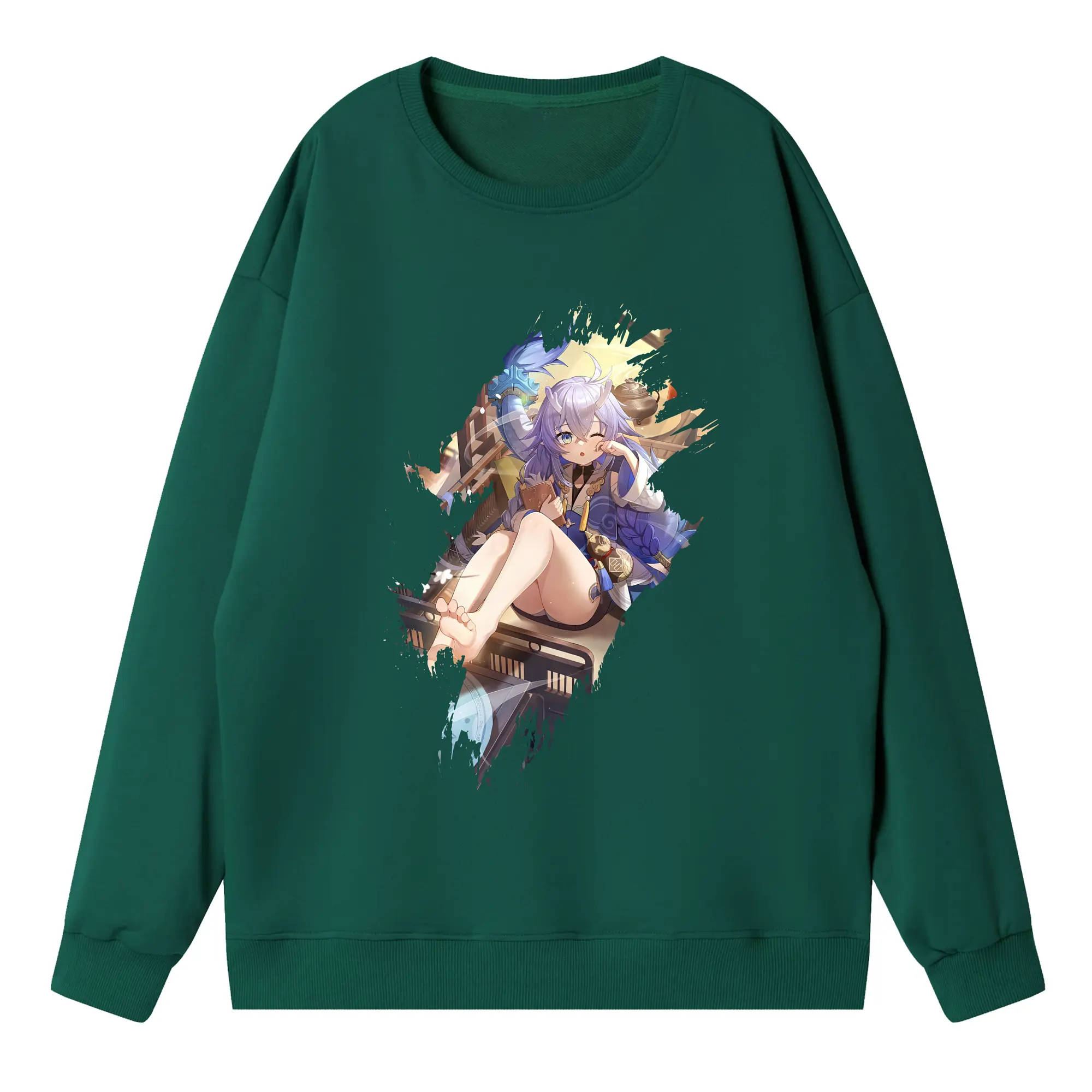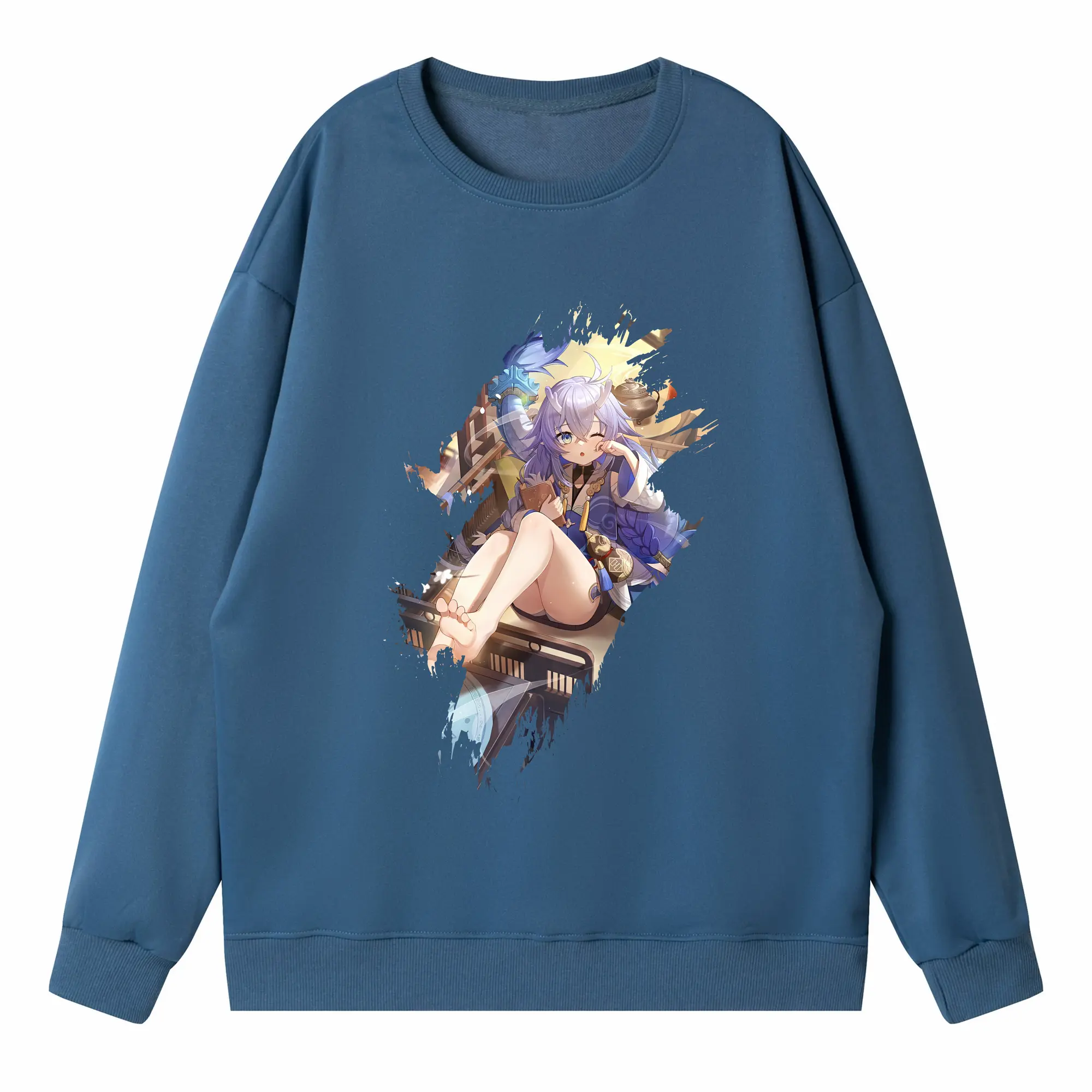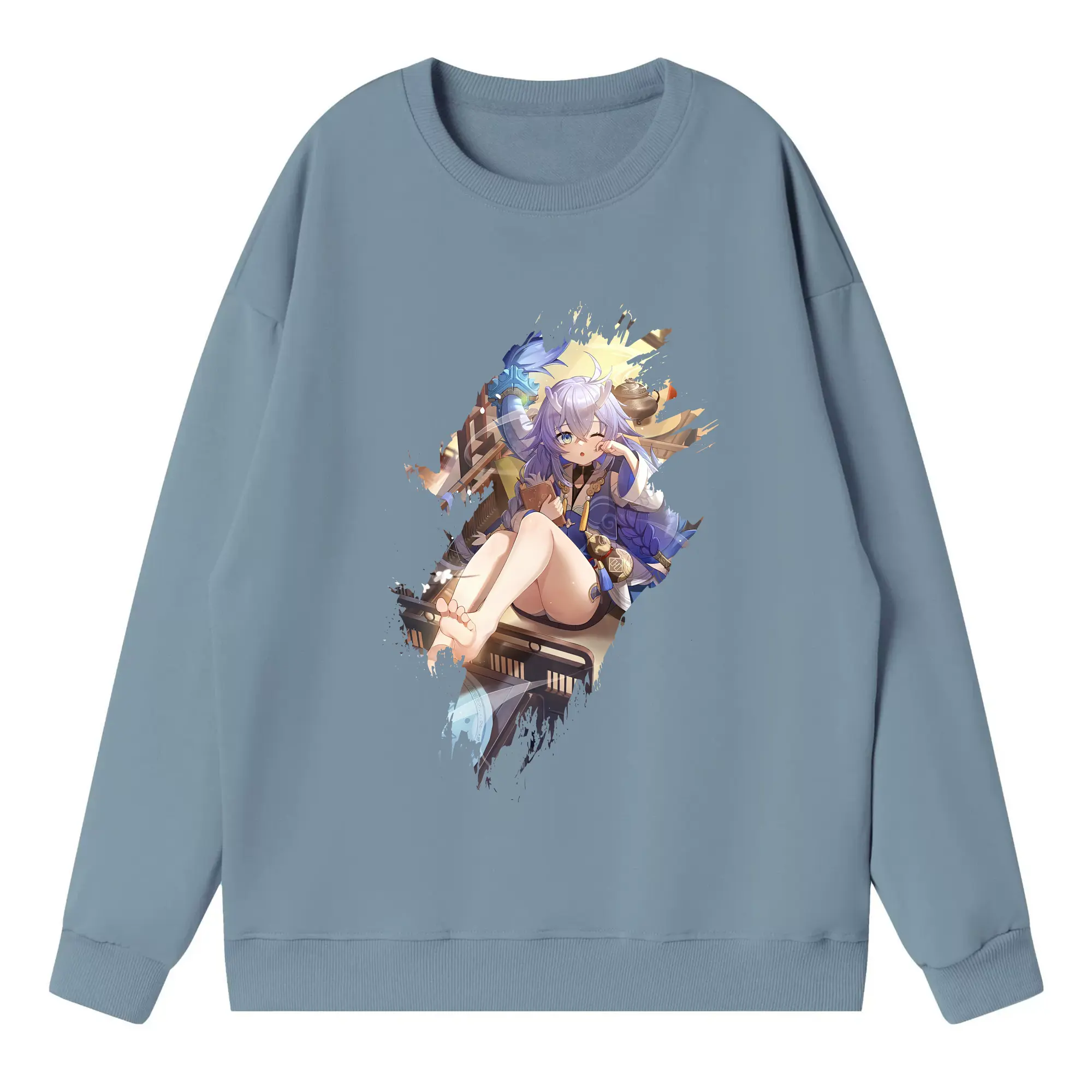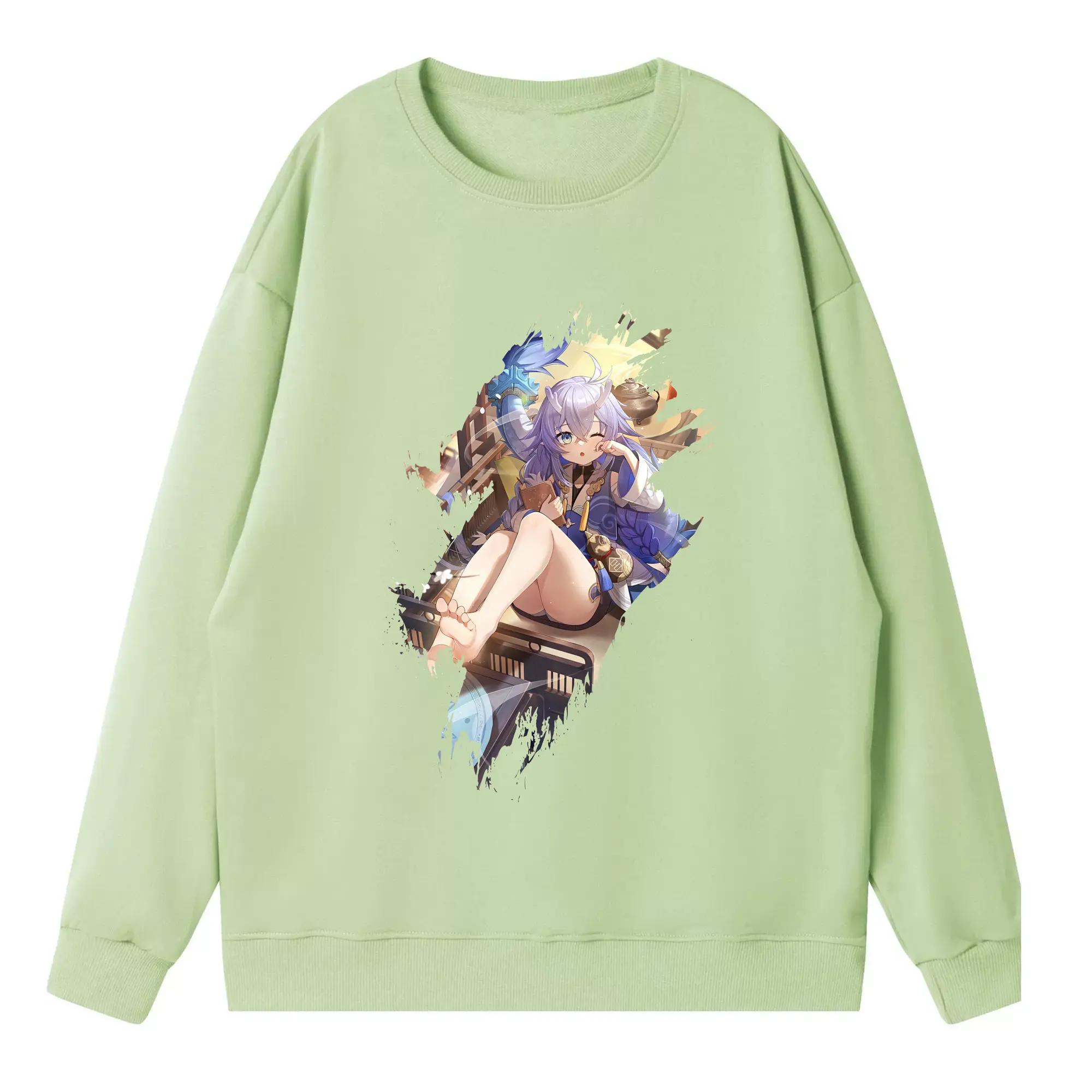 崩壊:スターレイル グッズ 白露 - 高品質 クルーネック スウェット ・ コットン59% ポリエステル41% ・ ユニセックス 長袖 トレーナー ・ カジュアル デイリー スポーツ 散歩用