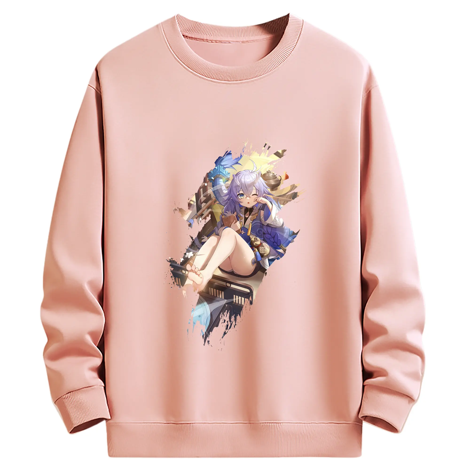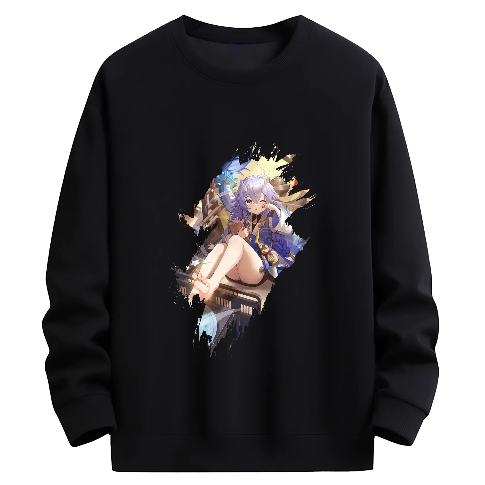 崩壊:スターレイル グッズ 白露 - 薄手 クルーネック スウェット 裏毛260g · ポリエステル 春秋向け カジュアル 男女兼用 · トレーナー デイリー スポーツ 散歩に最適