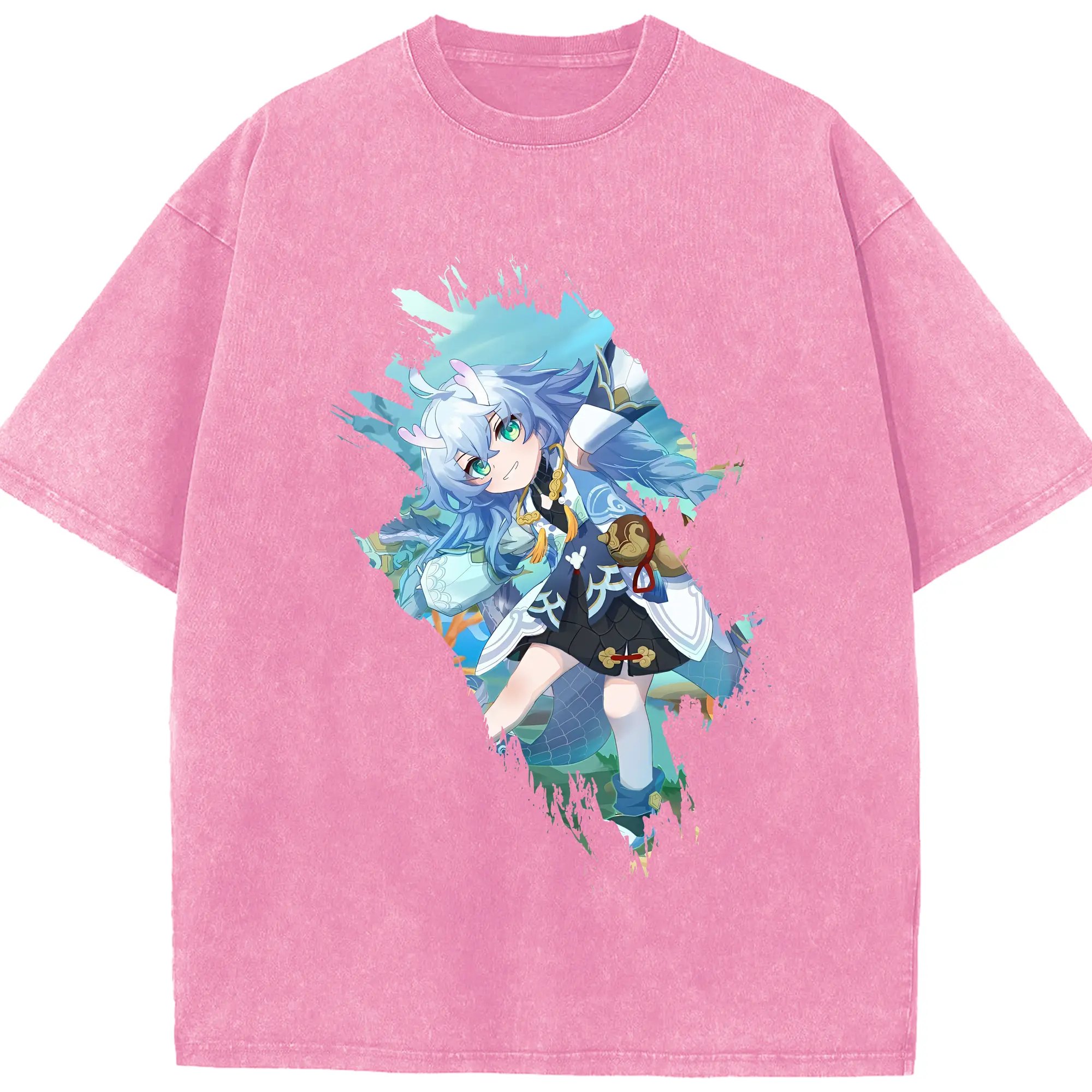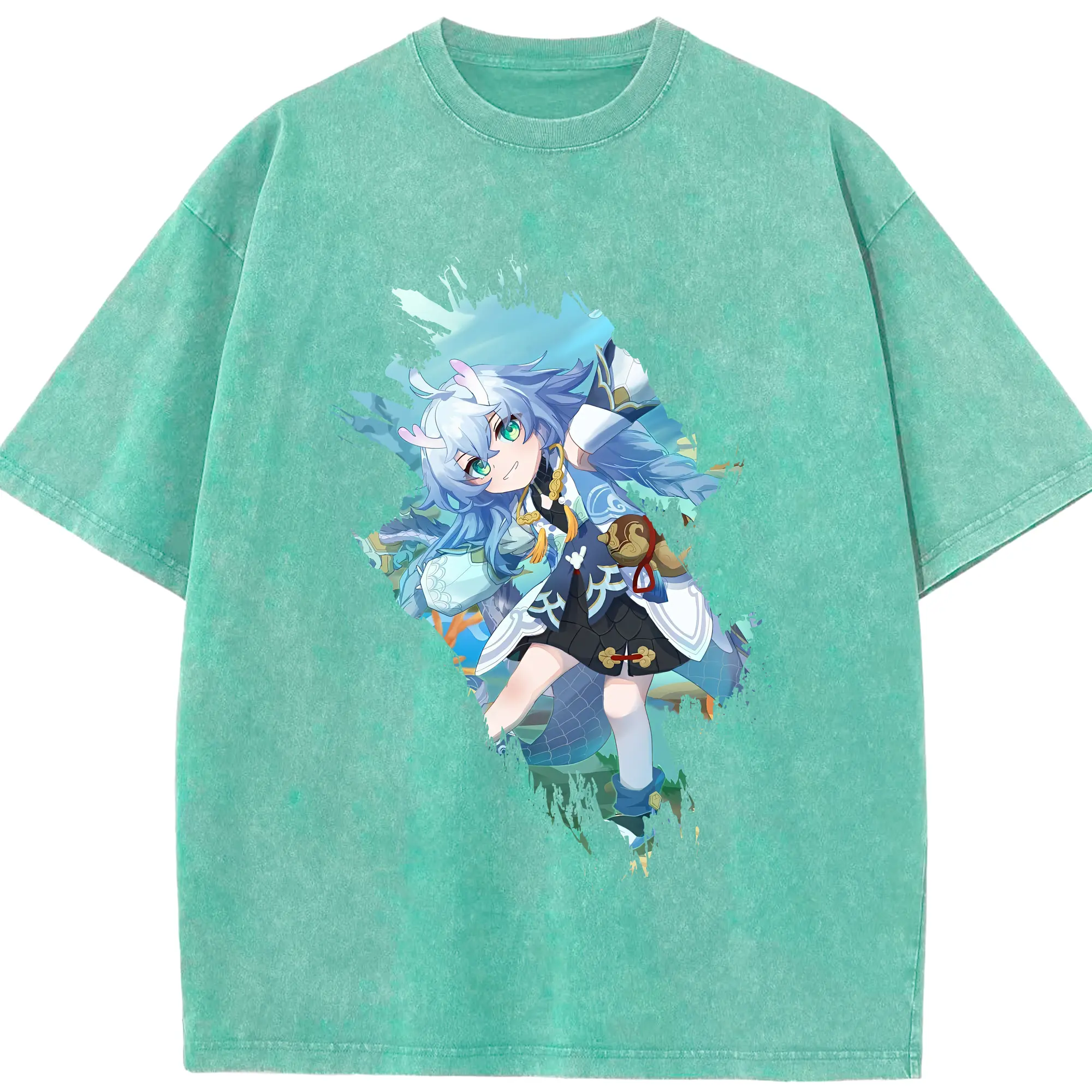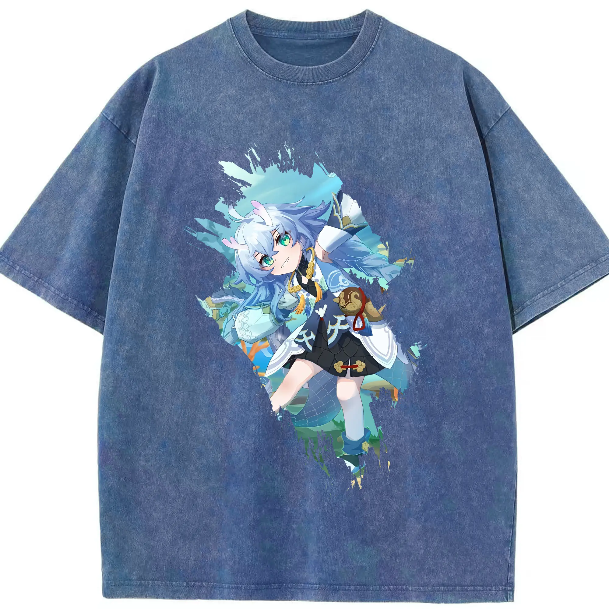 崩壊:スターレイル グッズ 白露 - 綿100% ヴィンテージ風 半袖Tシャツ ・ フロントプリント ・ 柔らか肌触り ・ 通気性 快適 ・ スポーツ カジュアル 外出用