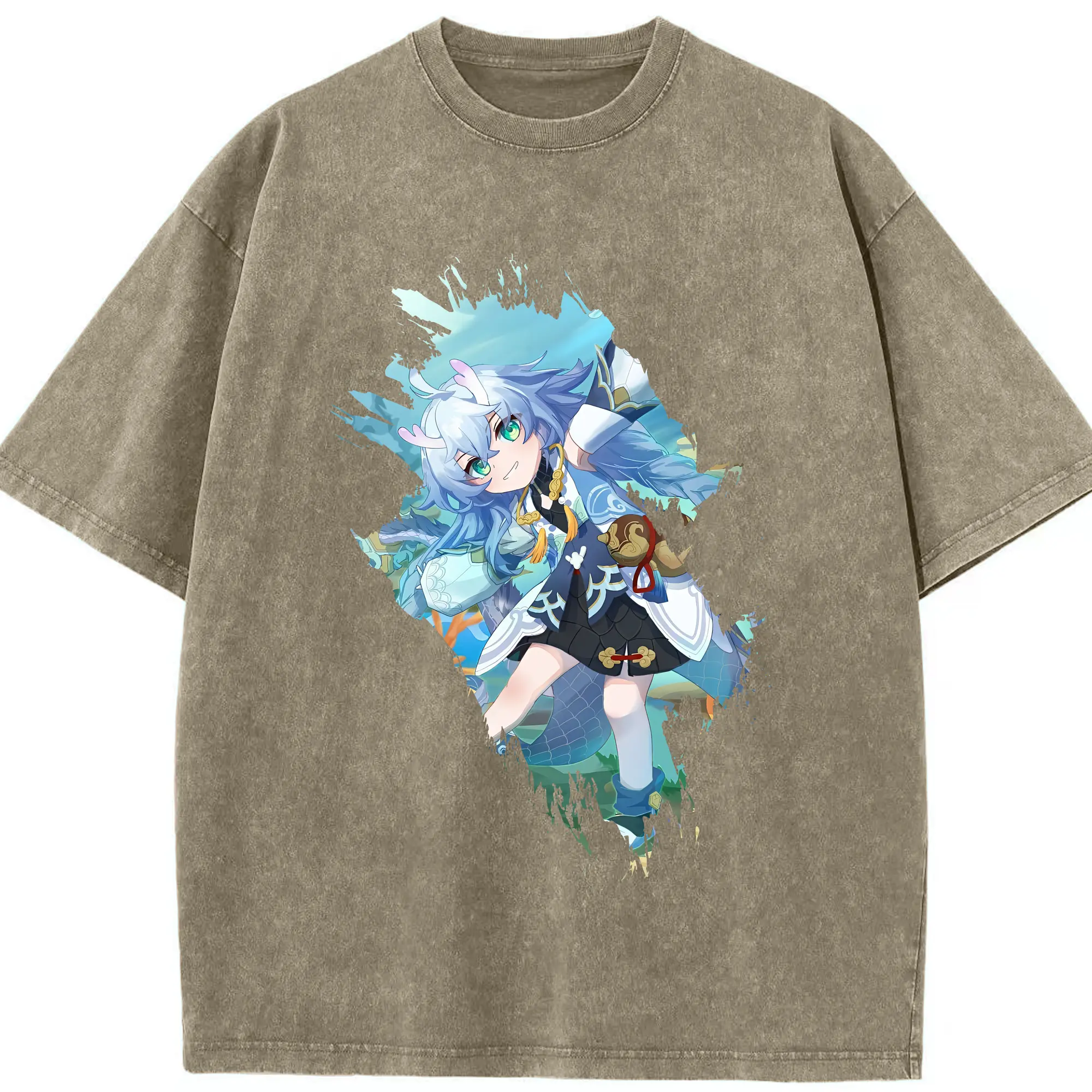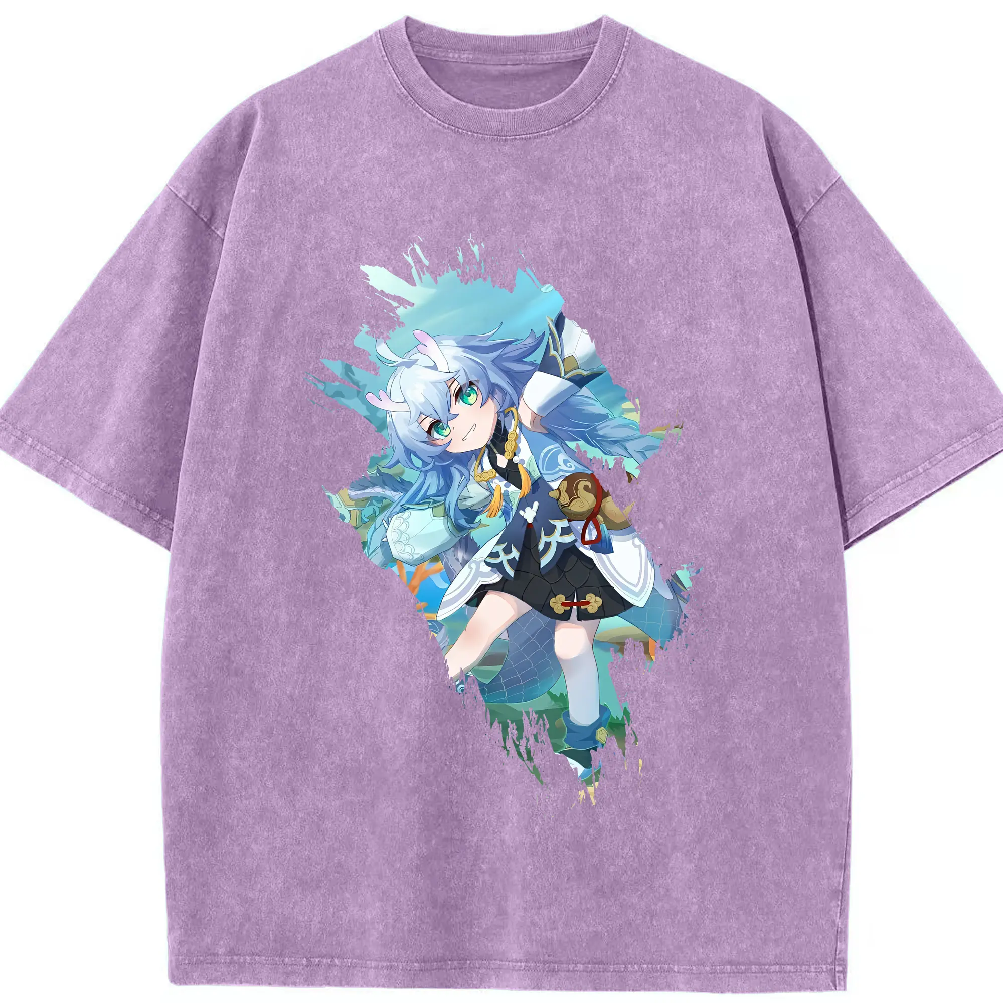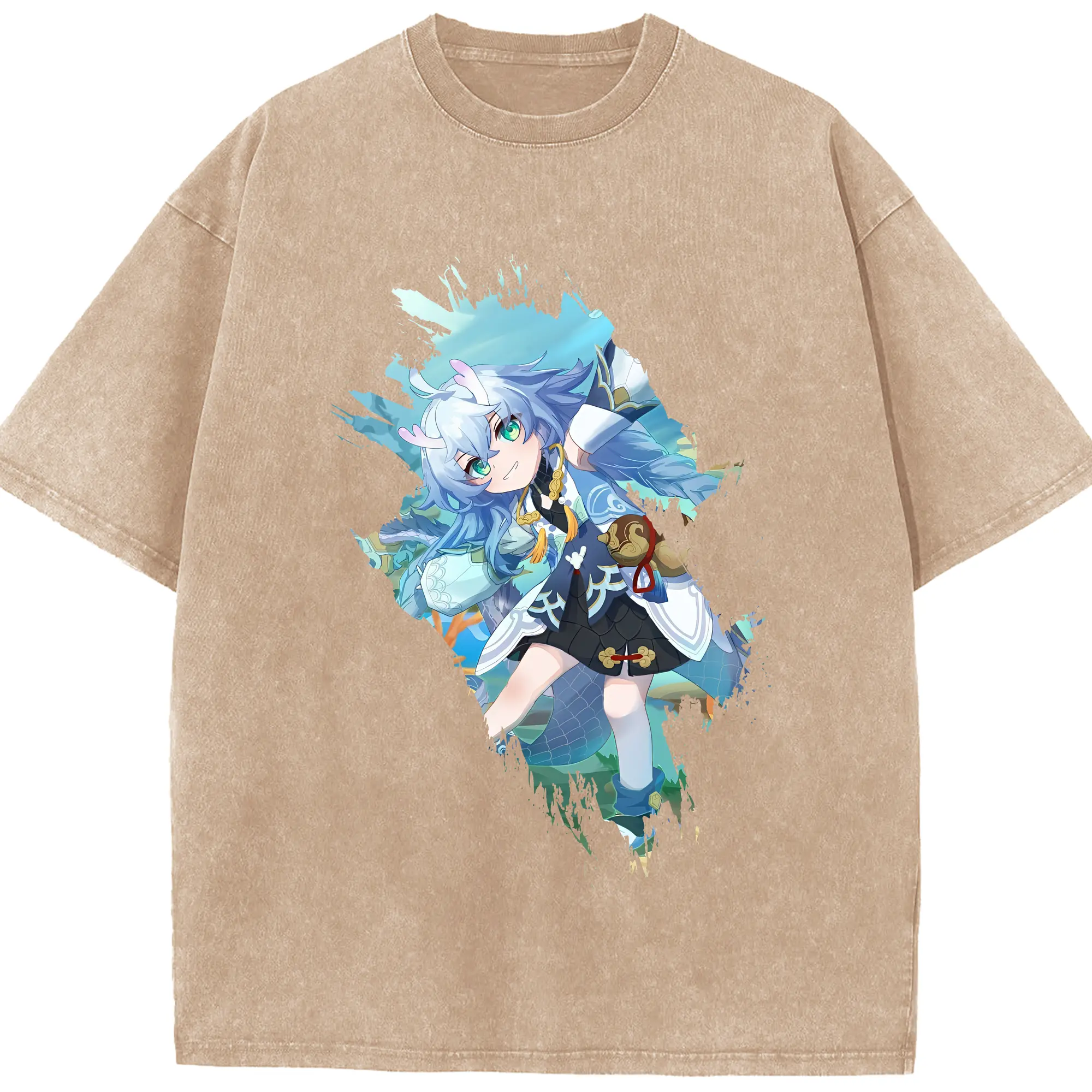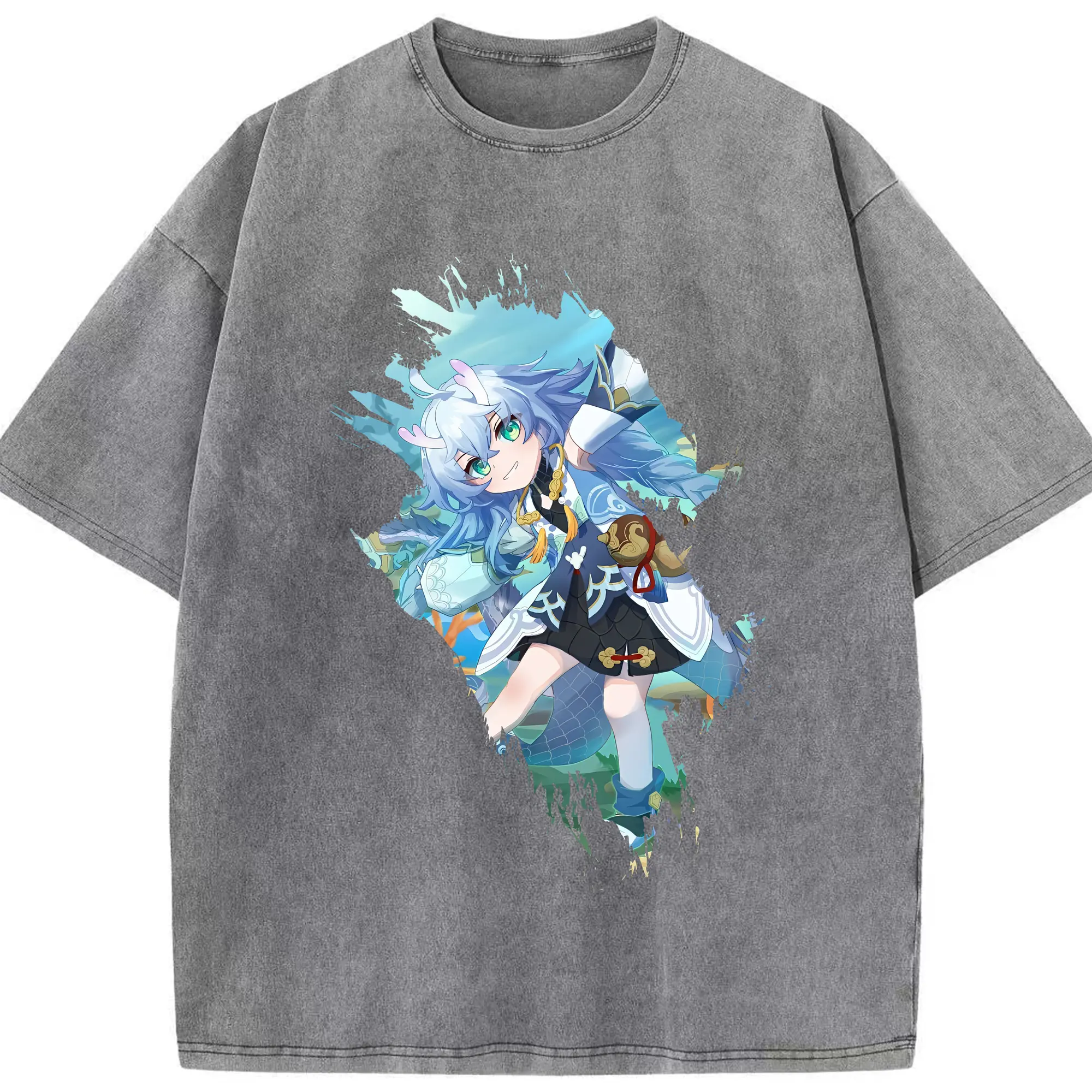 崩壊:スターレイル グッズ 白露 - 綿100% ヴィンテージ風 半袖Tシャツ ・ フロントプリント ・ 柔らか肌触り ・ 通気性 快適 ・ スポーツ カジュアル 外出用