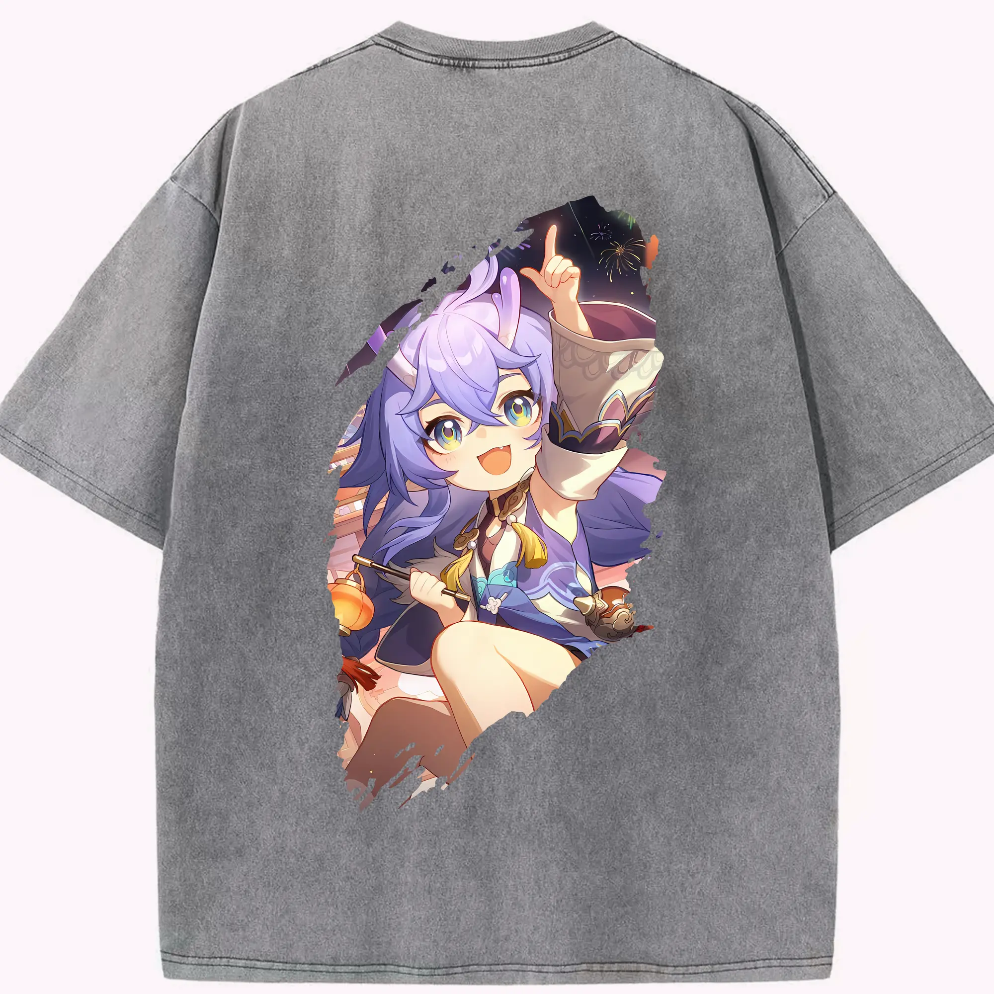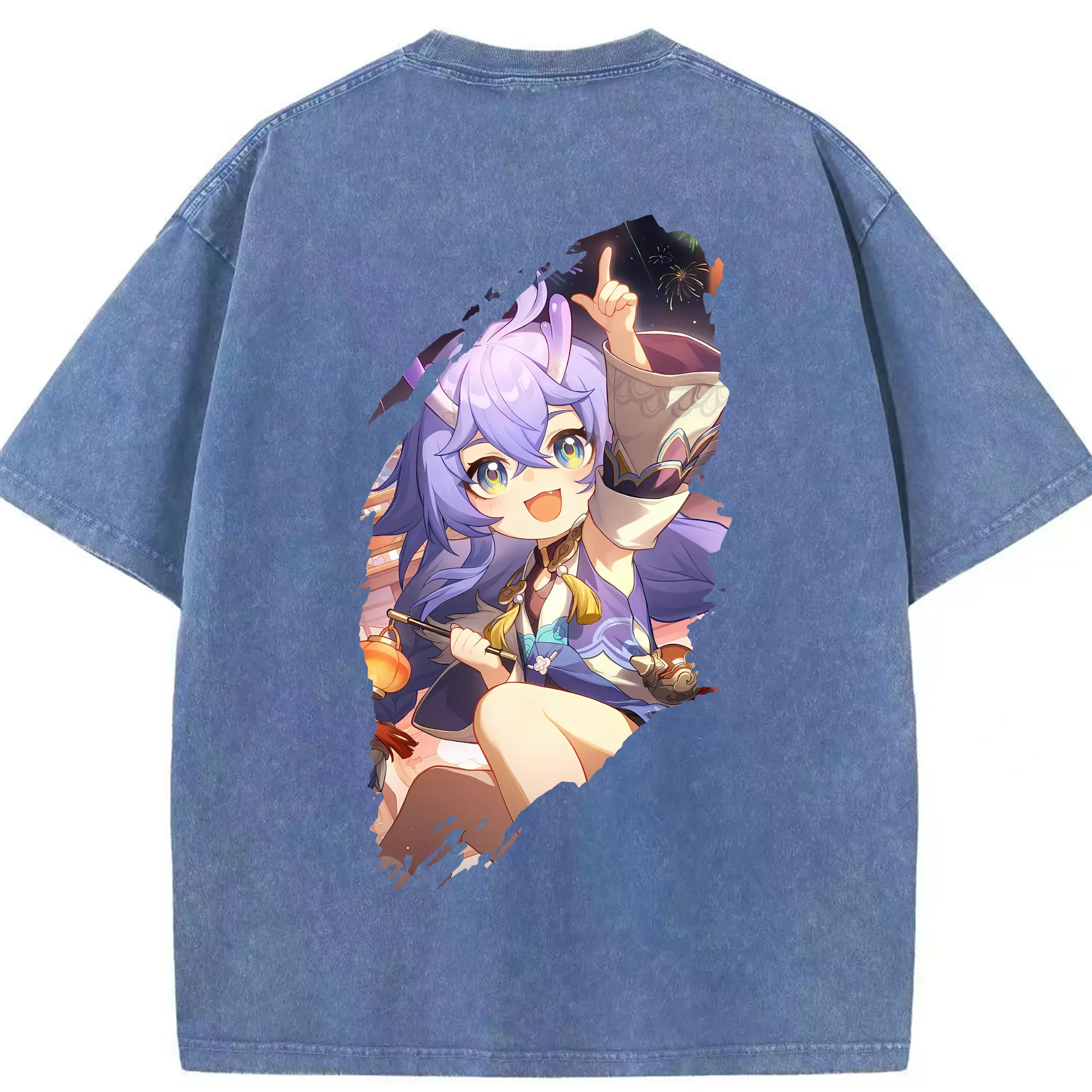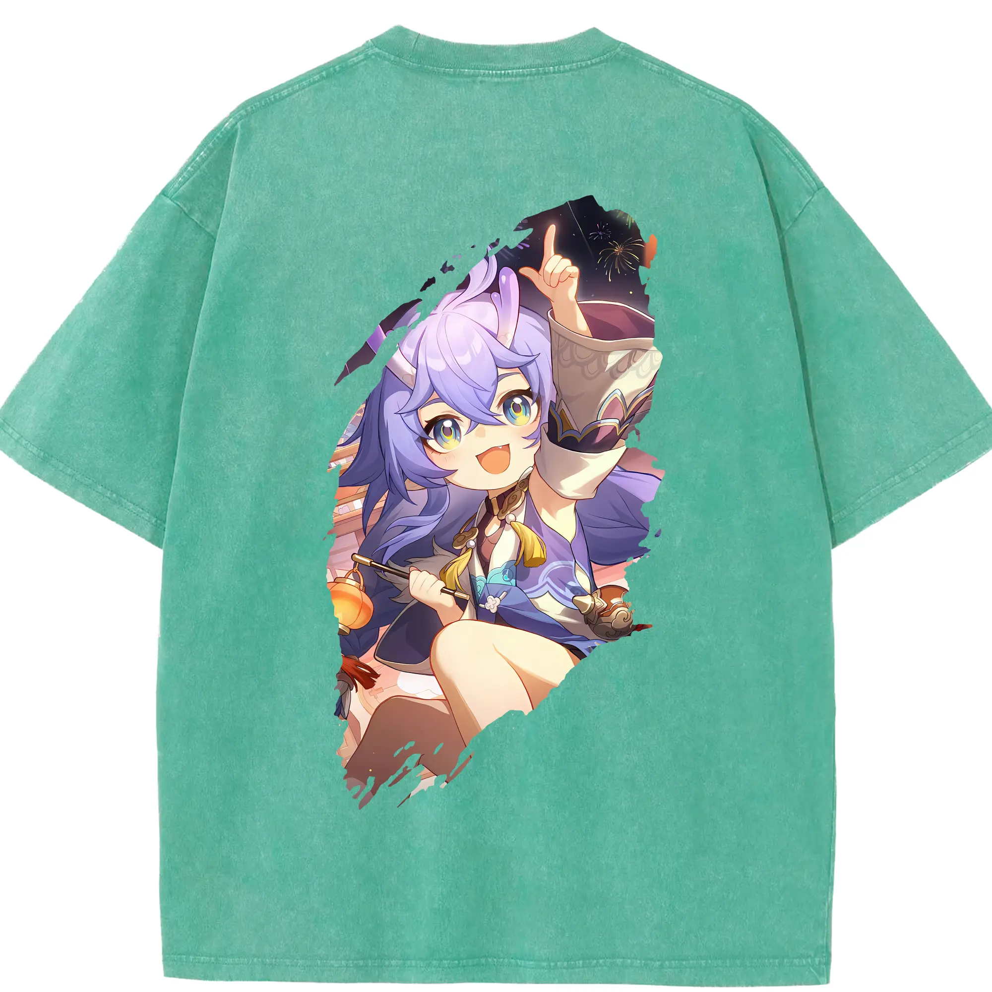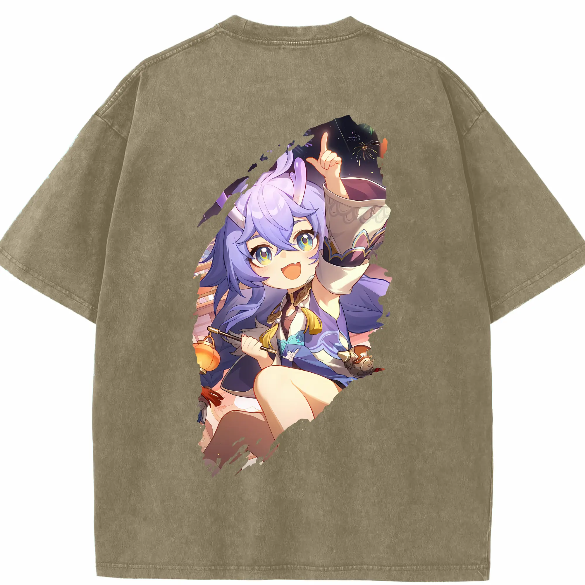 崩壊:スターレイル グッズ 白露 - 綿100% ヴィンテージ風 半袖Tシャツ ・ フロントプリント ・ 柔らか肌触り ・ 通気性 快適 ・ スポーツ カジュアル 外出用