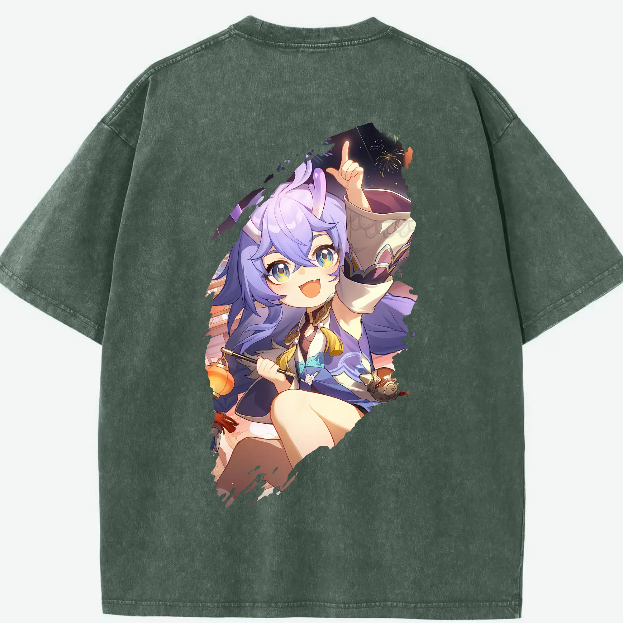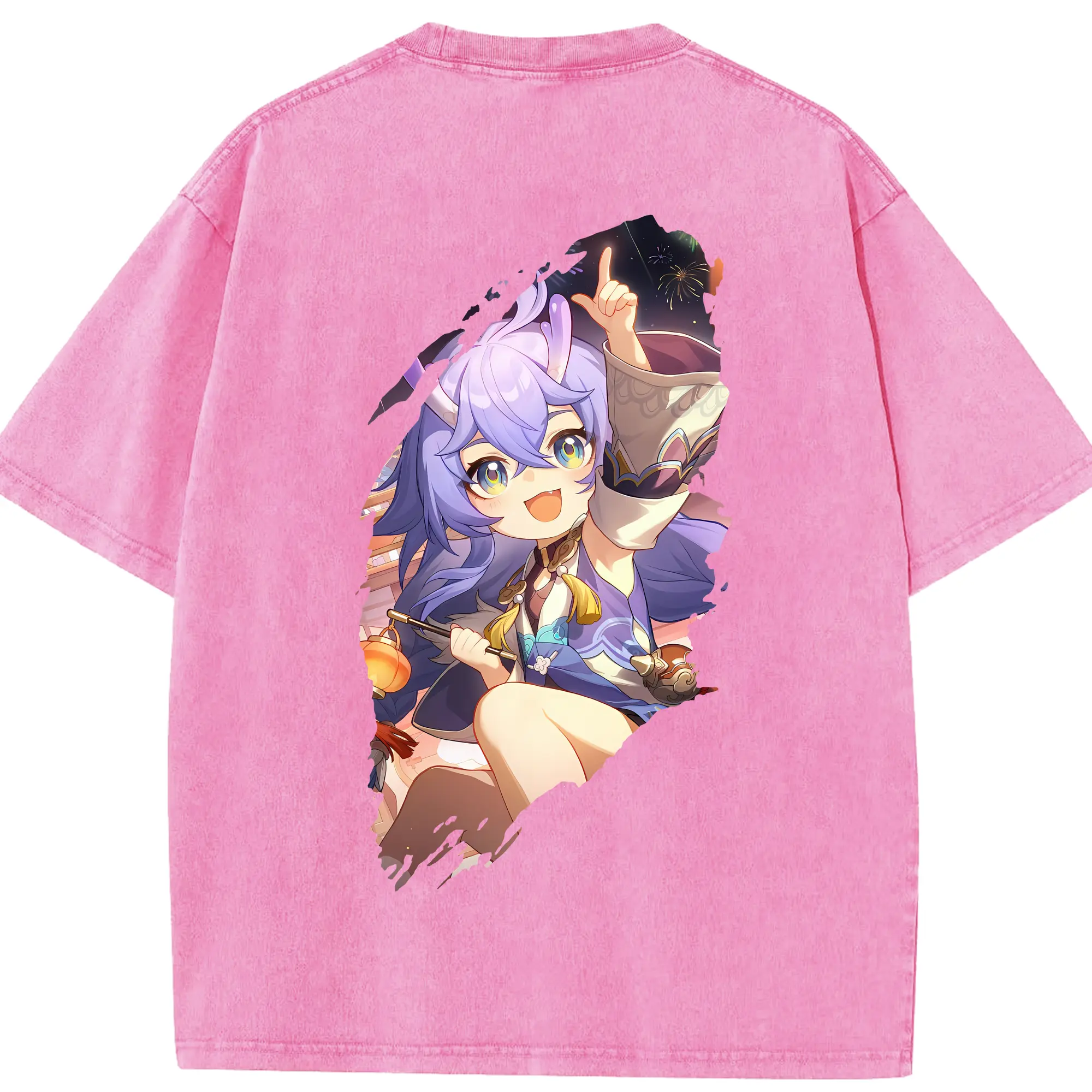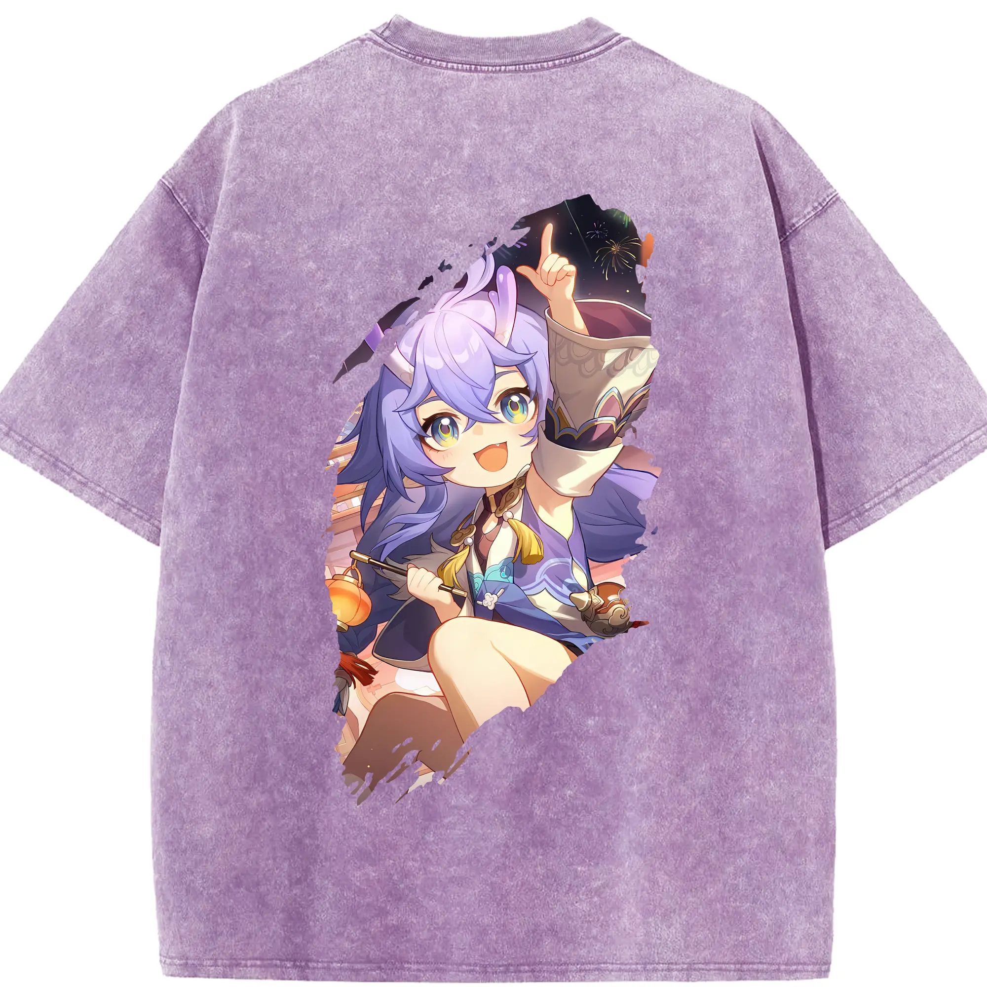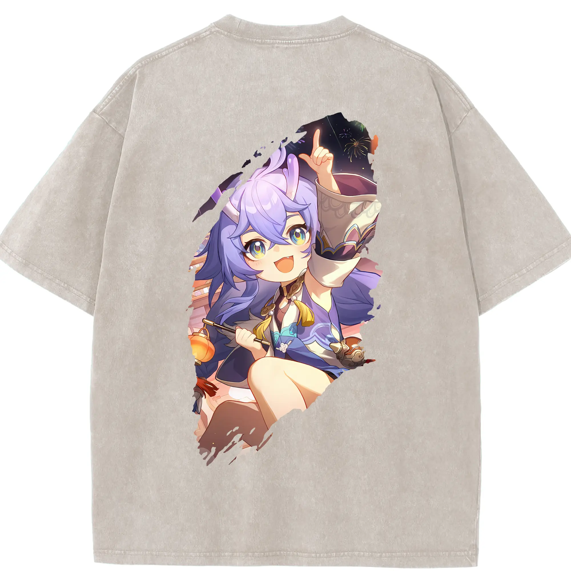 崩壊:スターレイル グッズ 白露 - 綿100% ヴィンテージ風 半袖Tシャツ ・ フロントプリント ・ 柔らか肌触り ・ 通気性 快適 ・ スポーツ カジュアル 外出用