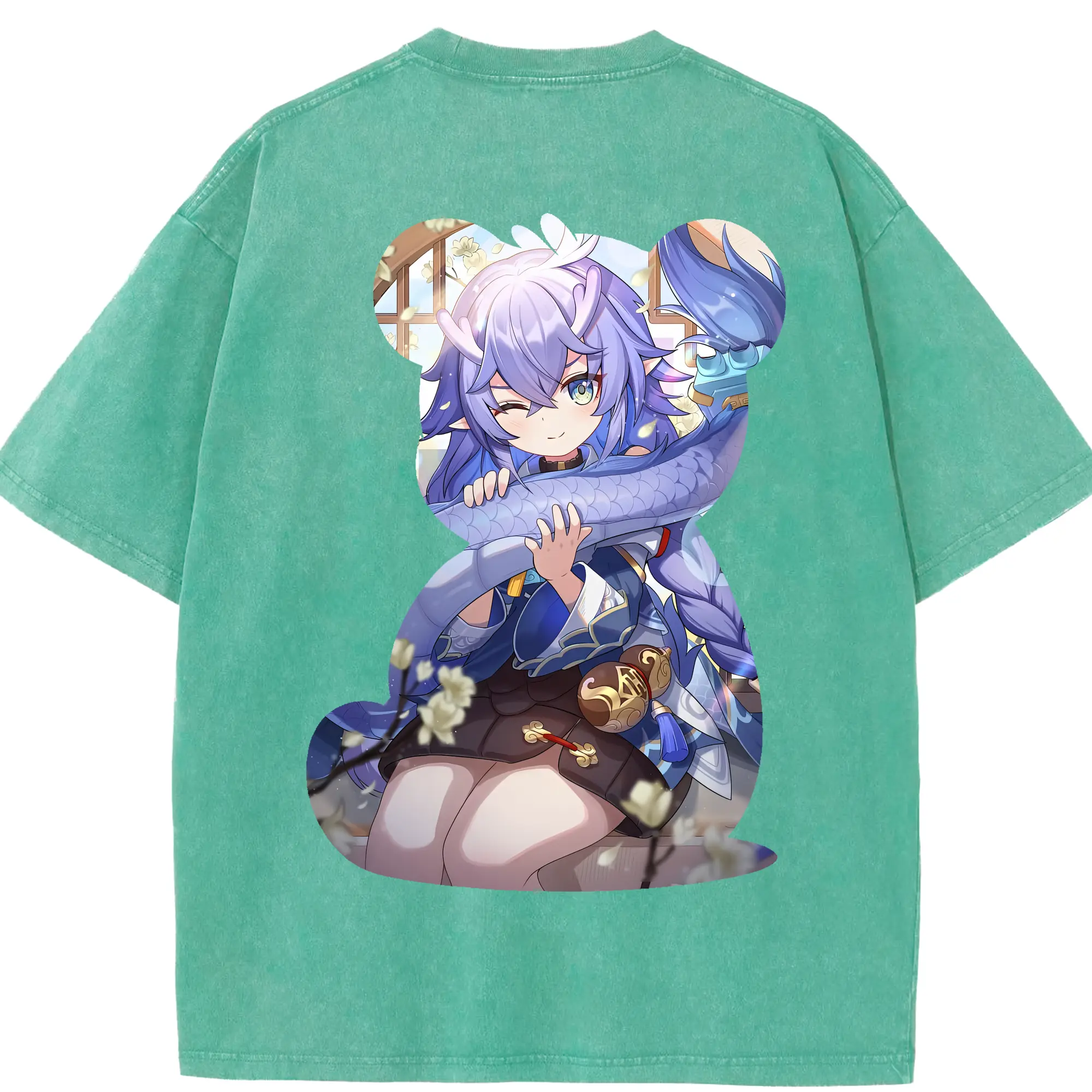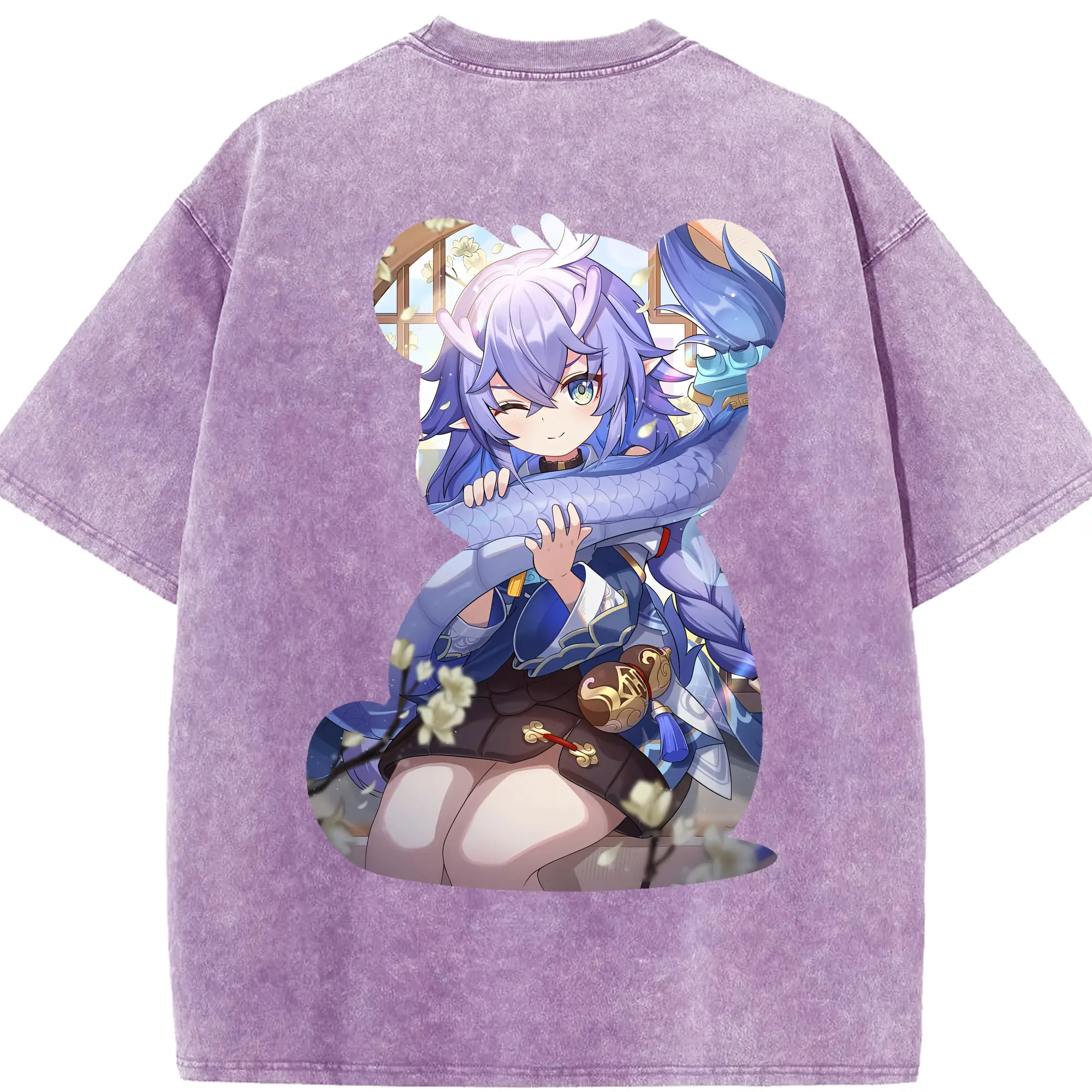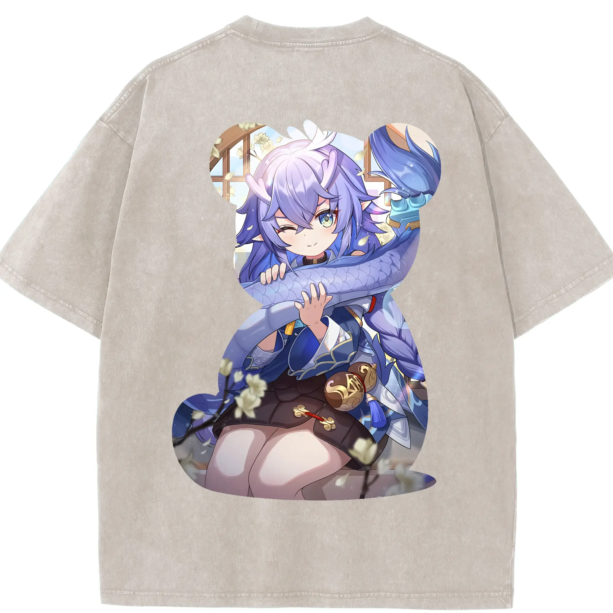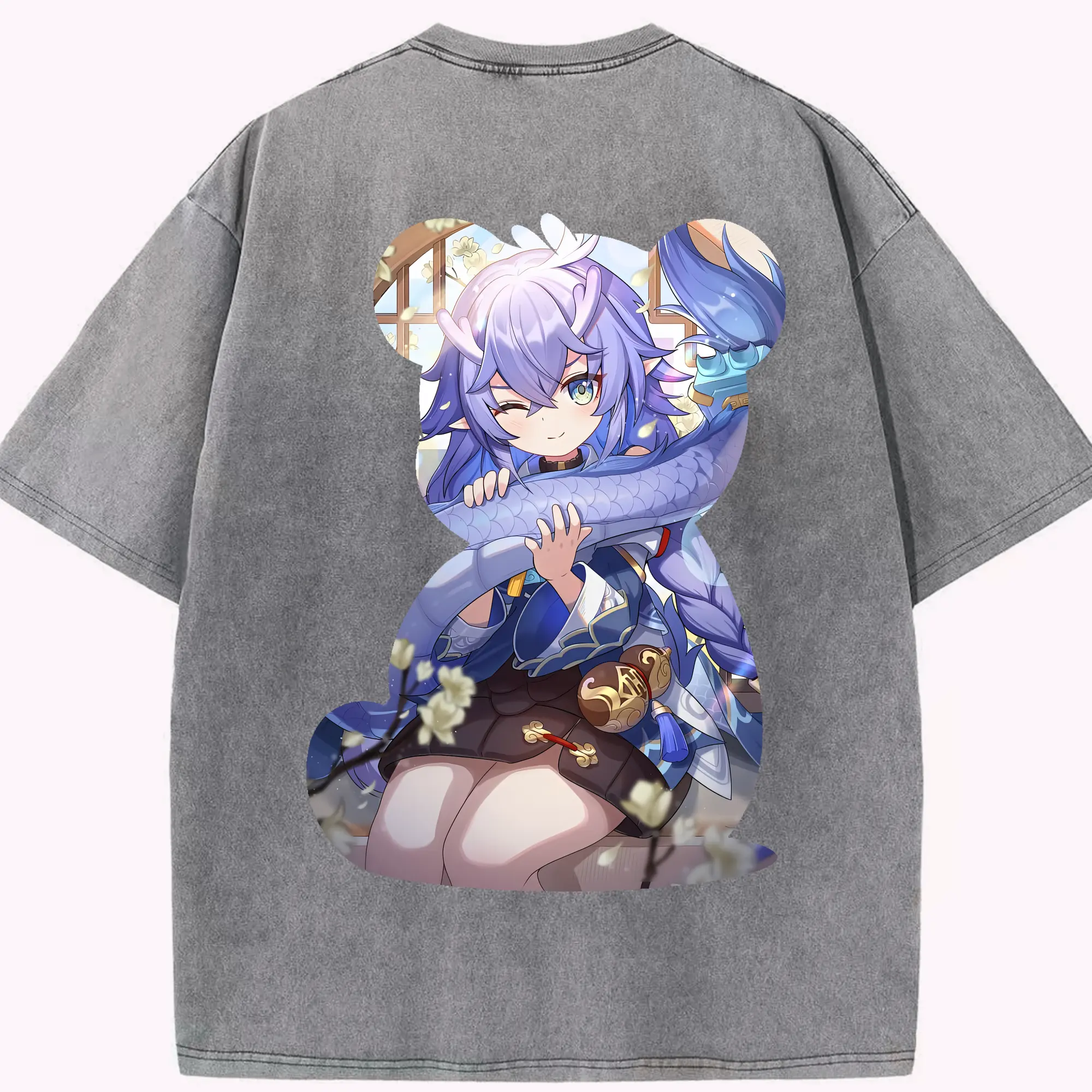 崩壊:スターレイル グッズ 白露 - 綿100% ヴィンテージ風 半袖Tシャツ ・ フロントプリント ・ 柔らか肌触り ・ 通気性 快適 ・ スポーツ カジュアル 外出用