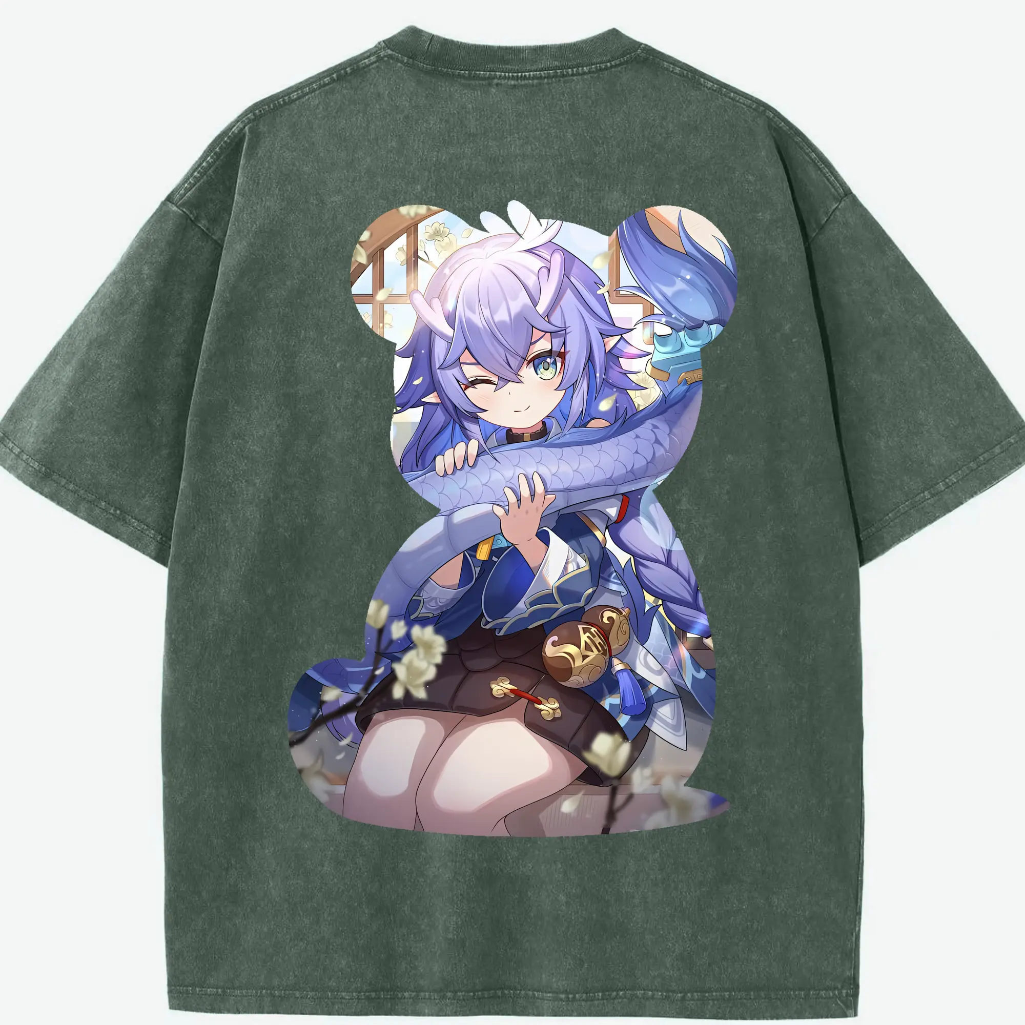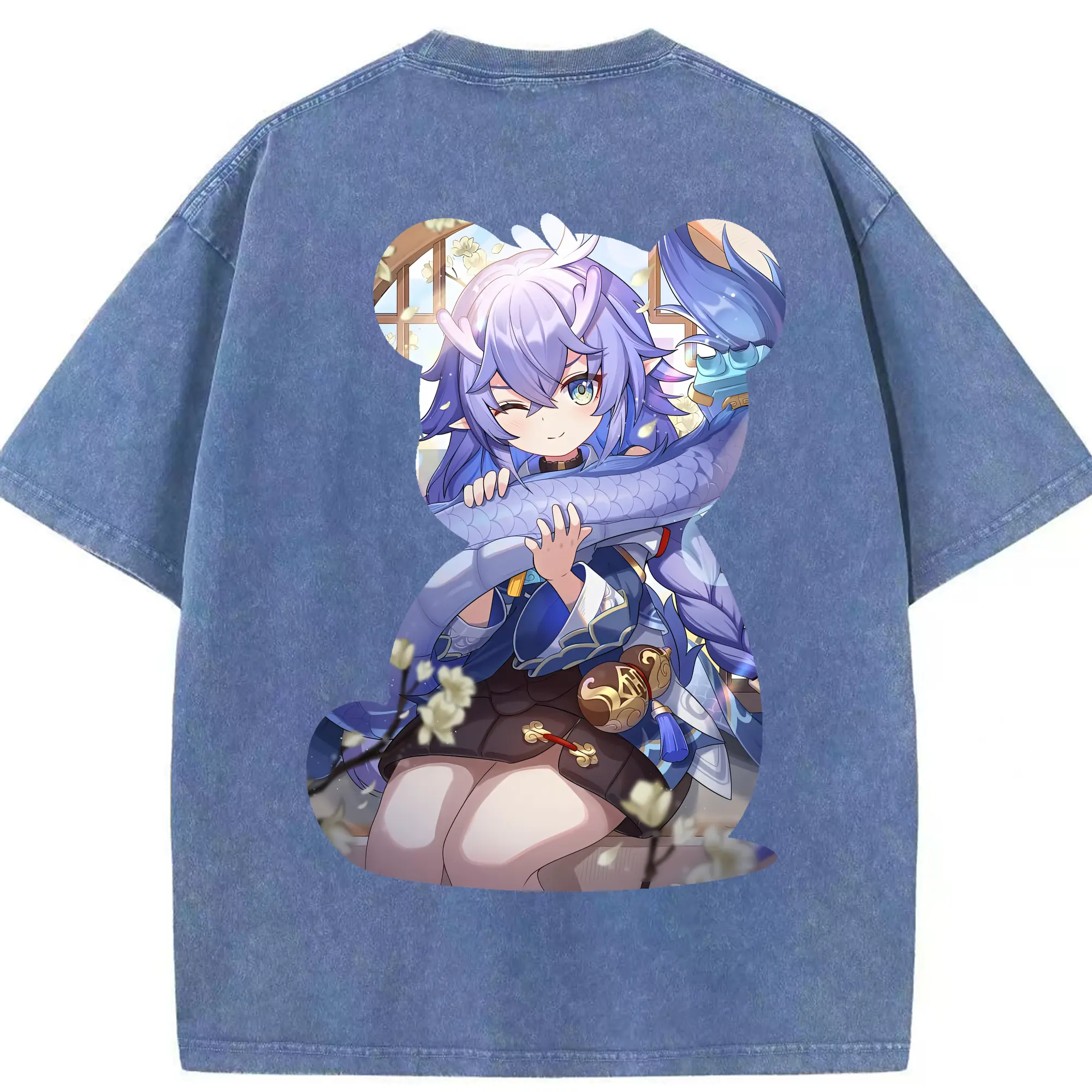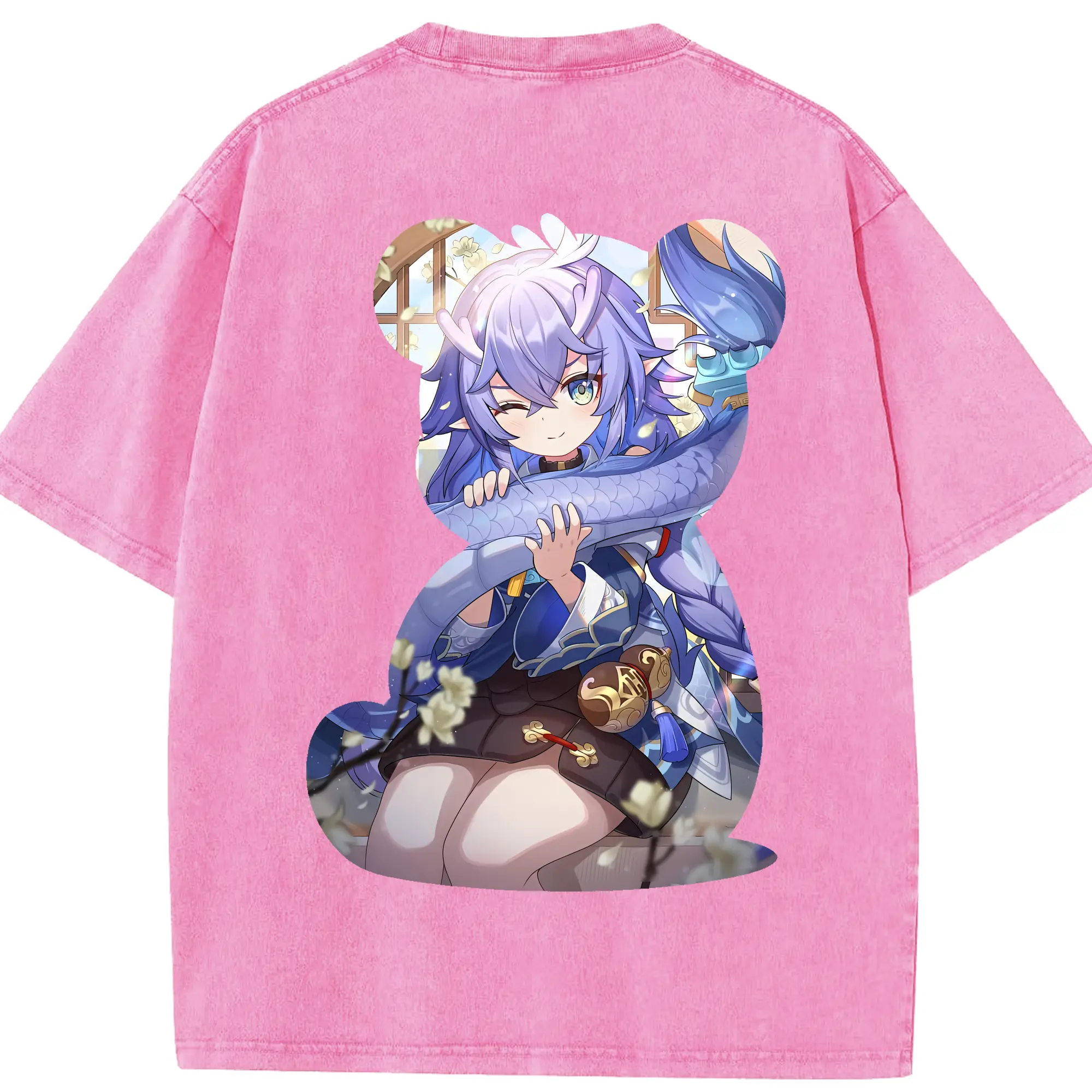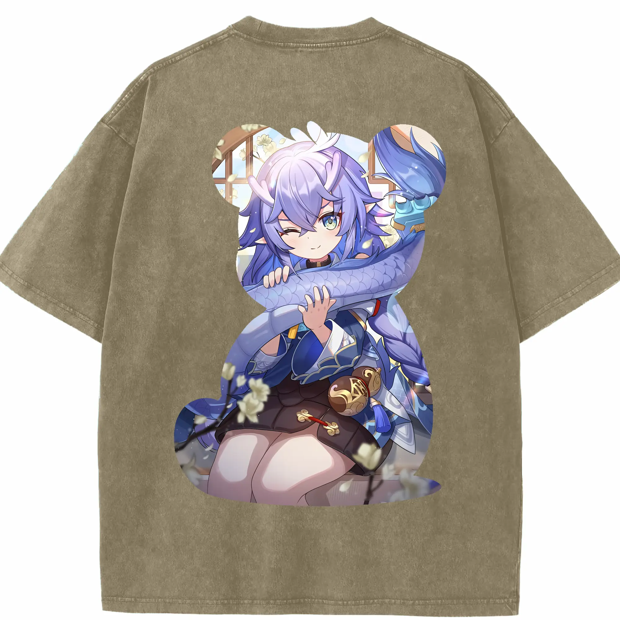 崩壊:スターレイル グッズ 白露 - 綿100% ヴィンテージ風 半袖Tシャツ ・ フロントプリント ・ 柔らか肌触り ・ 通気性 快適 ・ スポーツ カジュアル 外出用