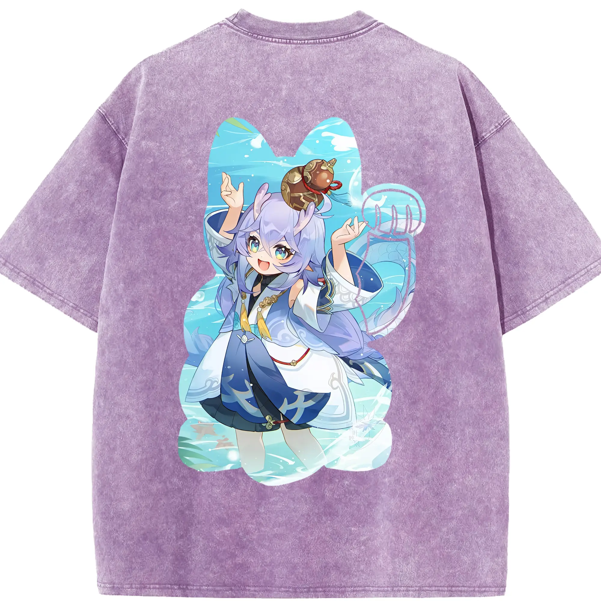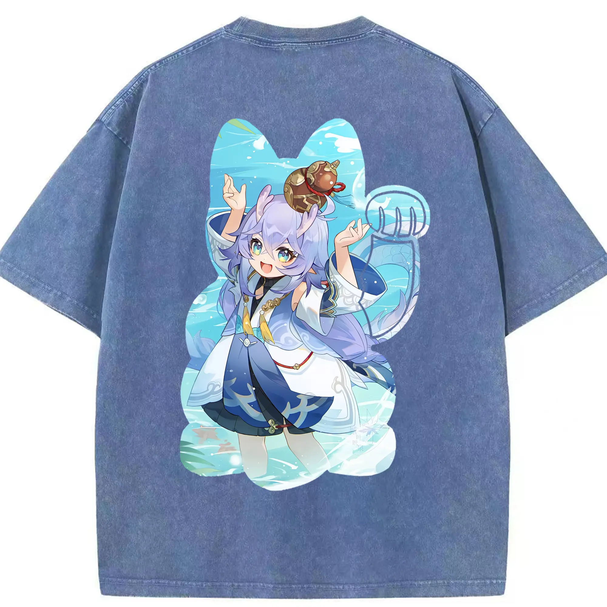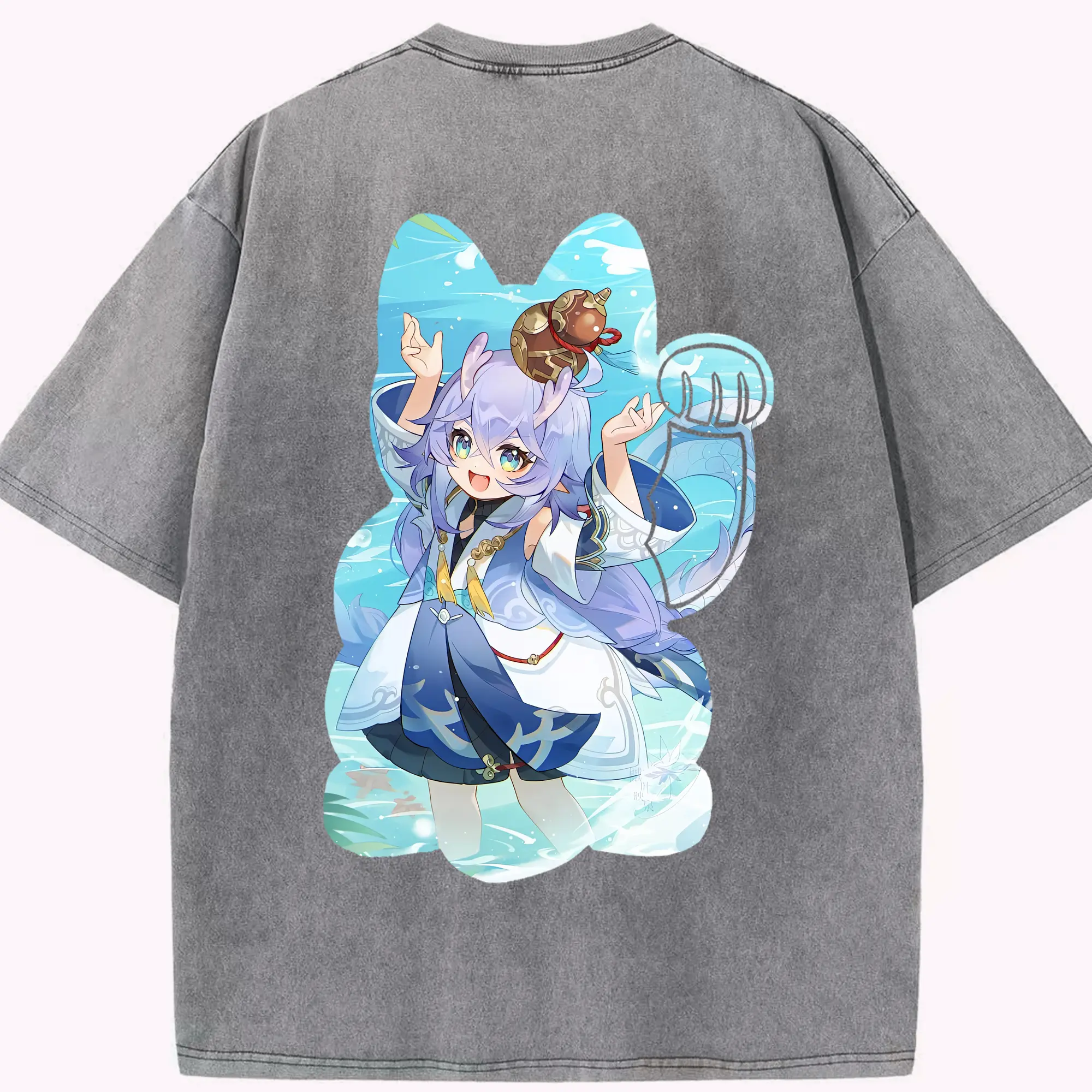 鳴潮 グッズ フィービー - 綿100% ヴィンテージ風 半袖Tシャツ ・ 背面プリント ・ 柔らか肌触り ・ 通気性 快適 ・ スポーツ カジュアル 外出用