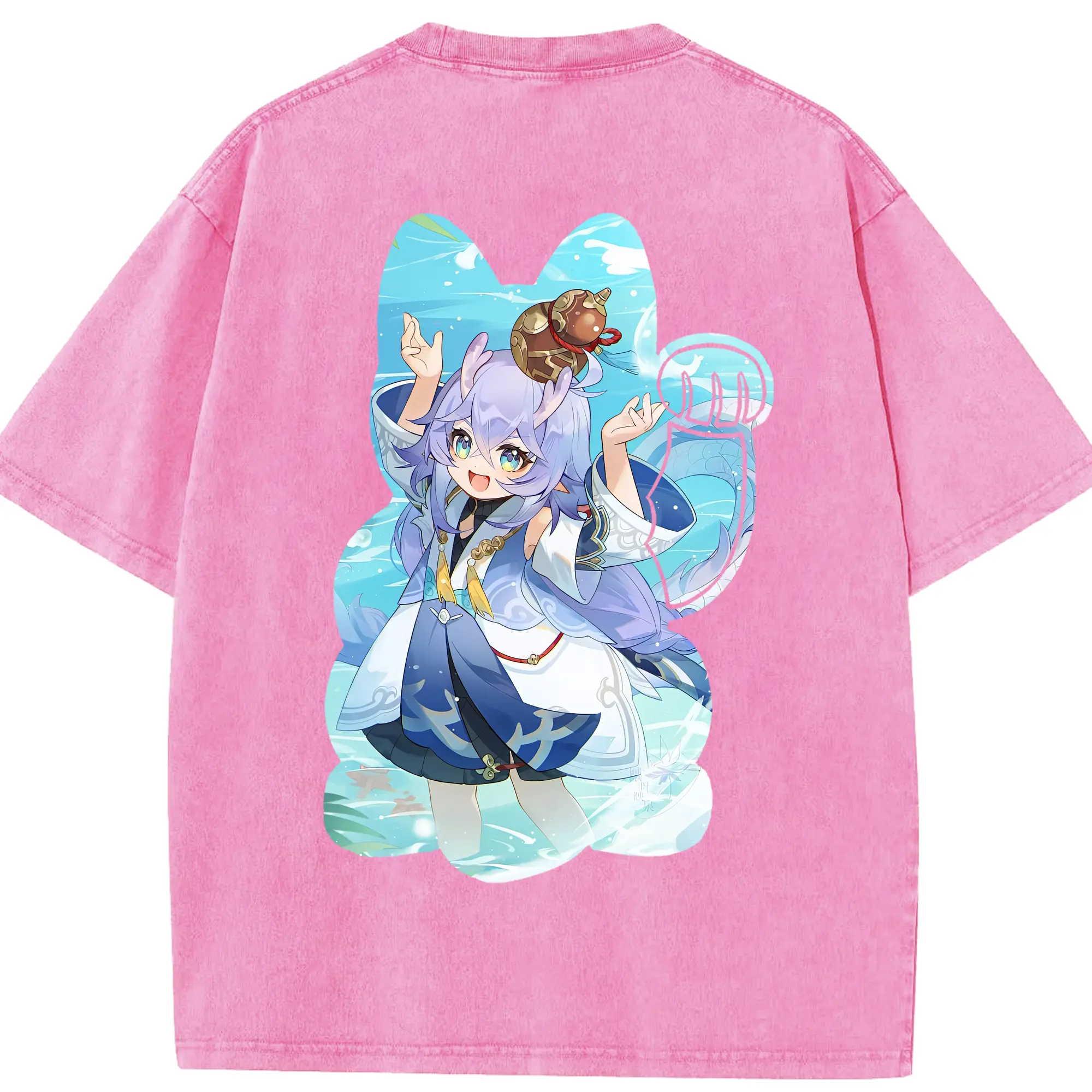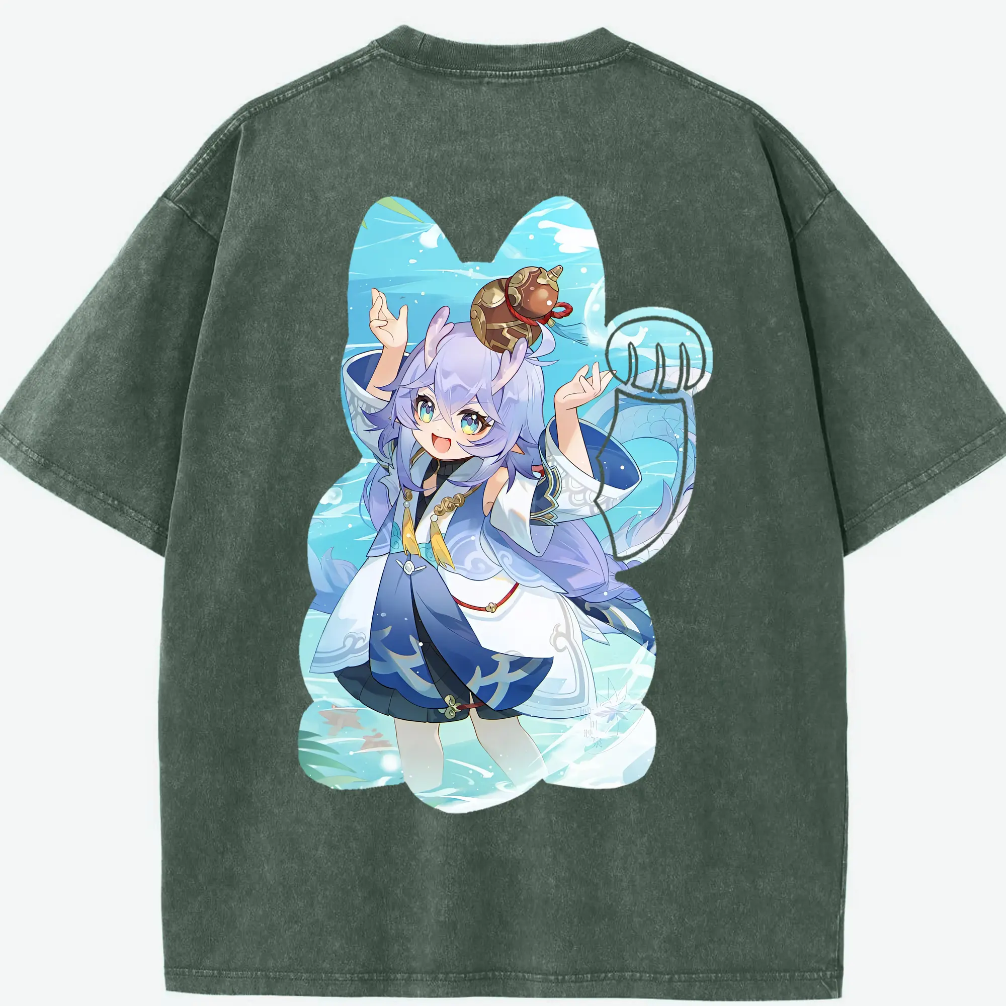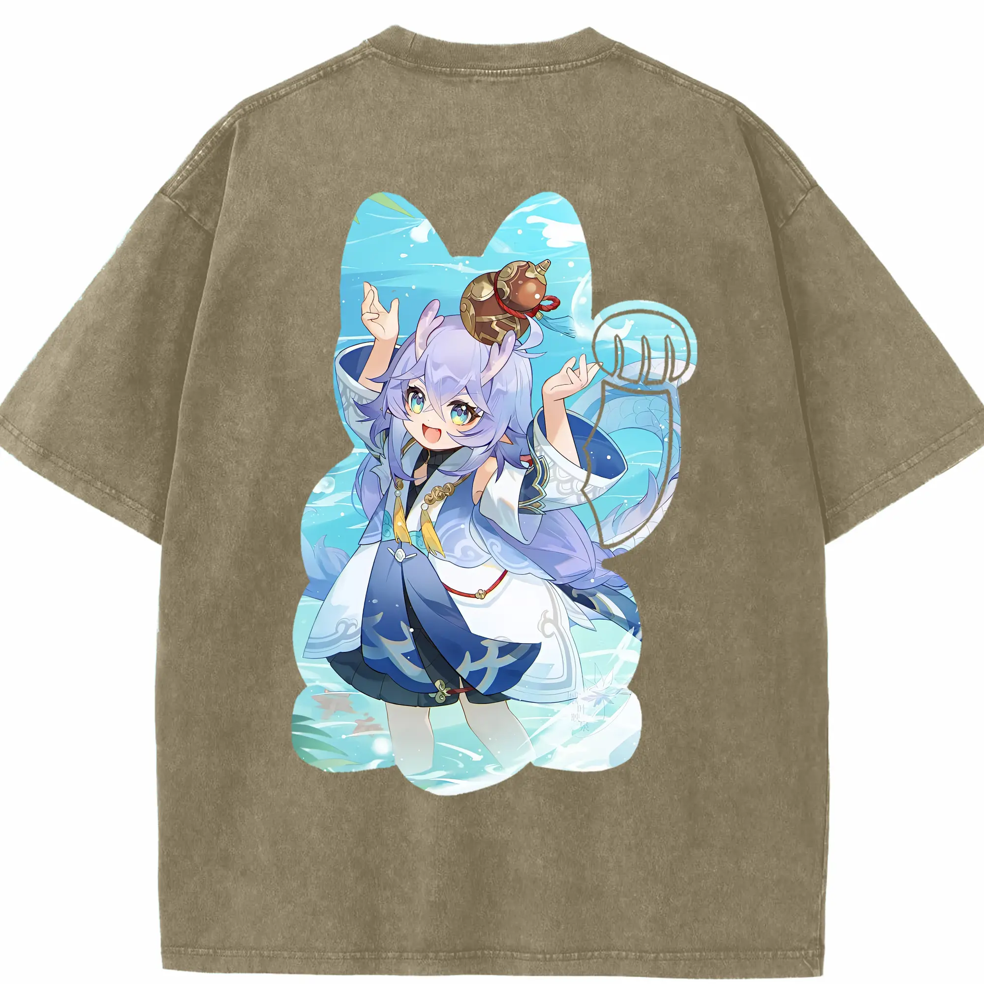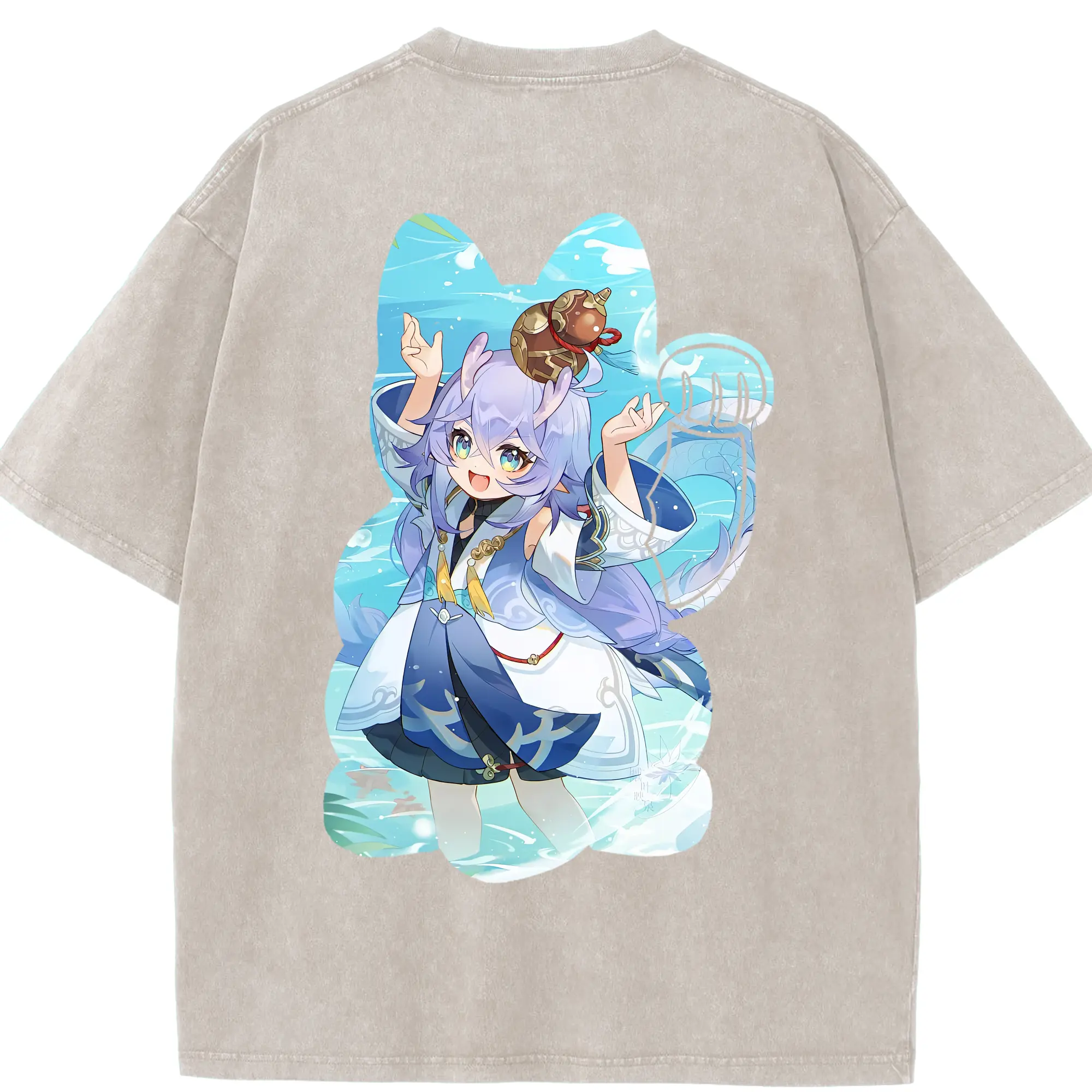 鳴潮 グッズ フィービー - 綿100% ヴィンテージ風 半袖Tシャツ ・ 背面プリント ・ 柔らか肌触り ・ 通気性 快適 ・ スポーツ カジュアル 外出用