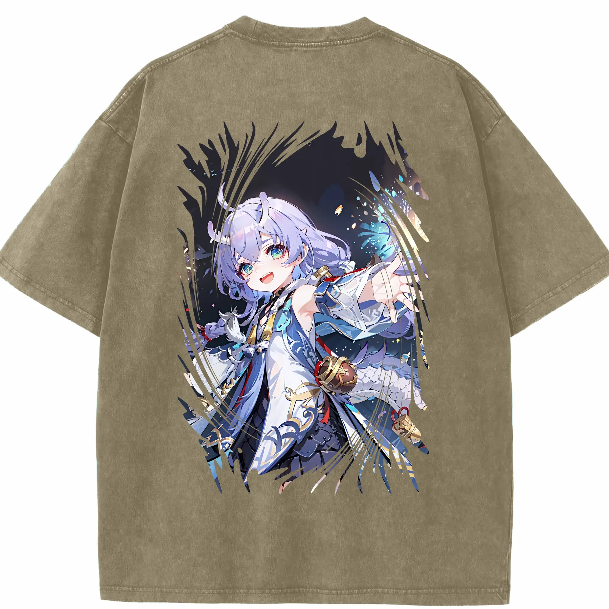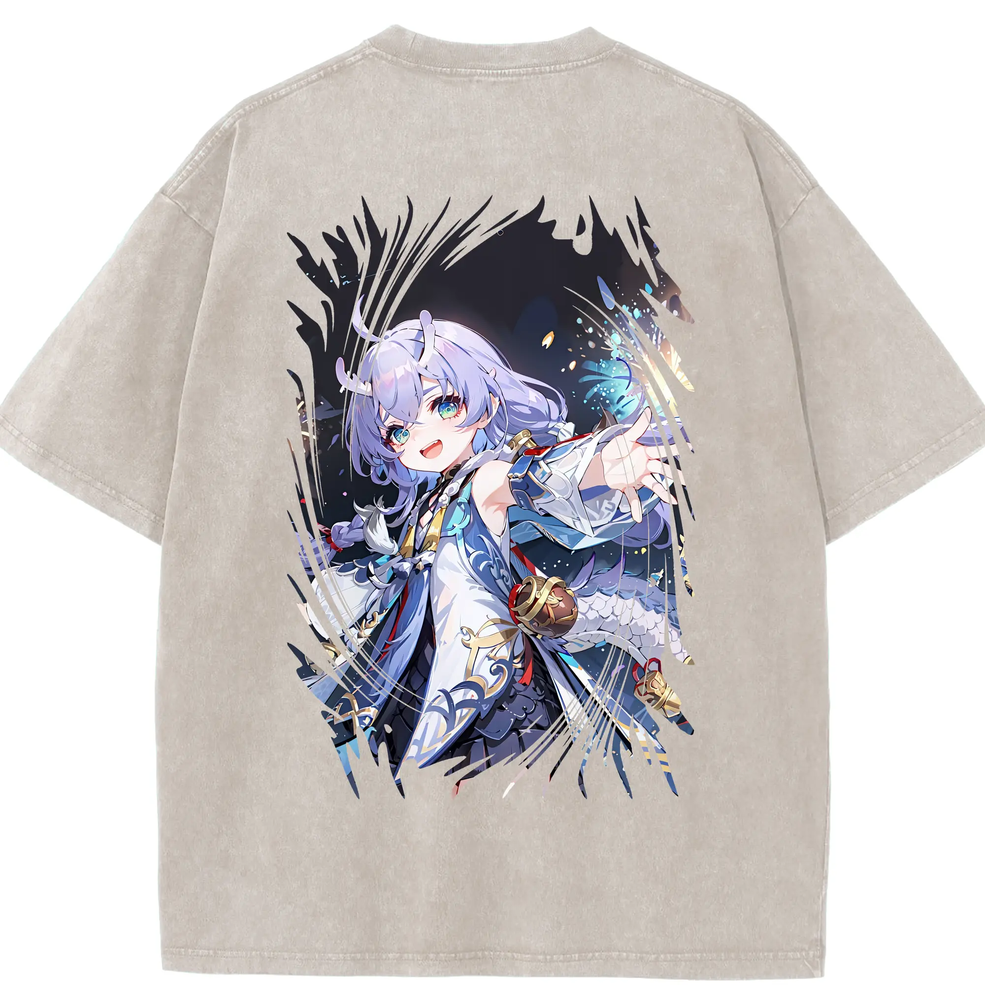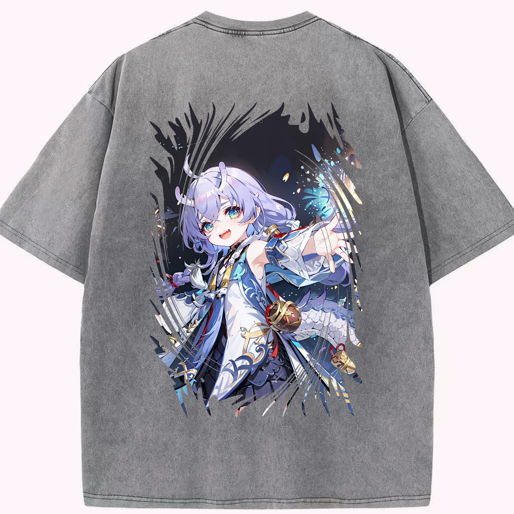 崩壊:スターレイル グッズ 白露 - 綿100% ヴィンテージ風 半袖Tシャツ ・ フロントプリント ・ 柔らか肌触り ・ 通気性 快適 ・ スポーツ カジュアル 外出用