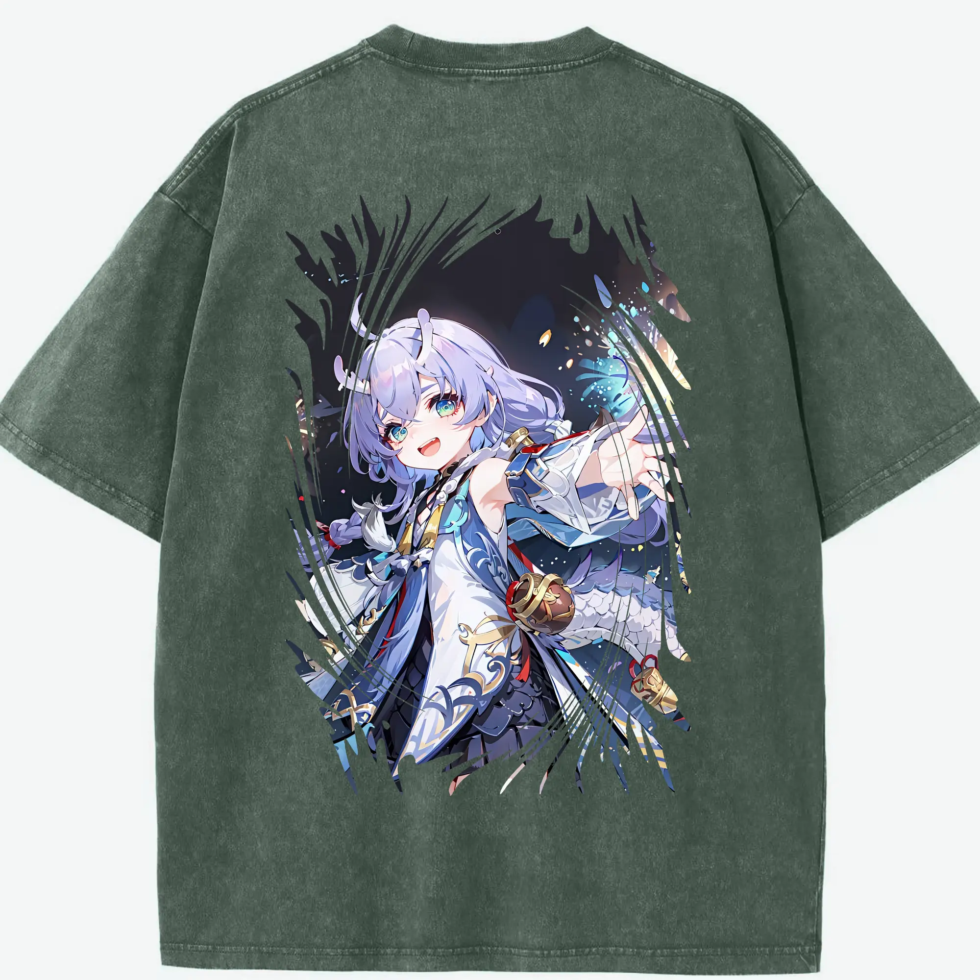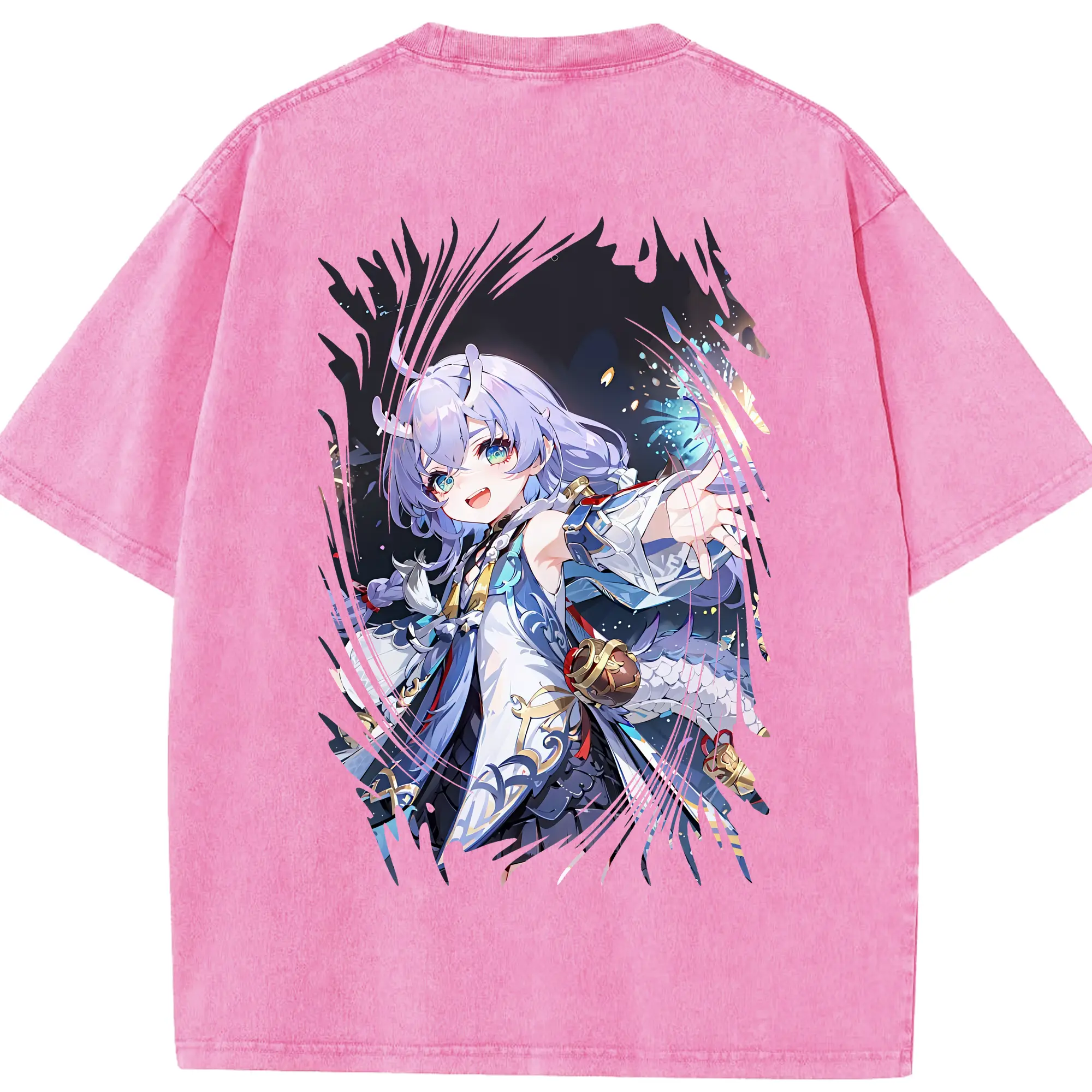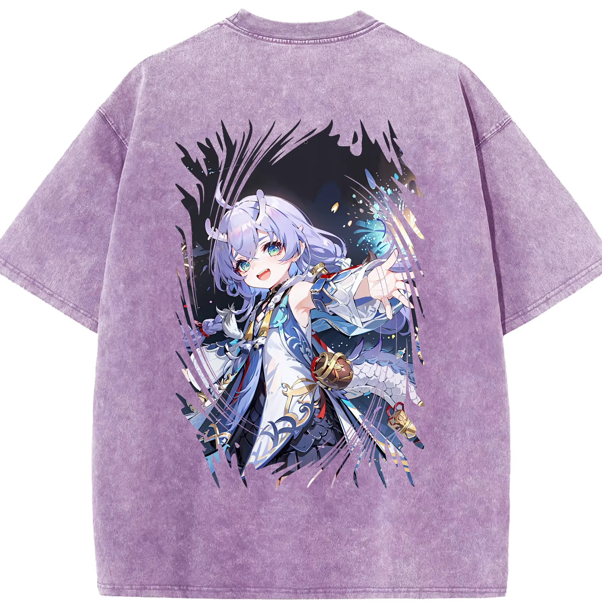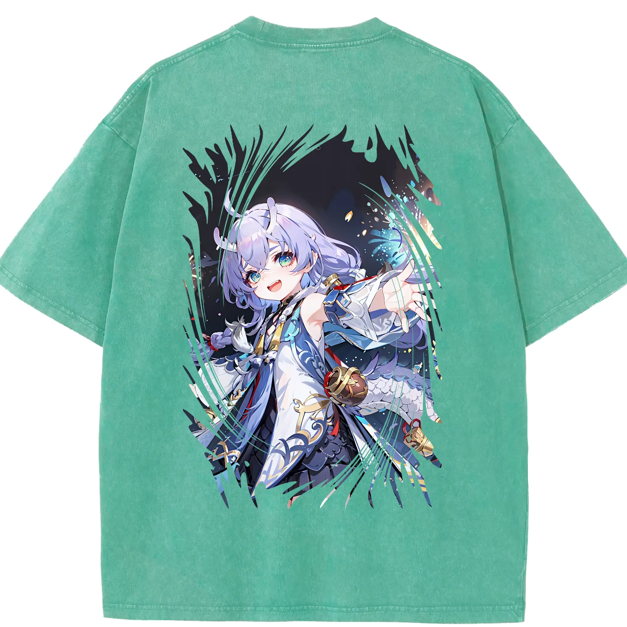 崩壊:スターレイル グッズ 白露 - 綿100% ヴィンテージ風 半袖Tシャツ ・ フロントプリント ・ 柔らか肌触り ・ 通気性 快適 ・ スポーツ カジュアル 外出用
