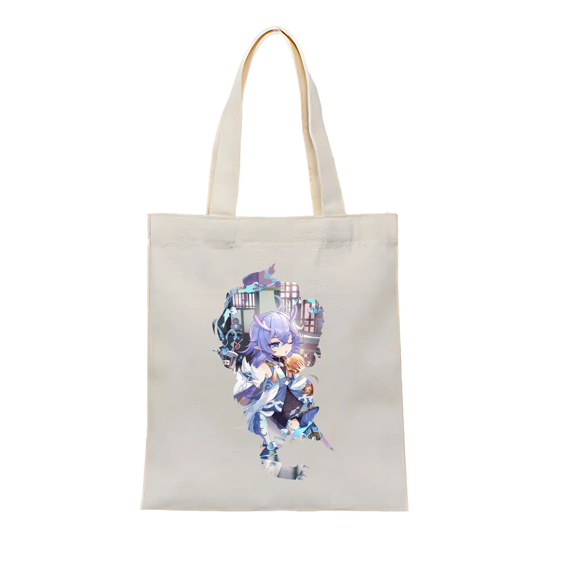 崩壊:スターレイル グッズ 白露 - 縦型キャンバス手提げバッグ(トートバッグ) ・ キャンバス素材 ・ ショッピング用 ・ 軽量 丈夫 お手入れ簡単