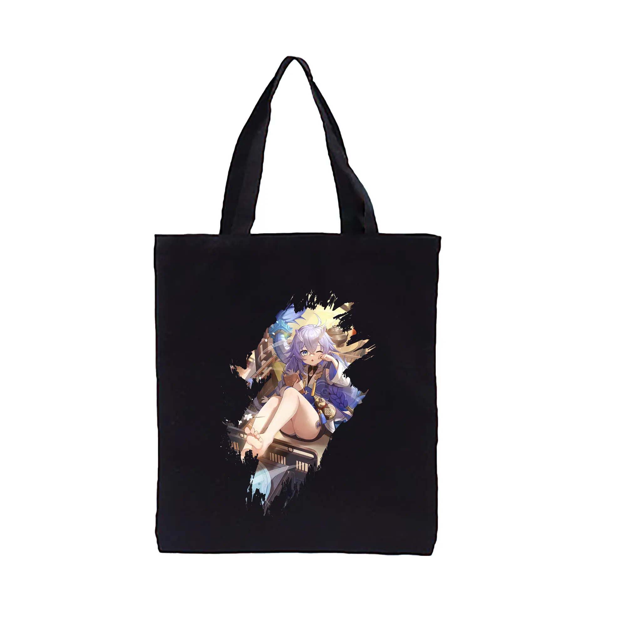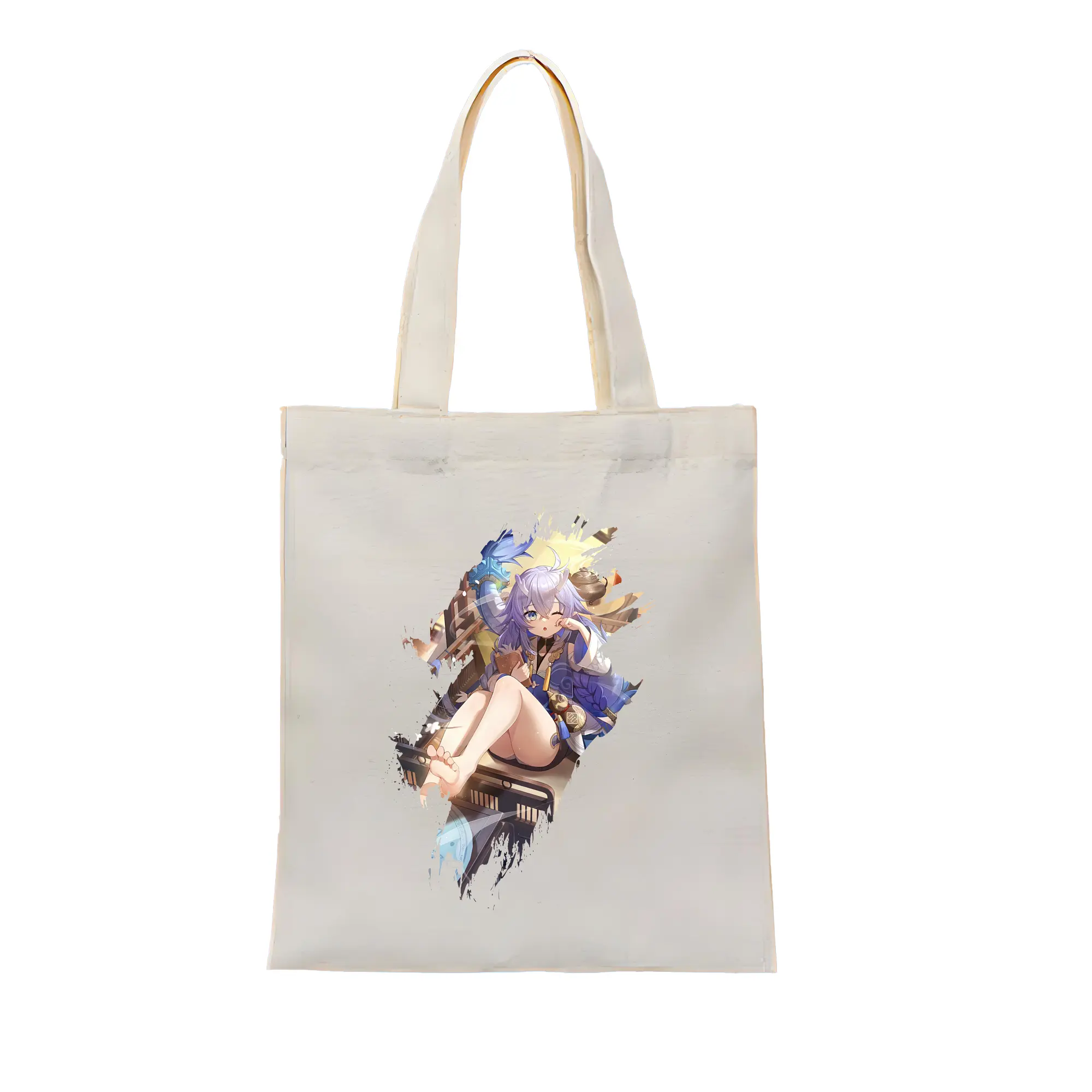 崩壊:スターレイル グッズ 白露 - 縦型キャンバス手提げバッグ(トートバッグ) ・ キャンバス素材 ・ ショッピング用 ・ 軽量 丈夫 お手入れ簡単