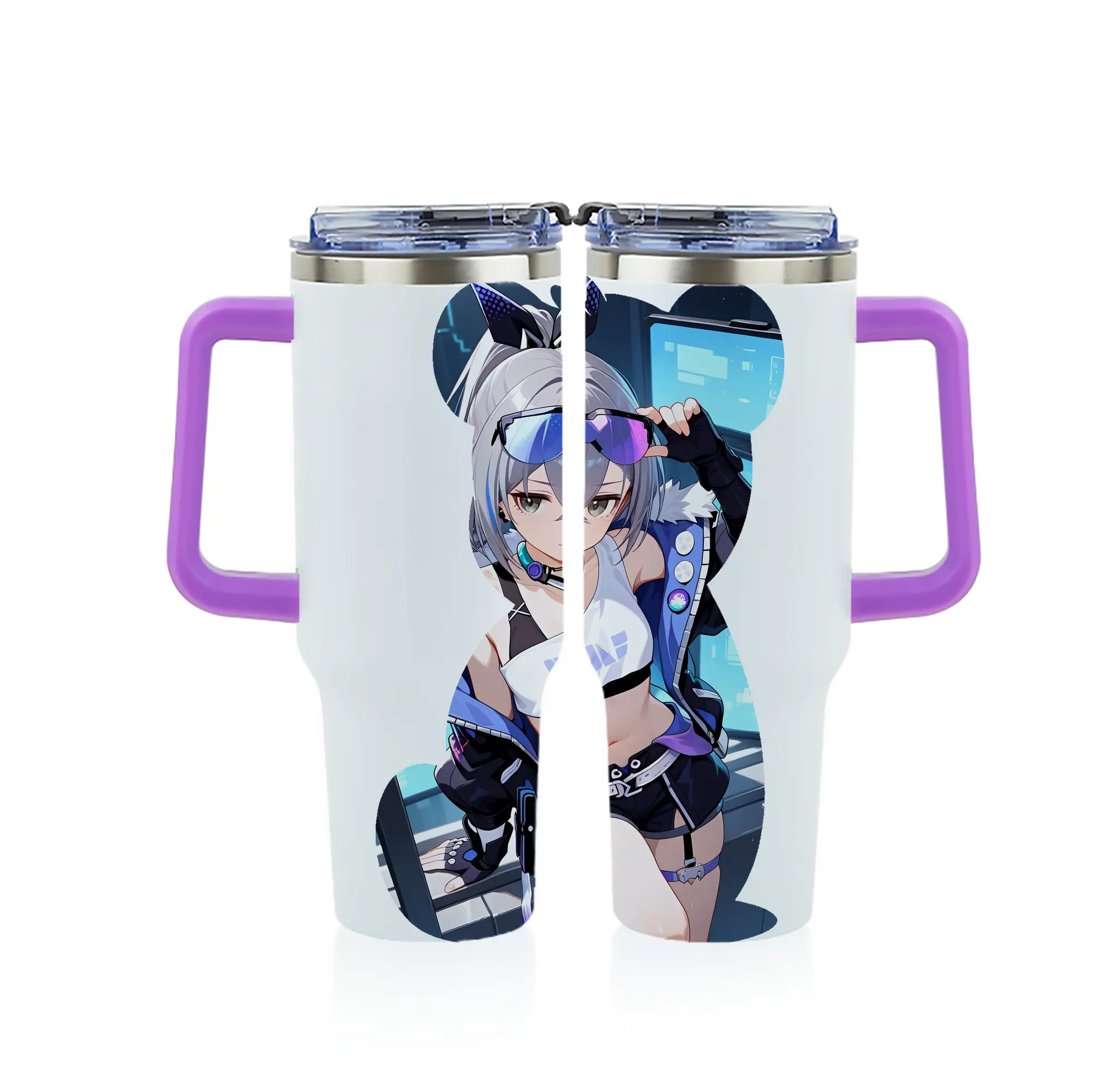 崩壊:スターレイル グッズ 銀狼 - 1200mL フルプリント車用タンブラー ・ 304ステンレス 内側 ・ 201ステンレス 外側 ・ 保温 保冷 ・ 通勤 ドライブ アウトドア用