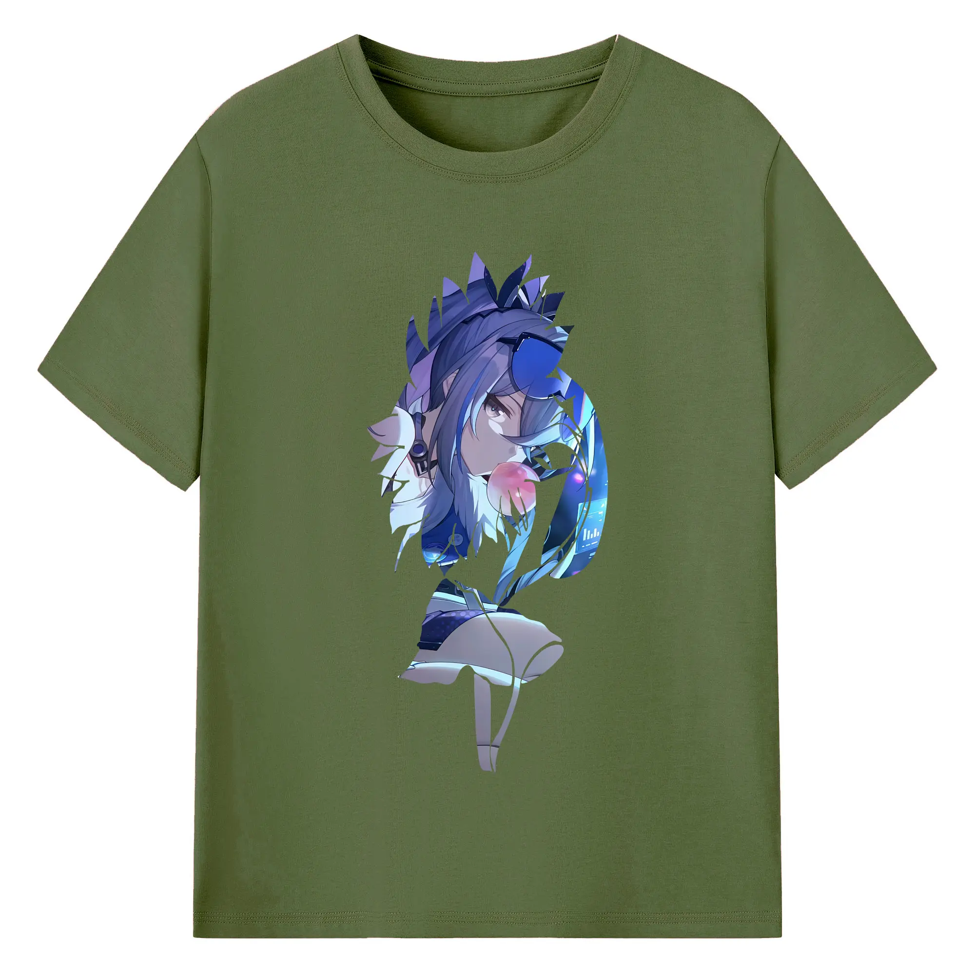 崩壊:スターレイル グッズ 銀狼 - 綿100% ヴィンテージ風 半袖Tシャツ ・ フロントプリント ・ 柔らか肌触り ・ 通気性 快適 ・ スポーツ カジュアル 外出用