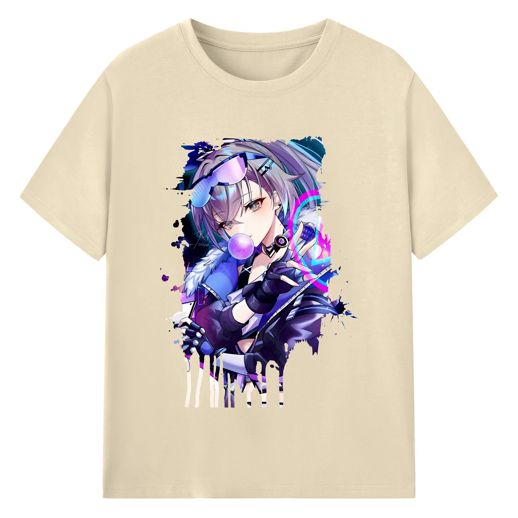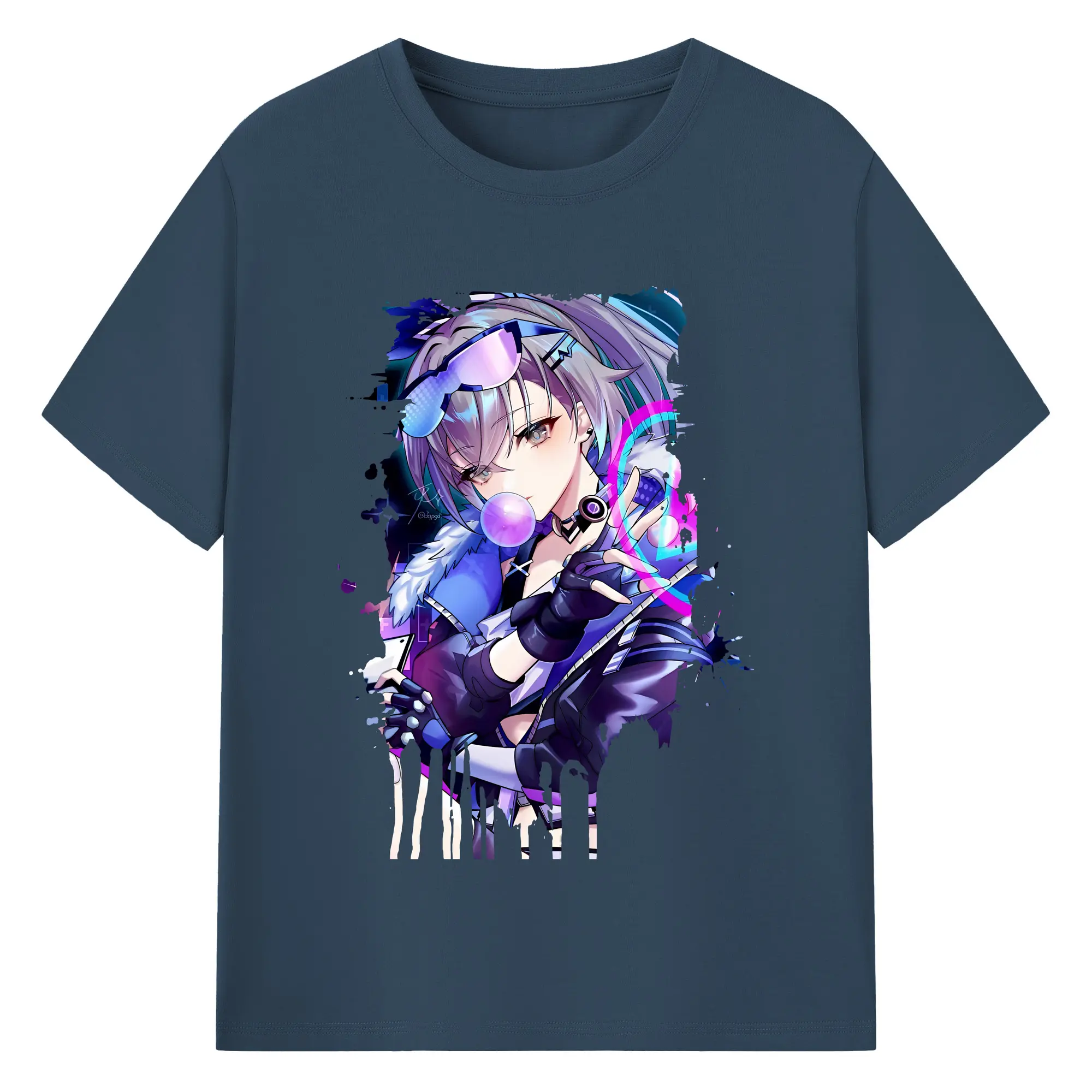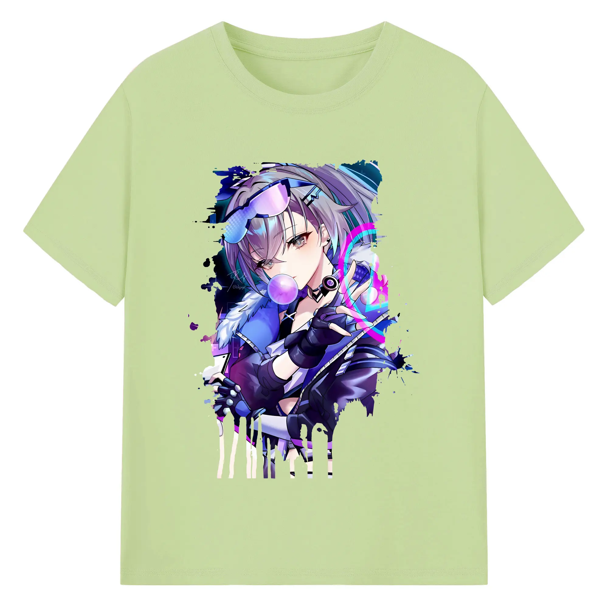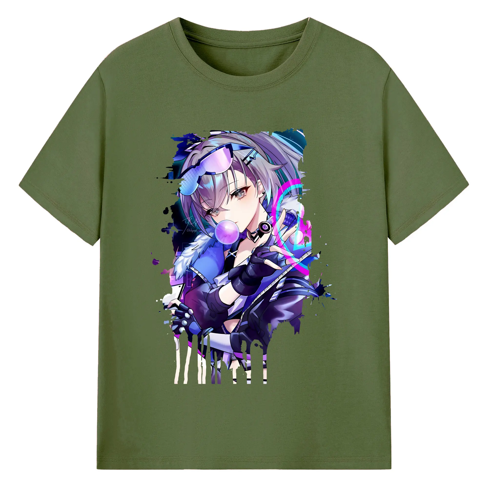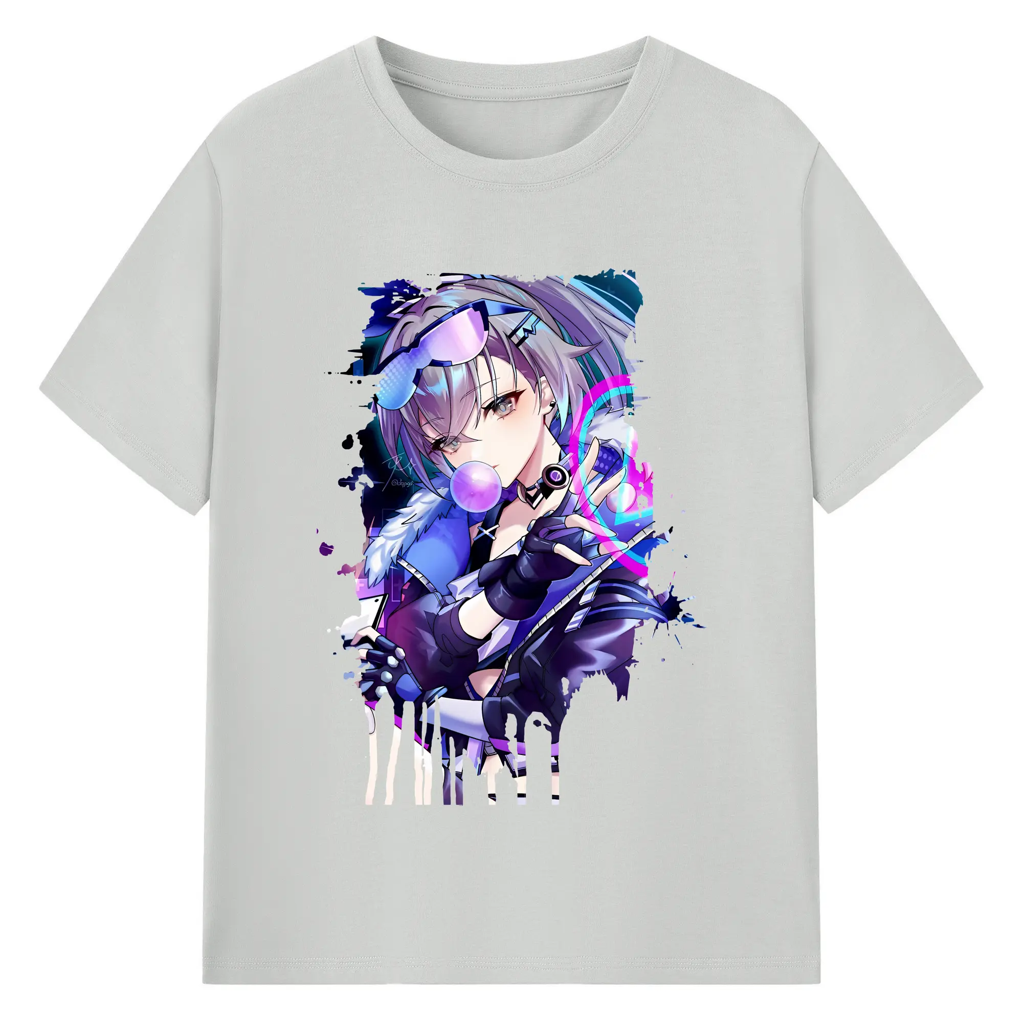 崩壊:スターレイル グッズ 銀狼 - 綿100% ヴィンテージ風 半袖Tシャツ ・ フロントプリント ・ 柔らか肌触り ・ 通気性 快適 ・ スポーツ カジュアル 外出用