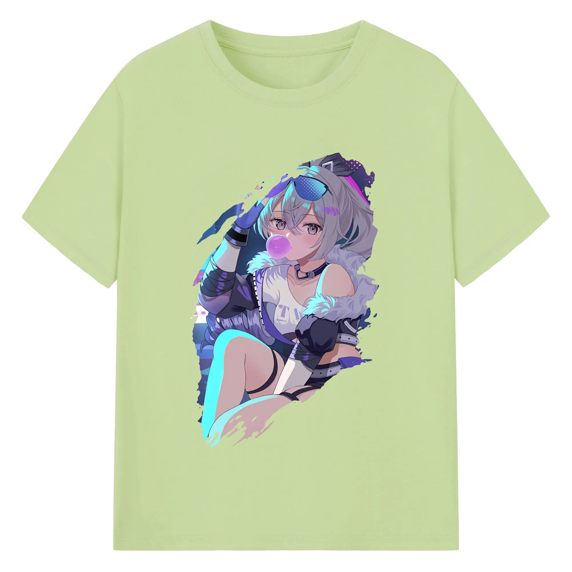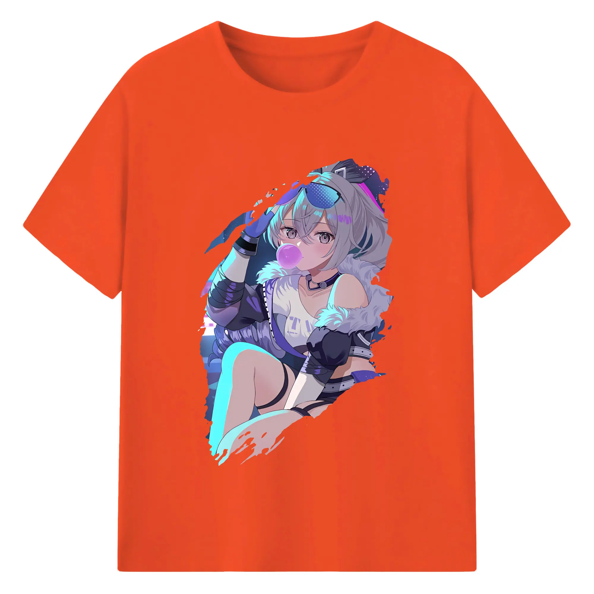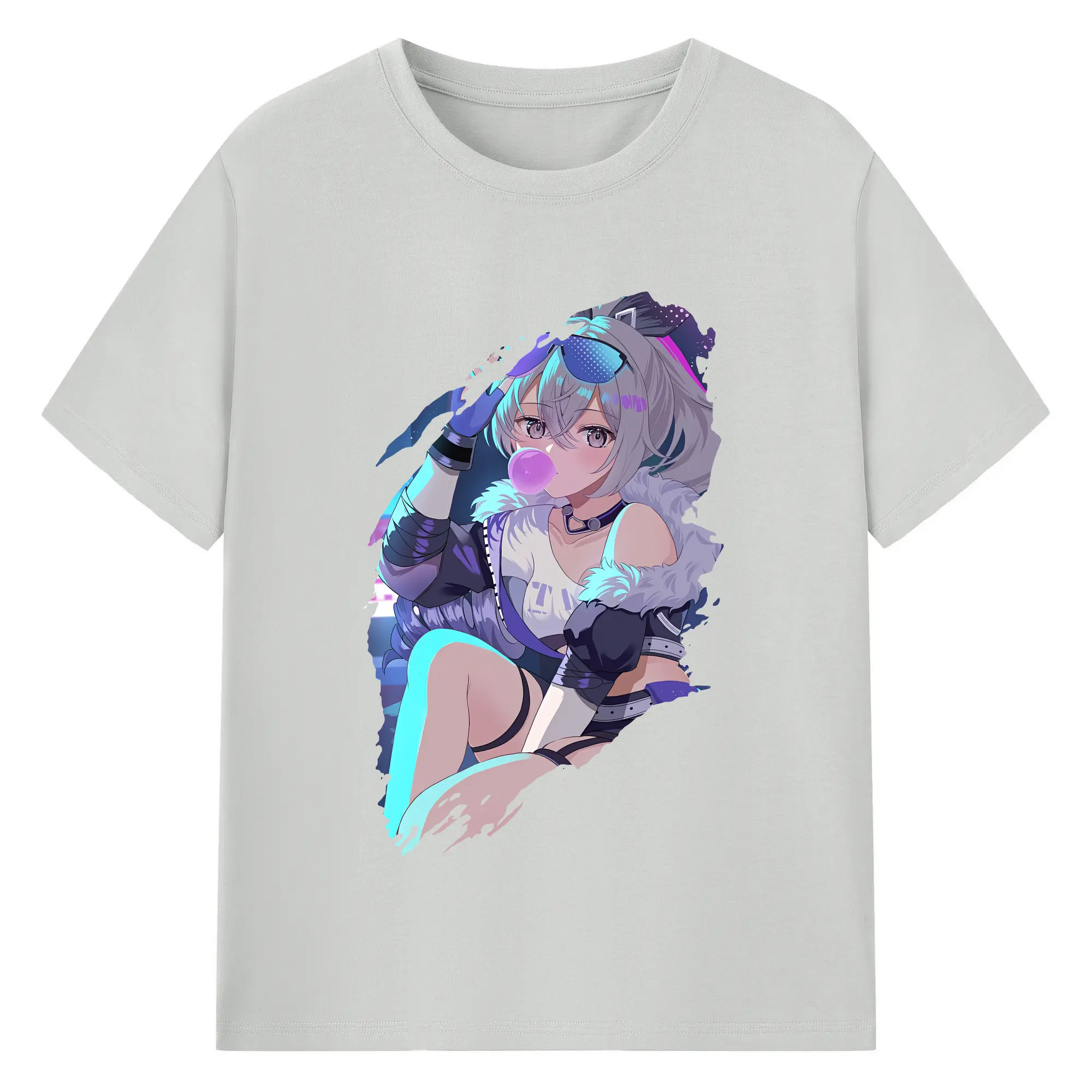 崩壊:スターレイル グッズ 銀狼 - 綿100% ヴィンテージ風 半袖Tシャツ ・ フロントプリント ・ 柔らか肌触り ・ 通気性 快適 ・ スポーツ カジュアル 外出用