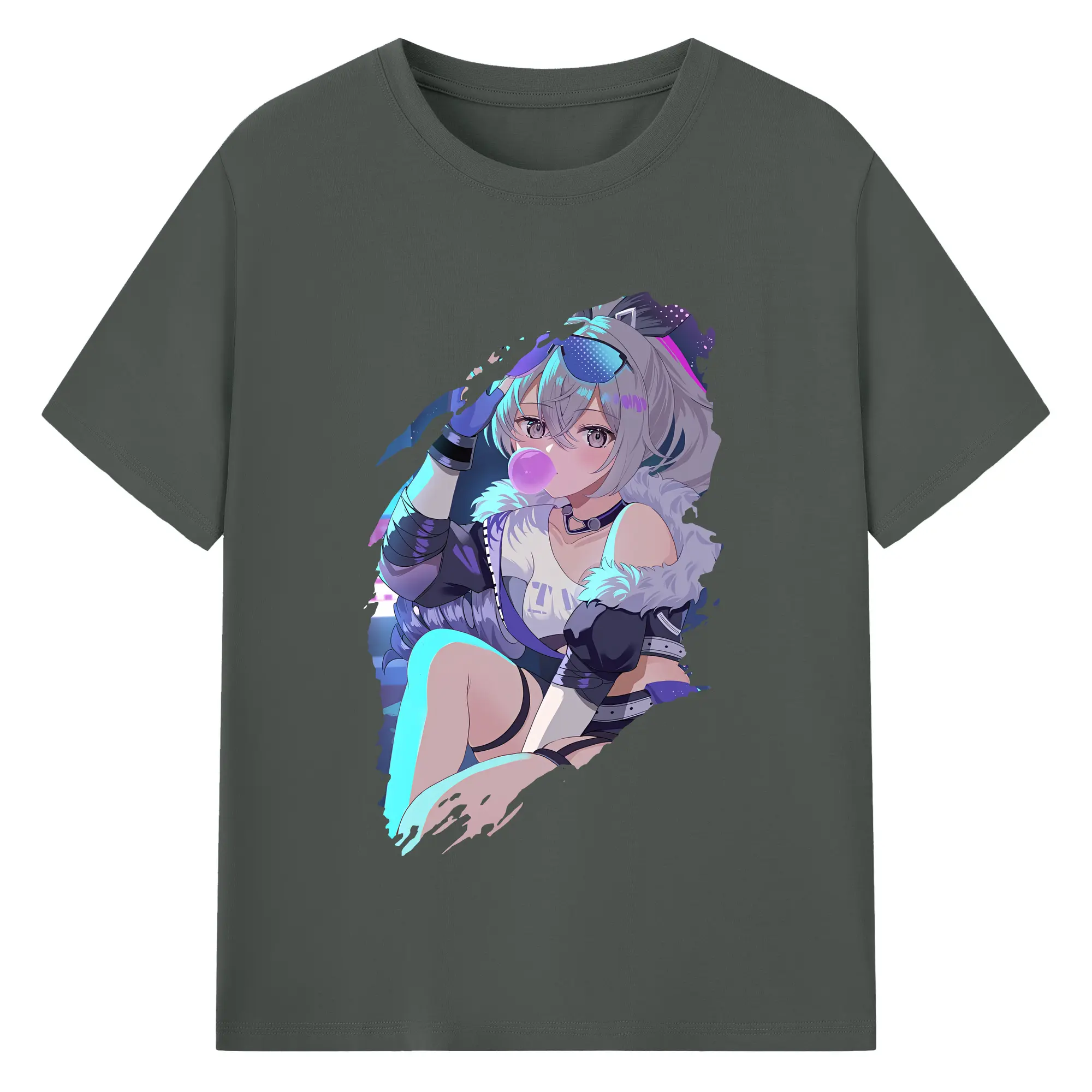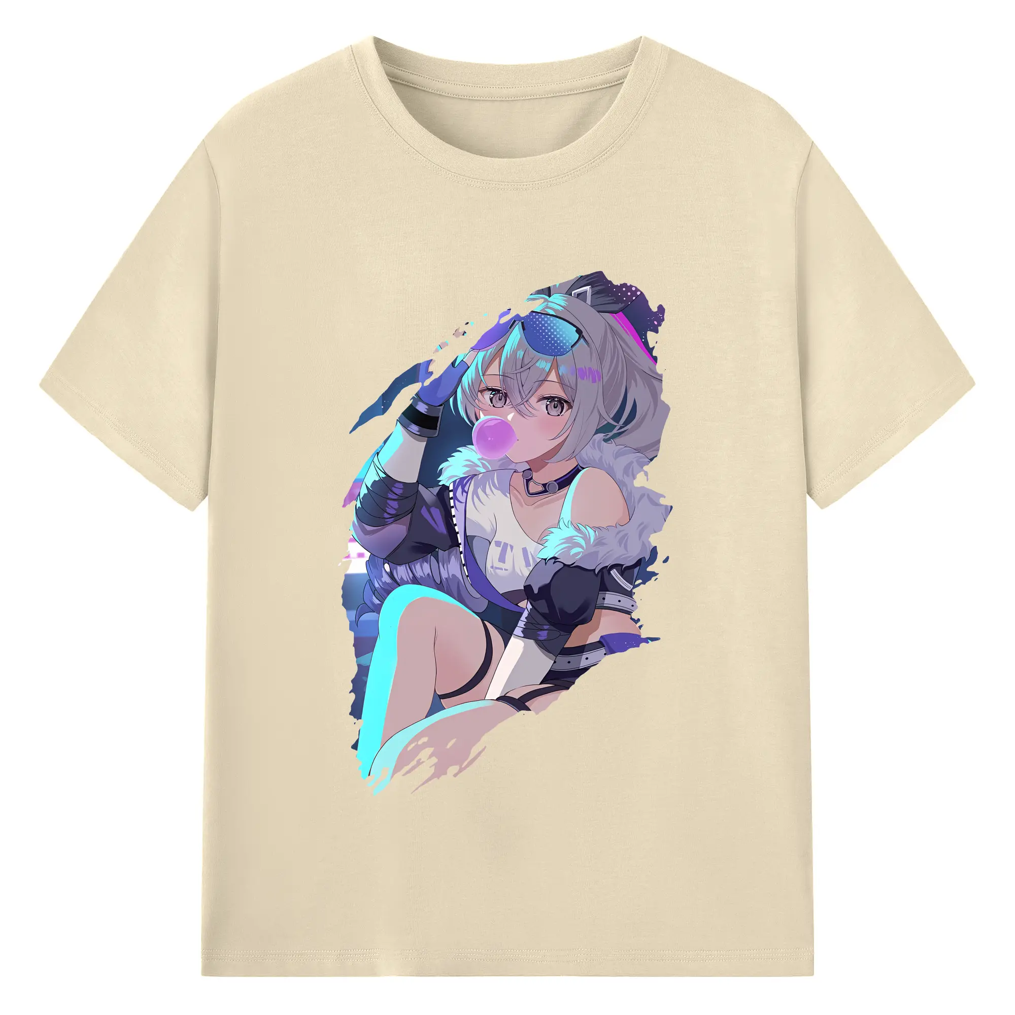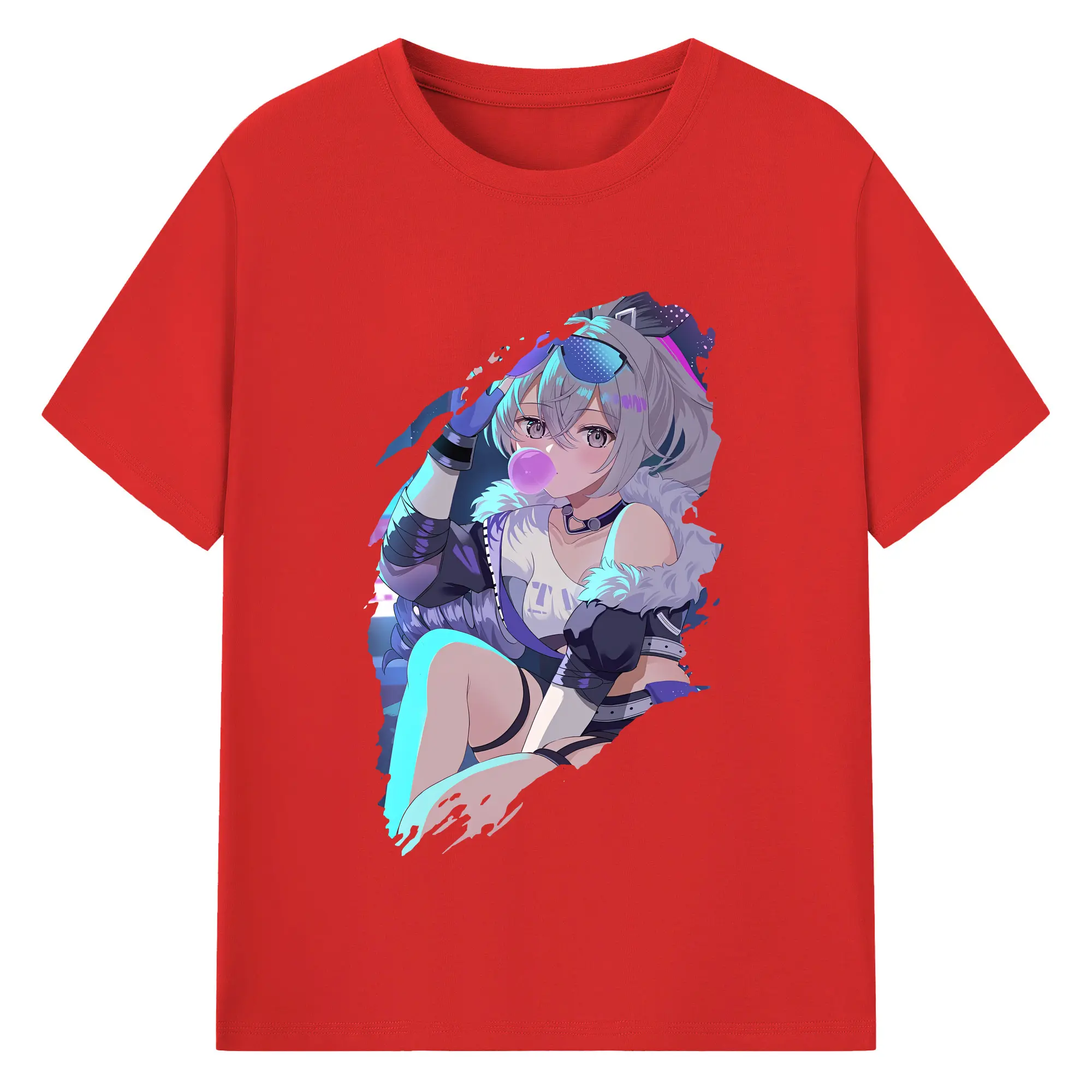 崩壊:スターレイル グッズ 銀狼 - 綿100% ヴィンテージ風 半袖Tシャツ ・ フロントプリント ・ 柔らか肌触り ・ 通気性 快適 ・ スポーツ カジュアル 外出用