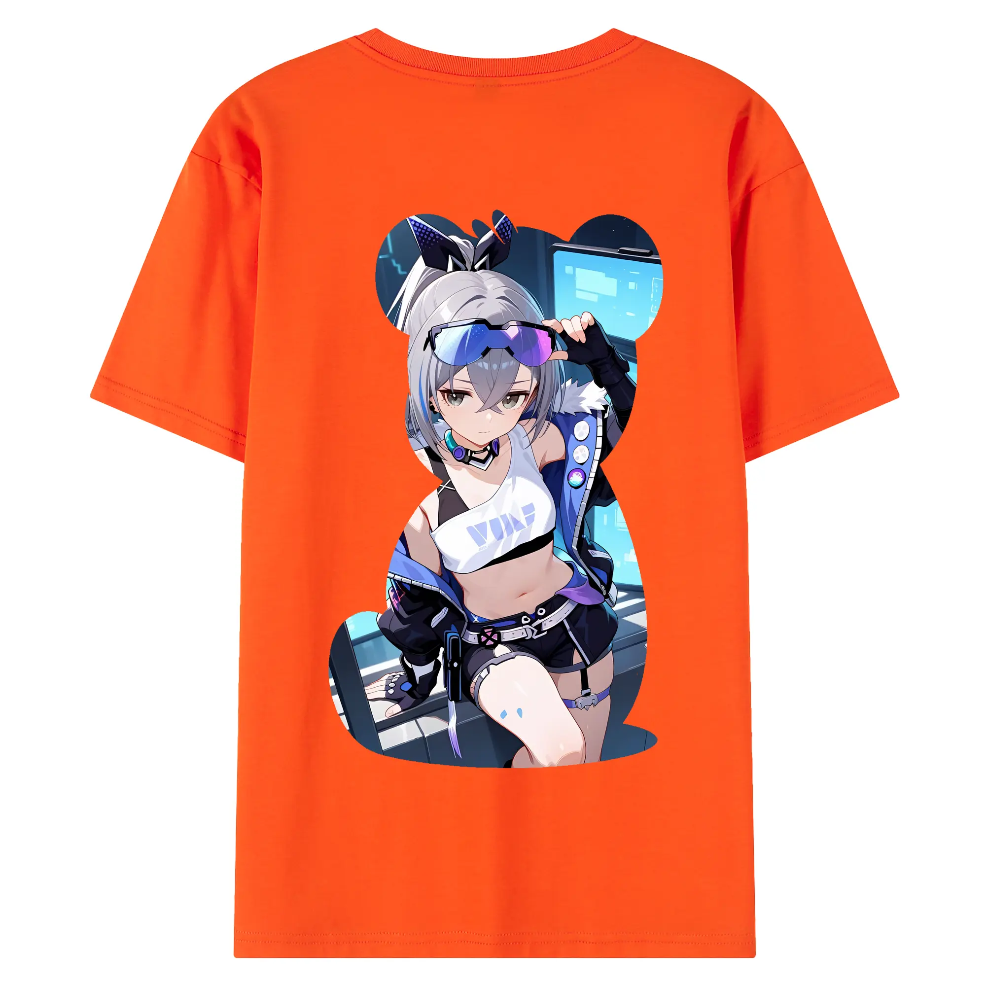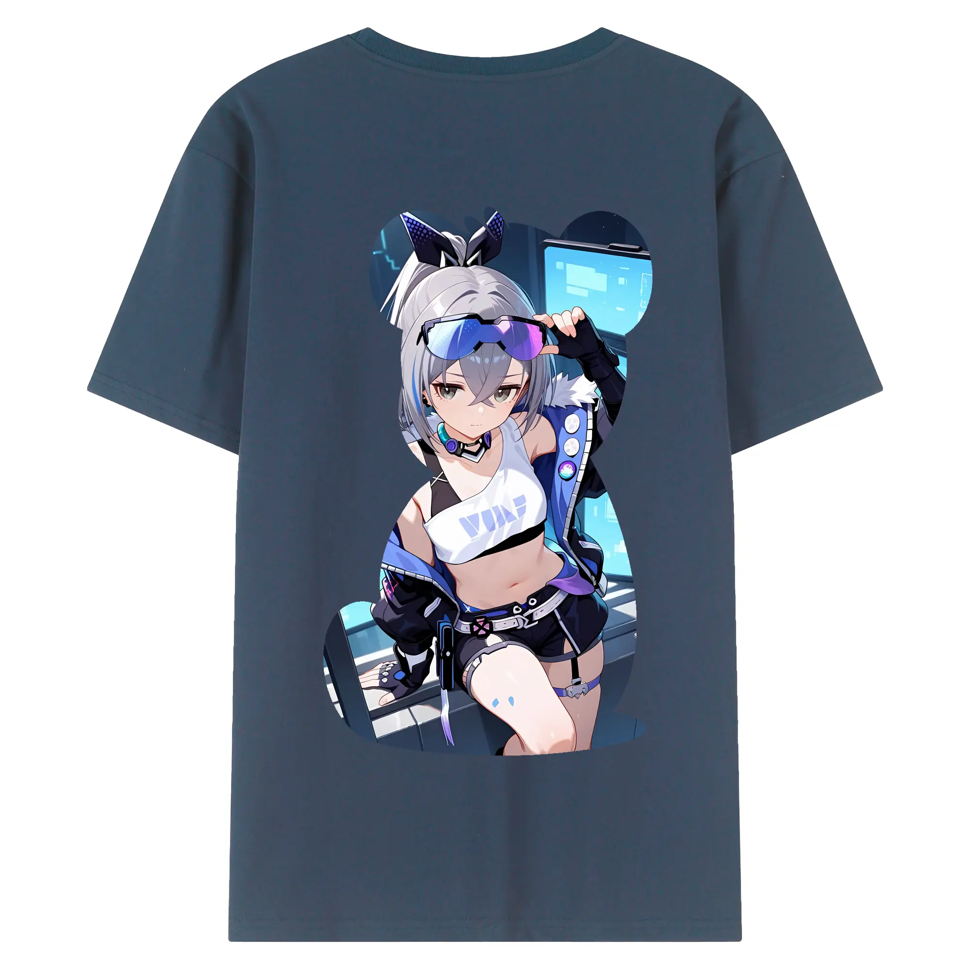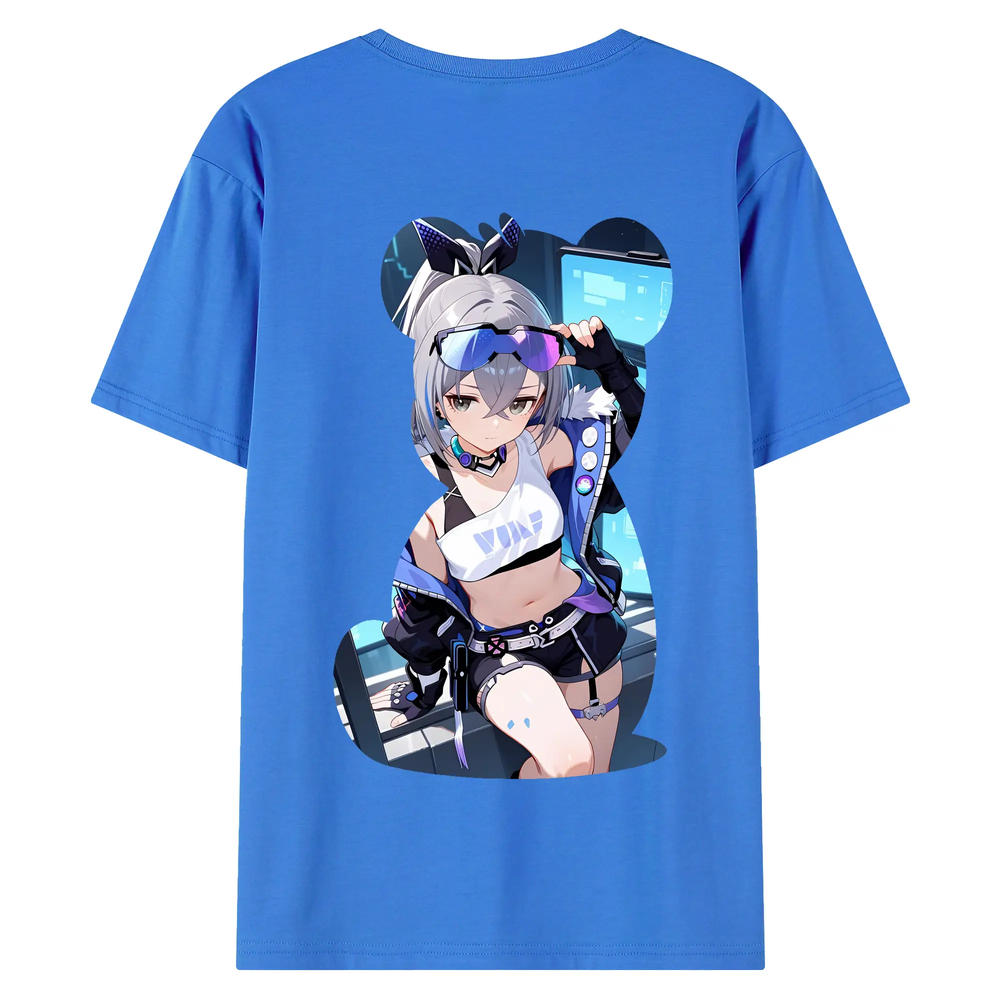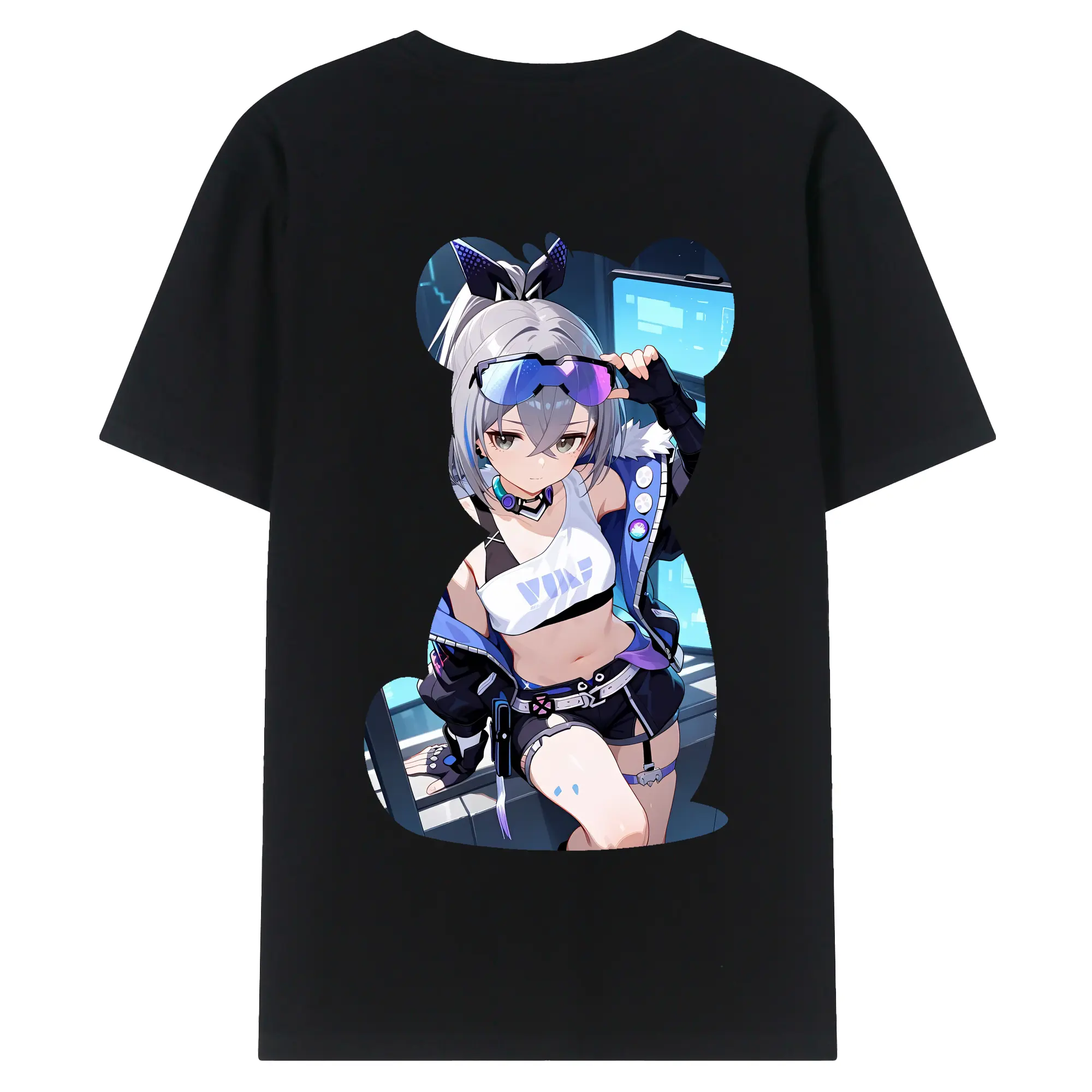 崩壊:スターレイル グッズ 銀狼 - 綿100% 半袖Tシャツ ・ フロントプリント ・ 快適 通気性 ・ 日常使い 散歩 スポーツ用
