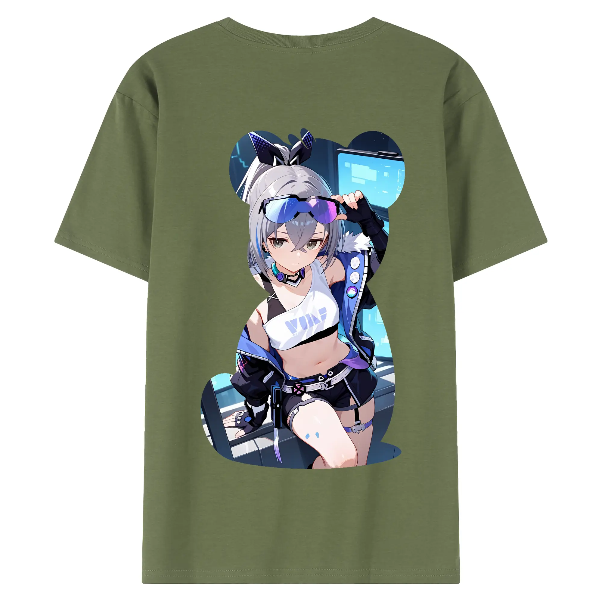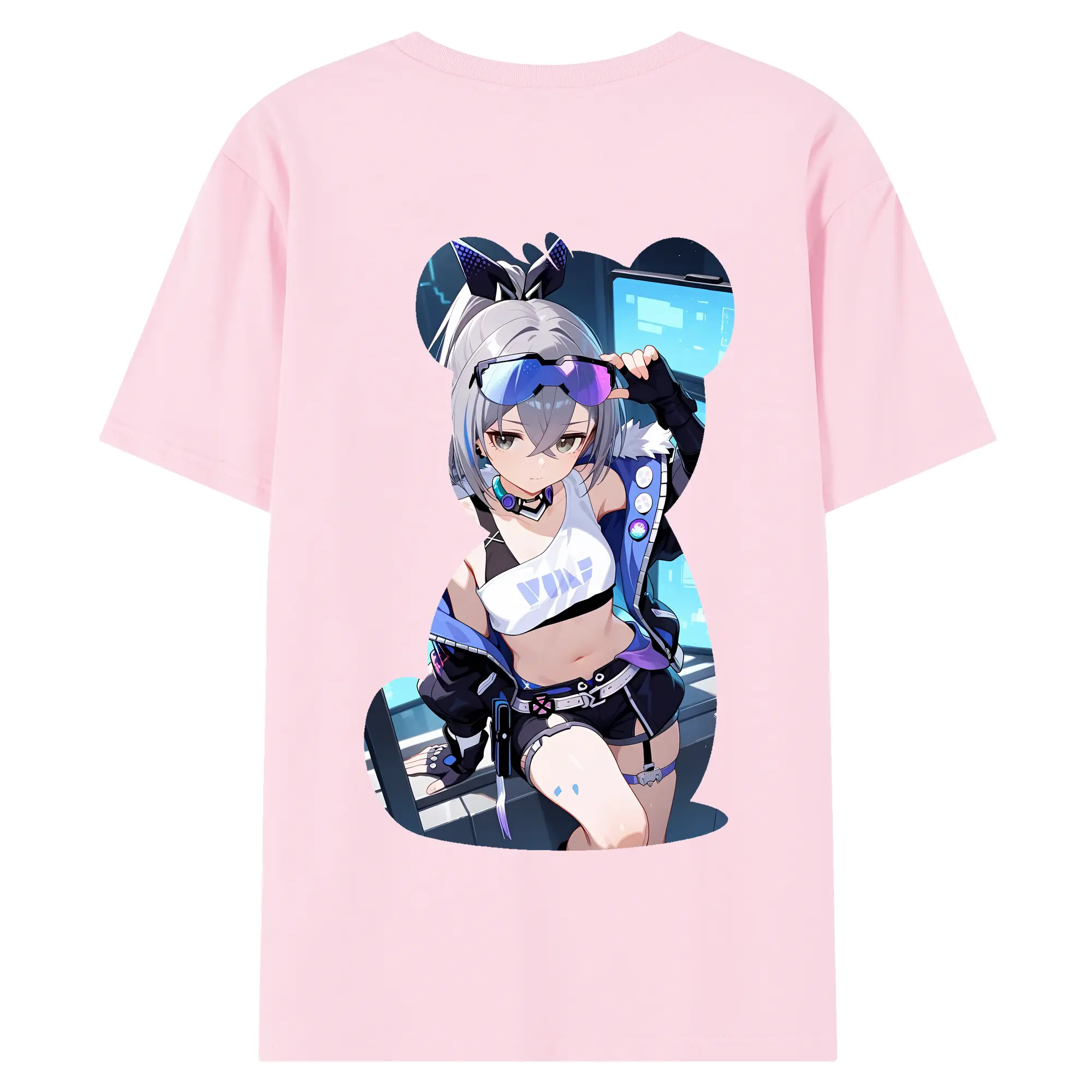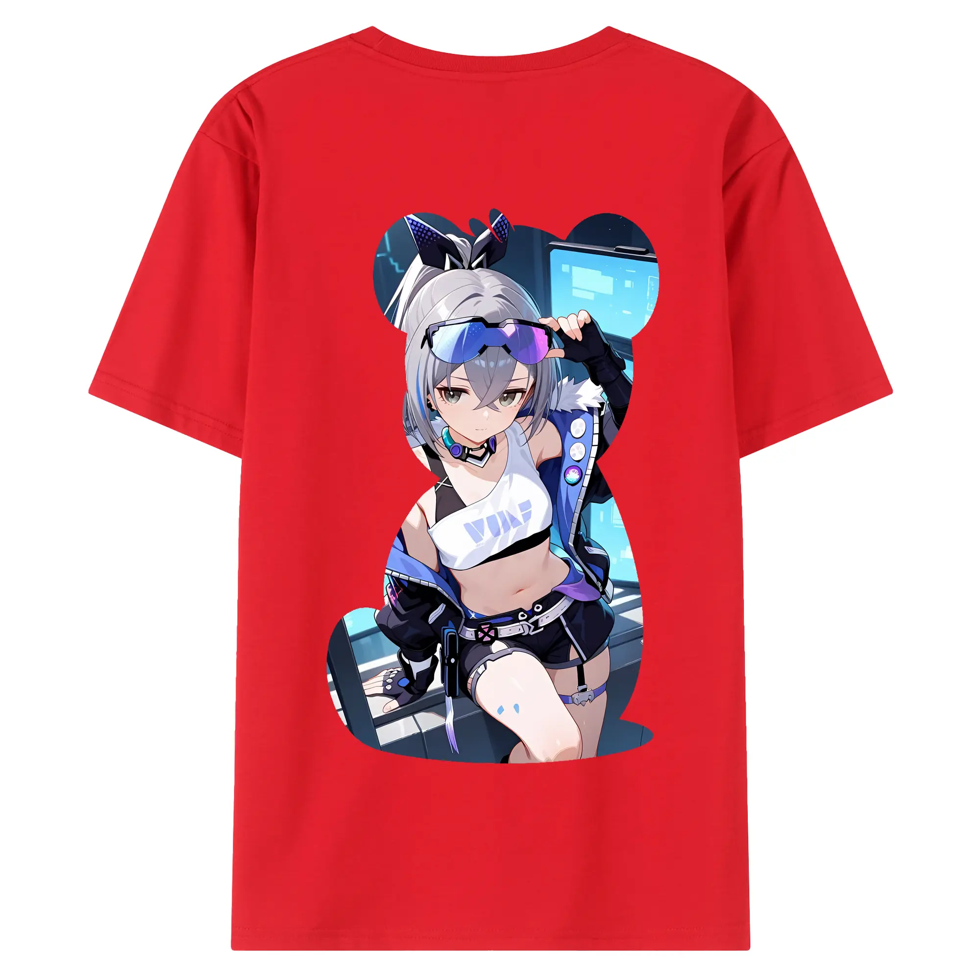 崩壊:スターレイル グッズ 銀狼 - 綿100% 半袖Tシャツ ・ フロントプリント ・ 快適 通気性 ・ 日常使い 散歩 スポーツ用