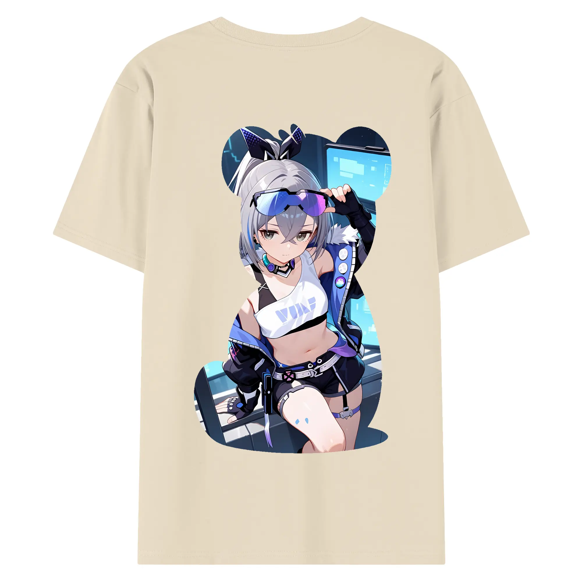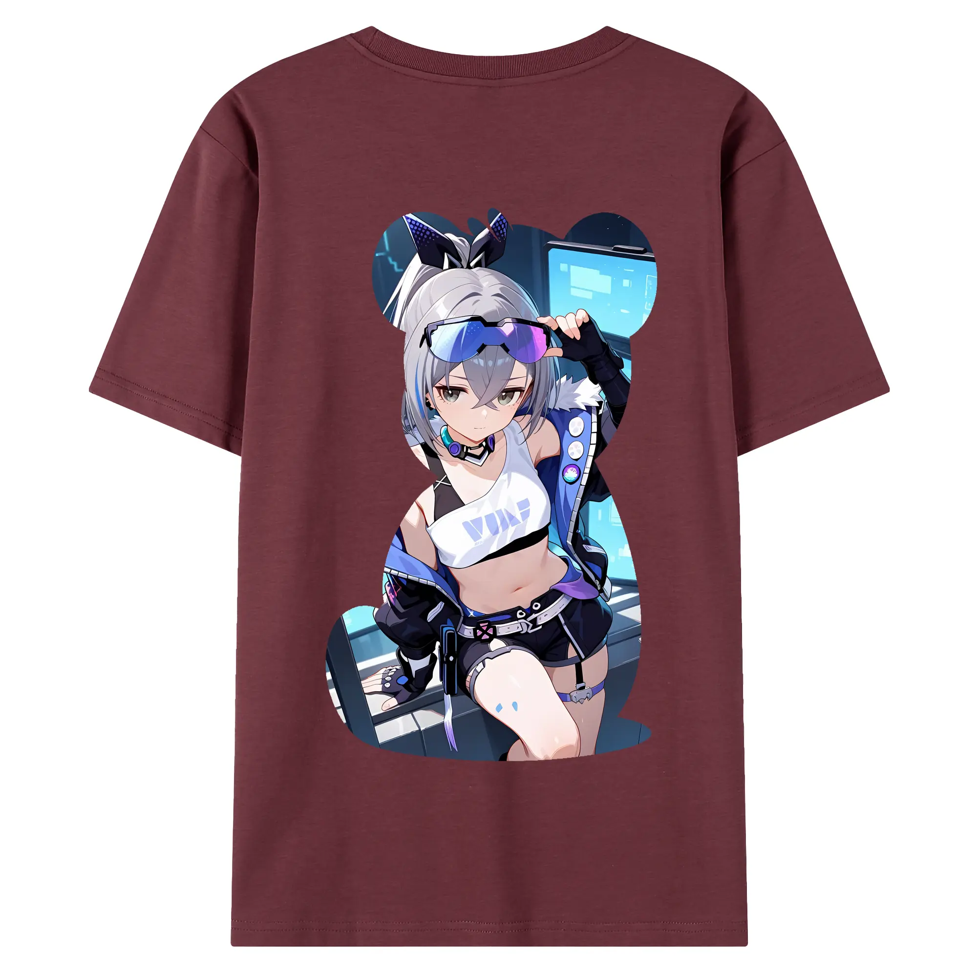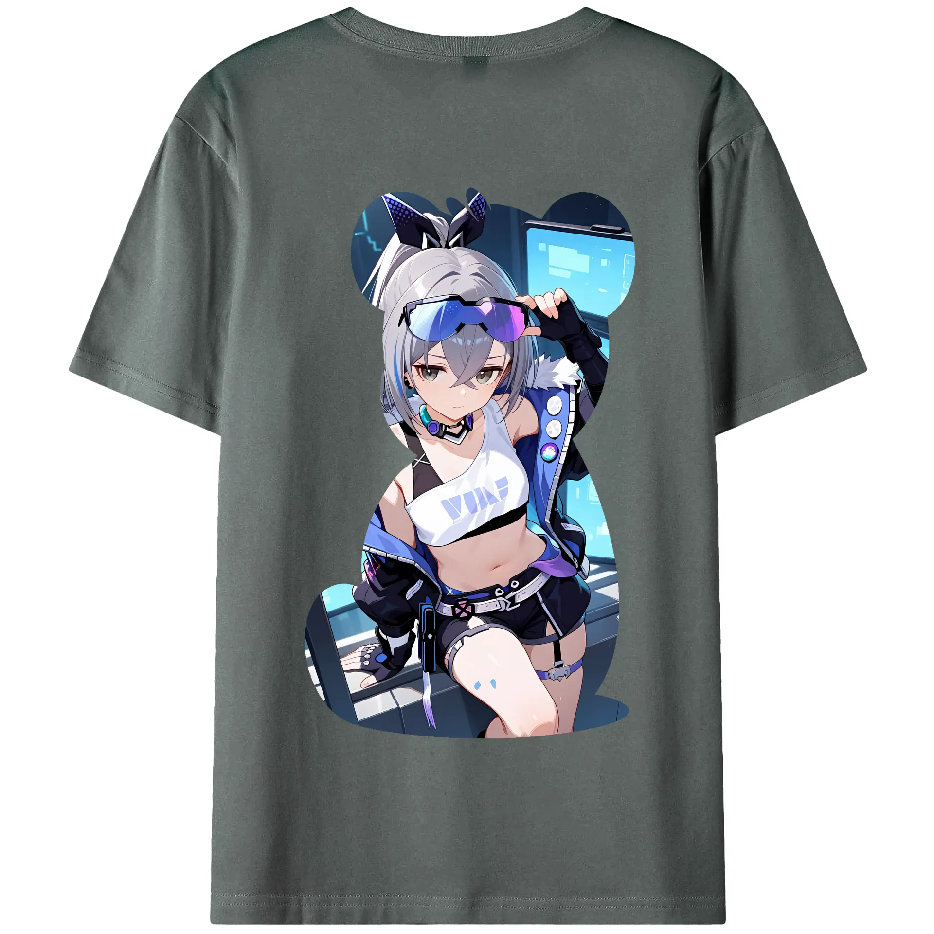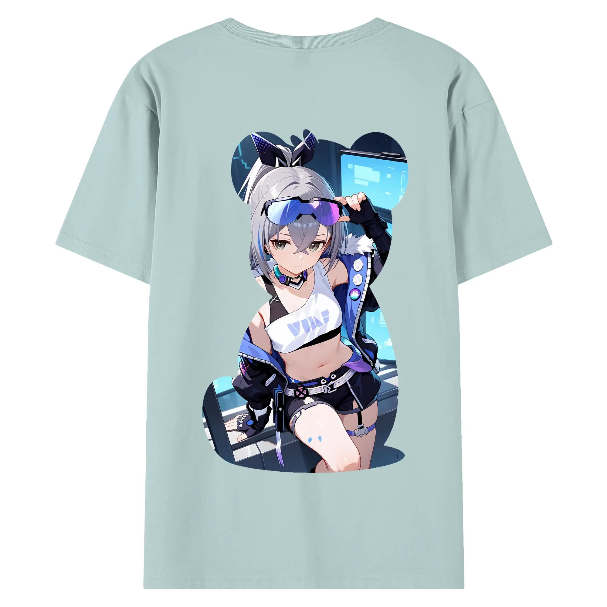 崩壊:スターレイル グッズ 銀狼 - 綿100% 半袖Tシャツ ・ フロントプリント ・ 快適 通気性 ・ 日常使い 散歩 スポーツ用
