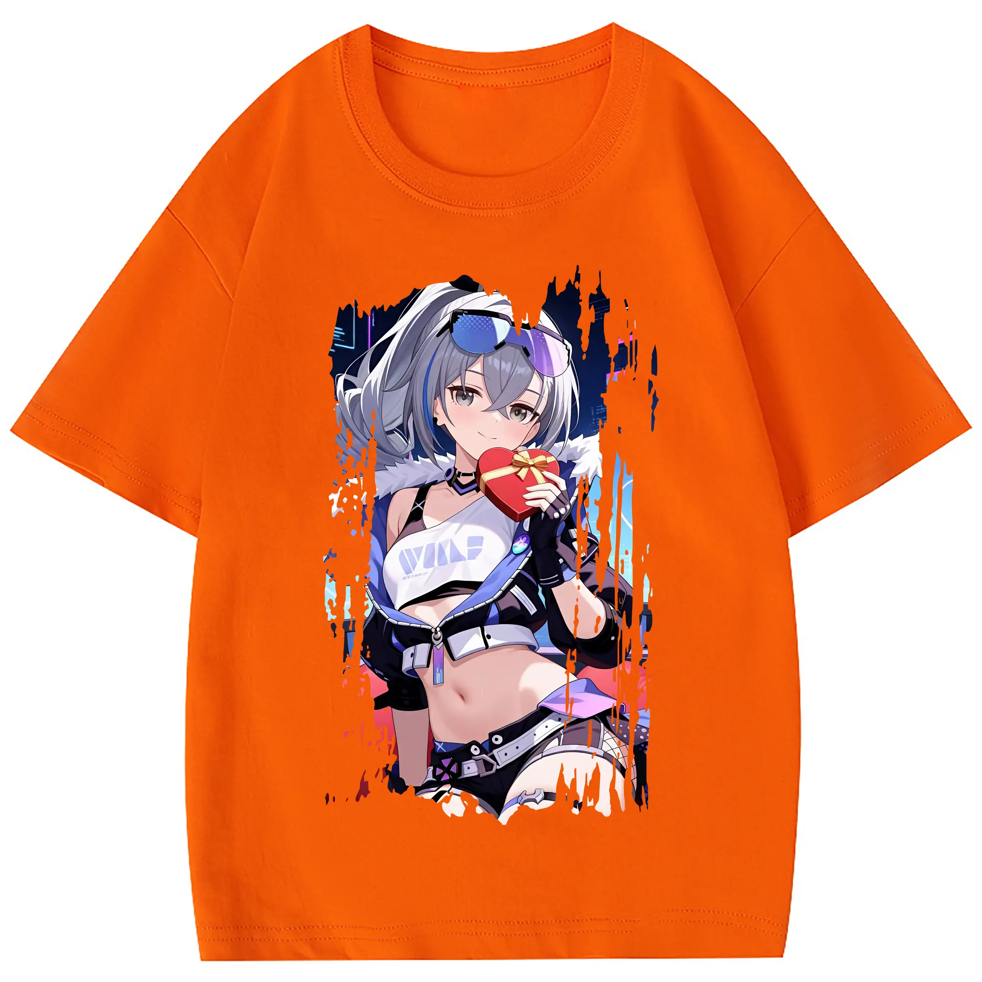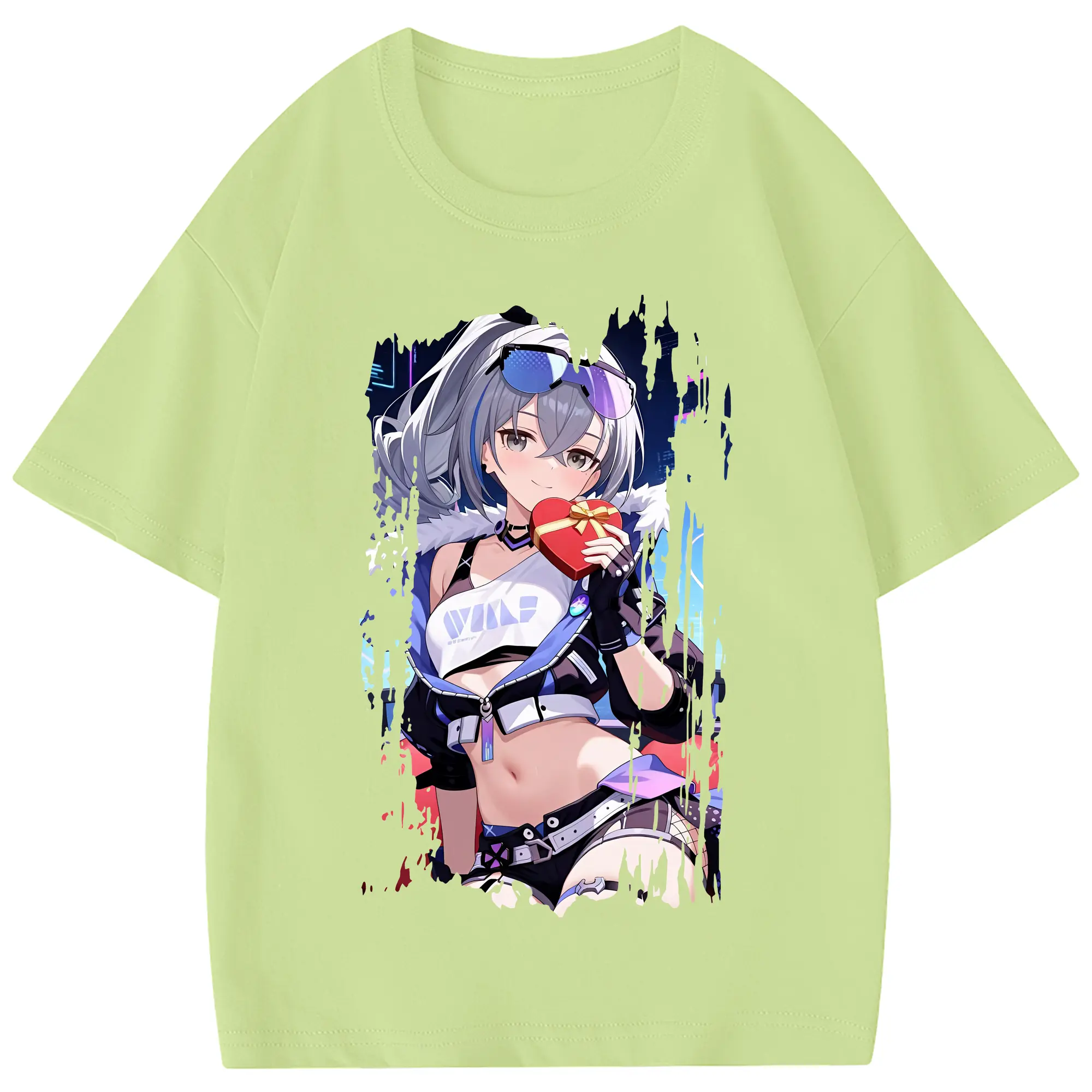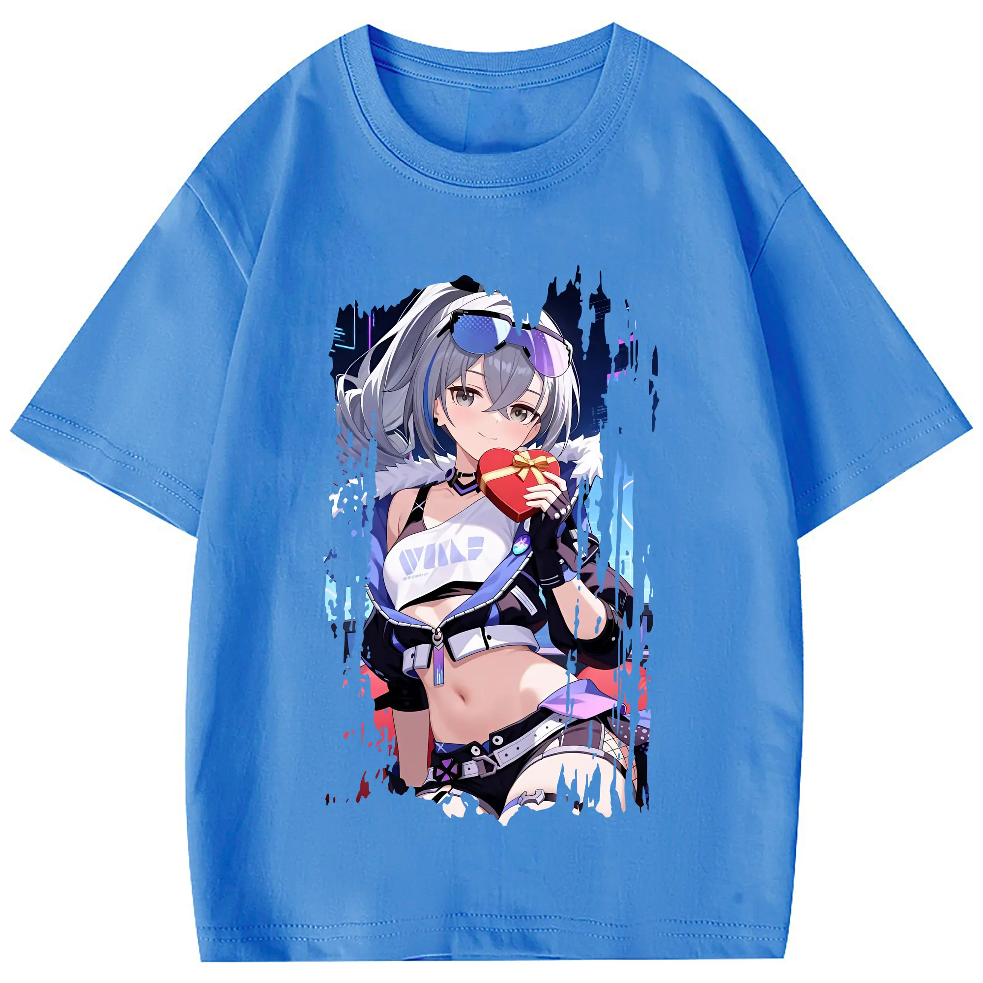 崩壊:スターレイル グッズ 銀狼 - 綿100% 半袖Tシャツ ・ フロントプリント ・ 快適 通気性 ・ 日常使い 散歩 スポーツ用