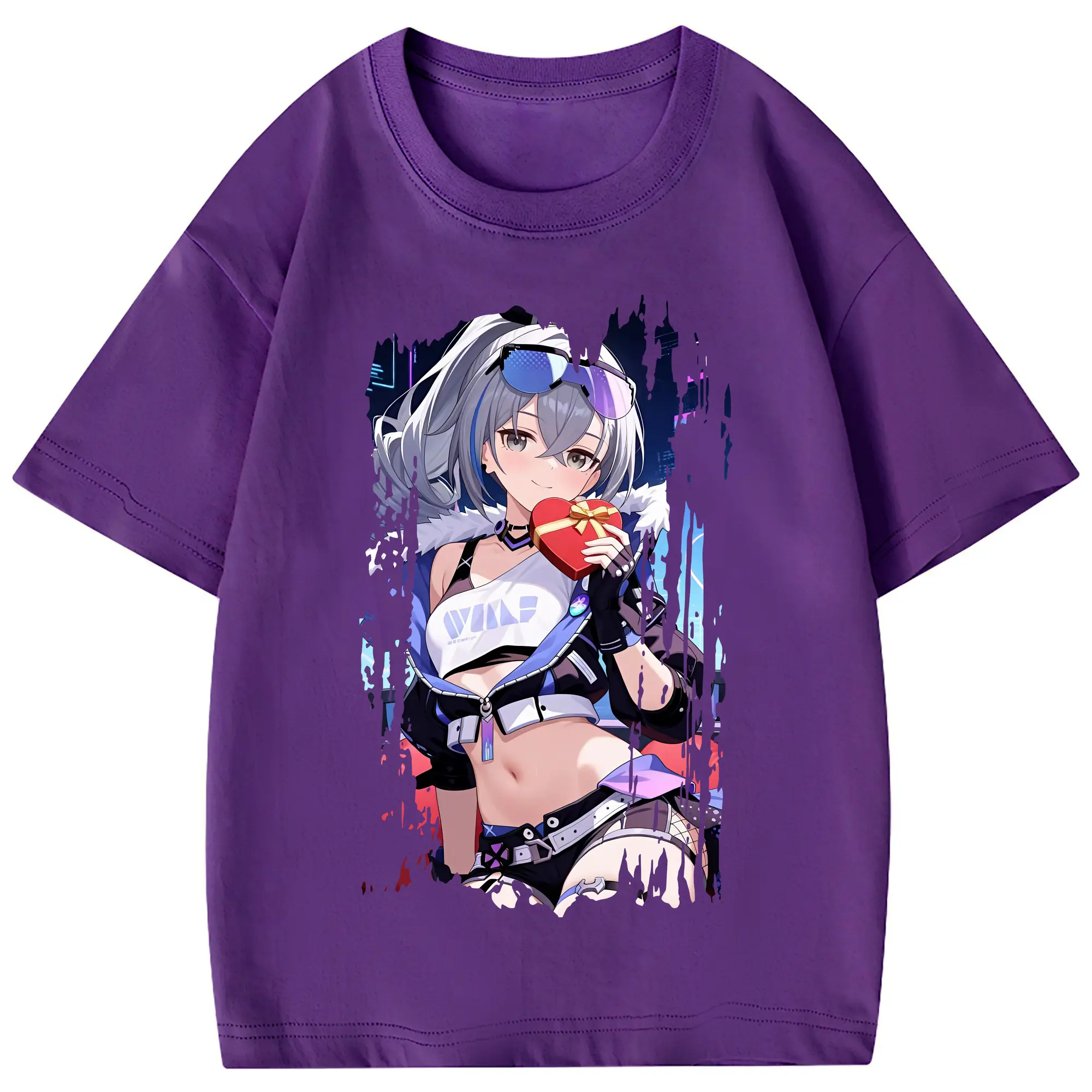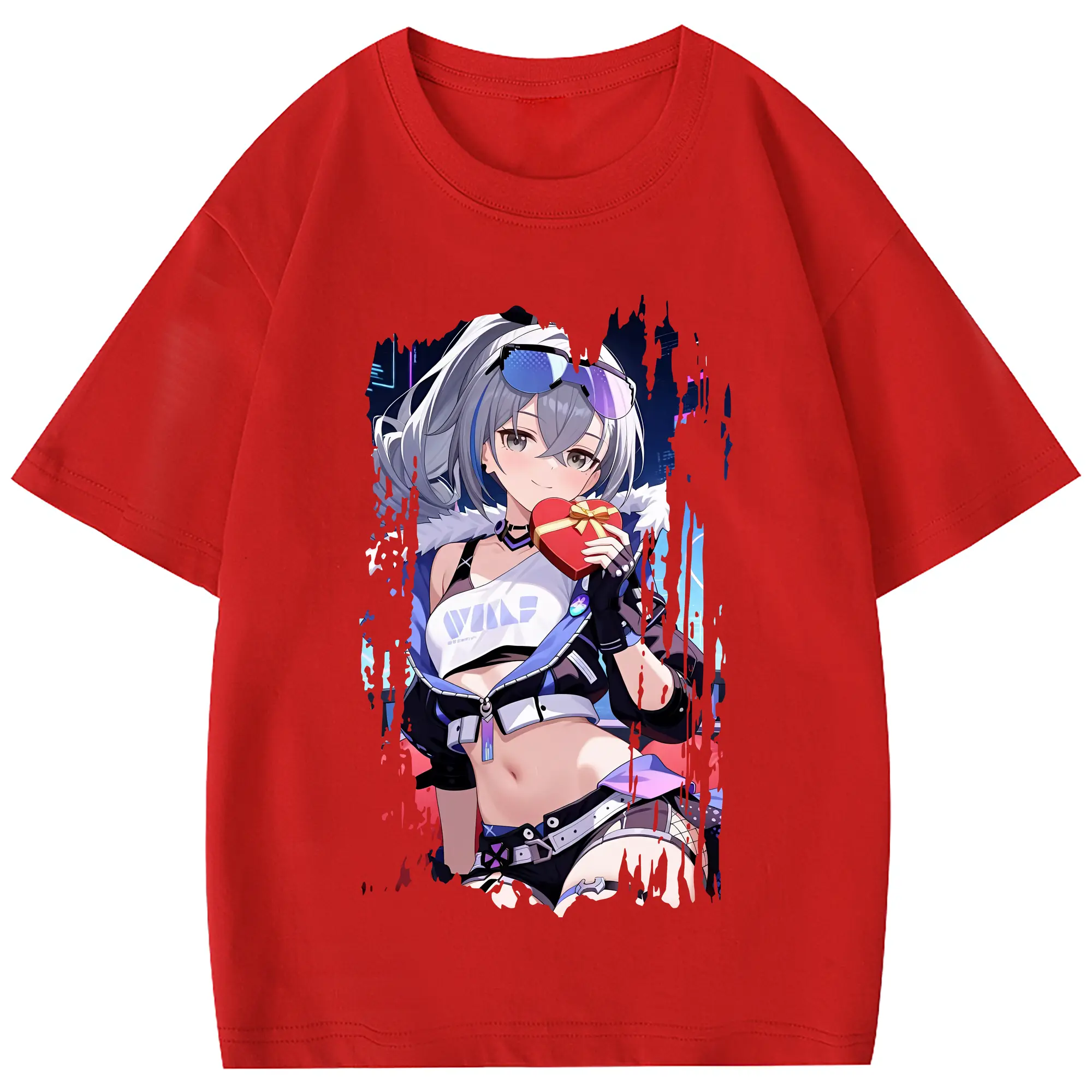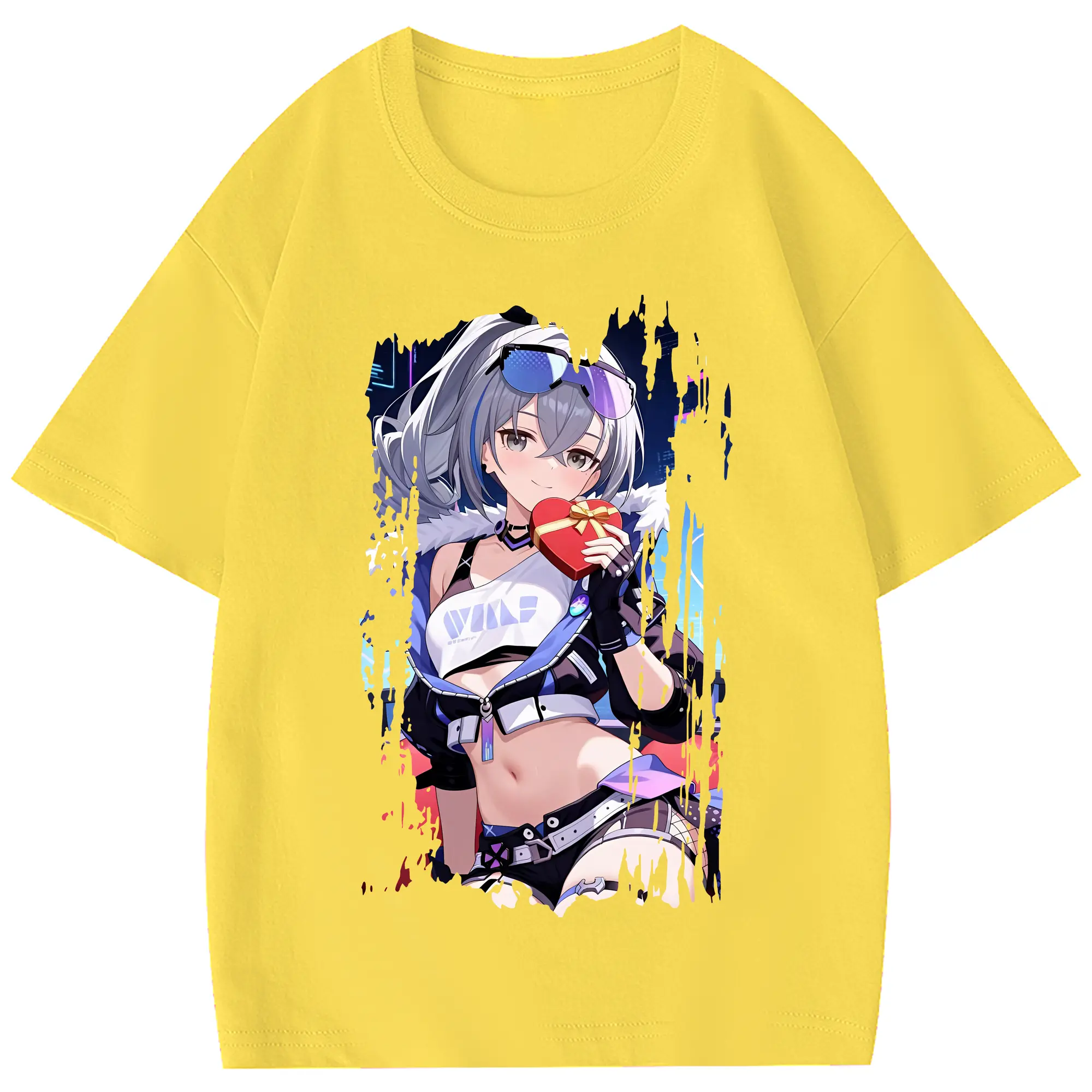 崩壊:スターレイル グッズ 銀狼 - 綿100% 半袖Tシャツ ・ フロントプリント ・ 快適 通気性 ・ 日常使い 散歩 スポーツ用