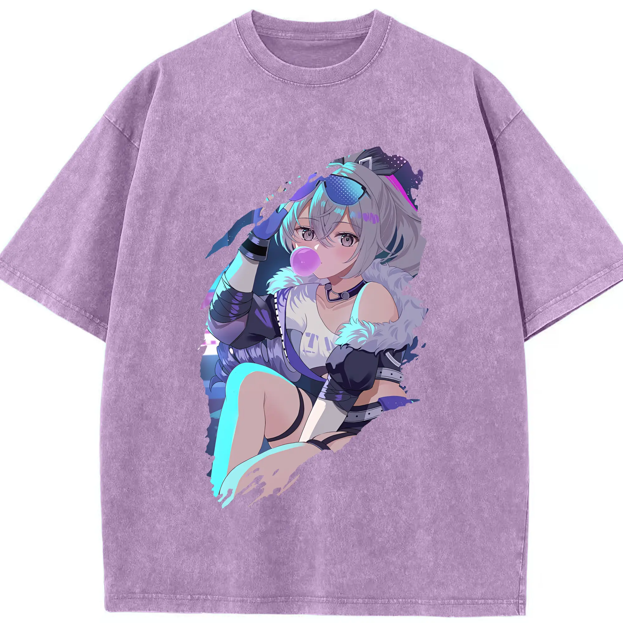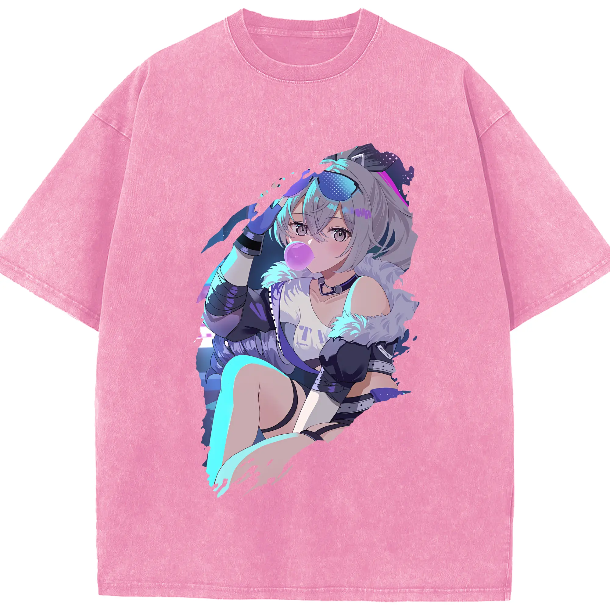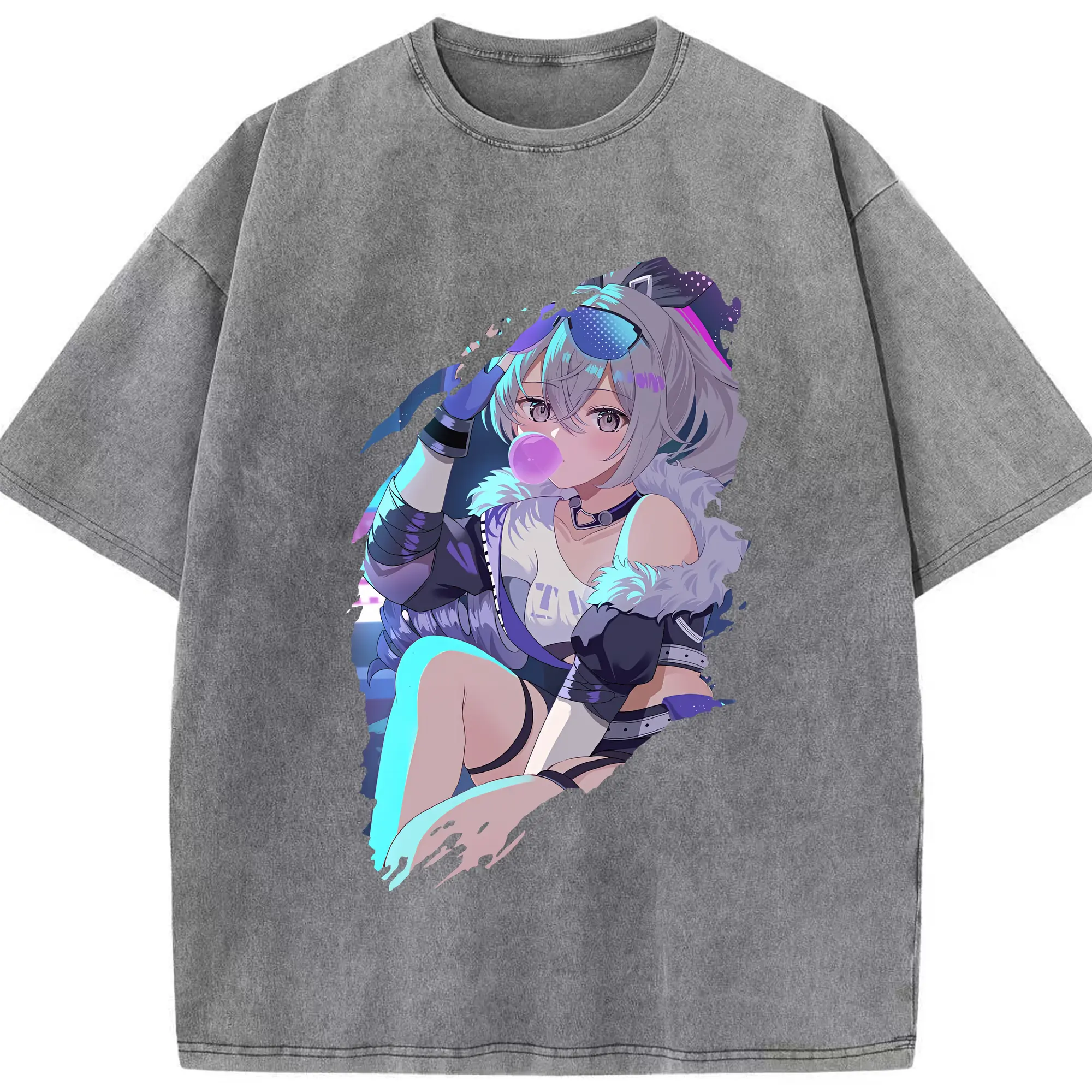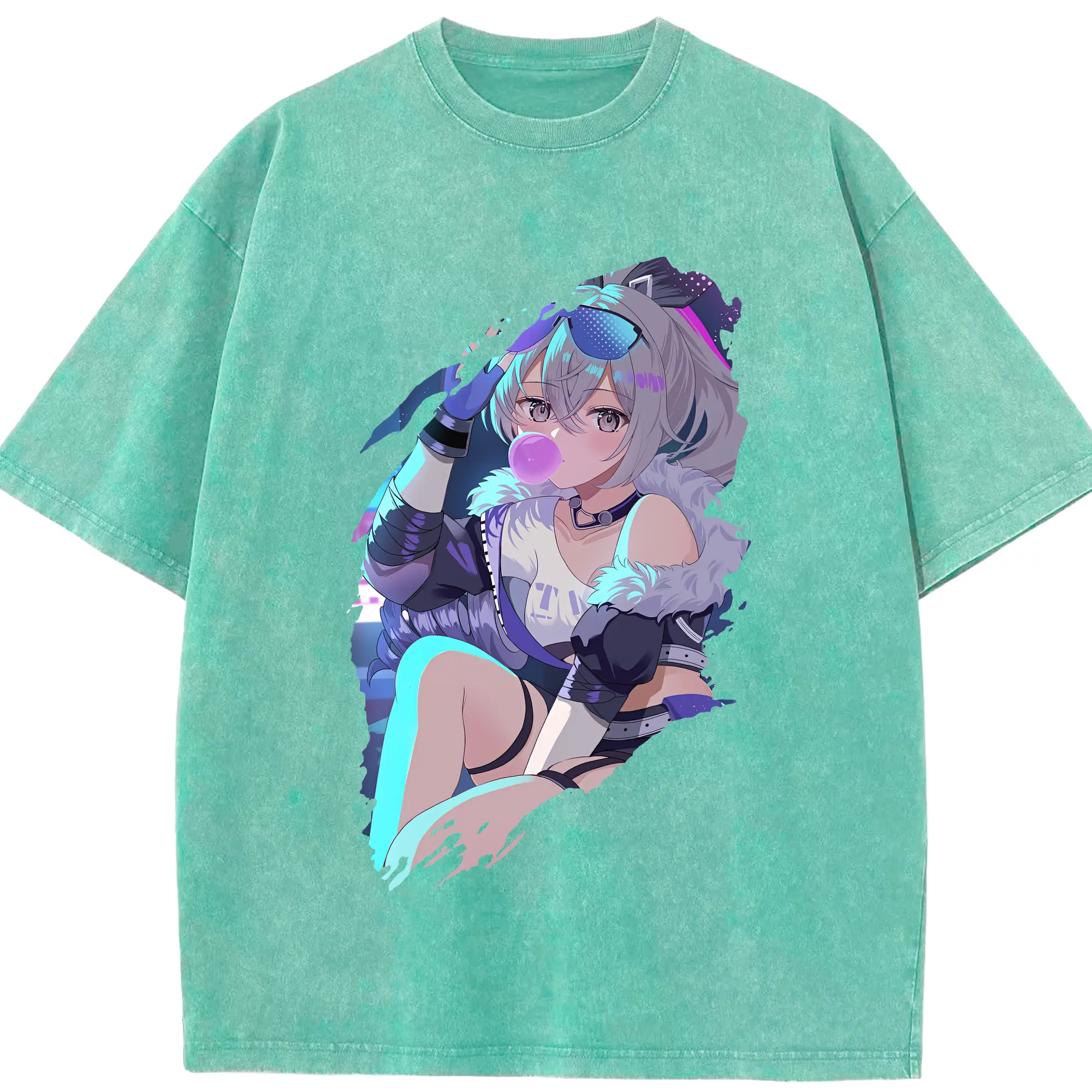崩壊:スターレイル グッズ 銀狼 - 綿100% ヴィンテージ風 半袖Tシャツ ・ 背面プリント ・ 柔らか肌触り ・ 通気性 快適 ・ スポーツ カジュアル 外出用