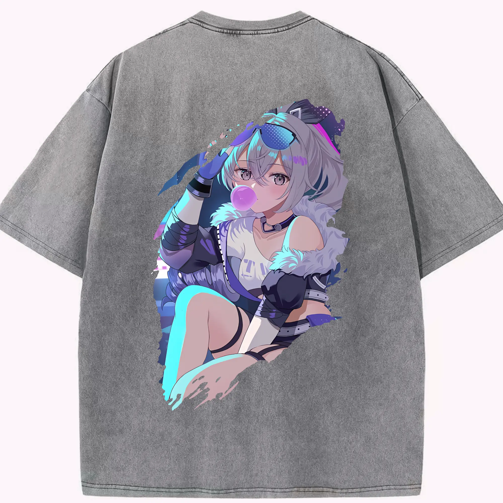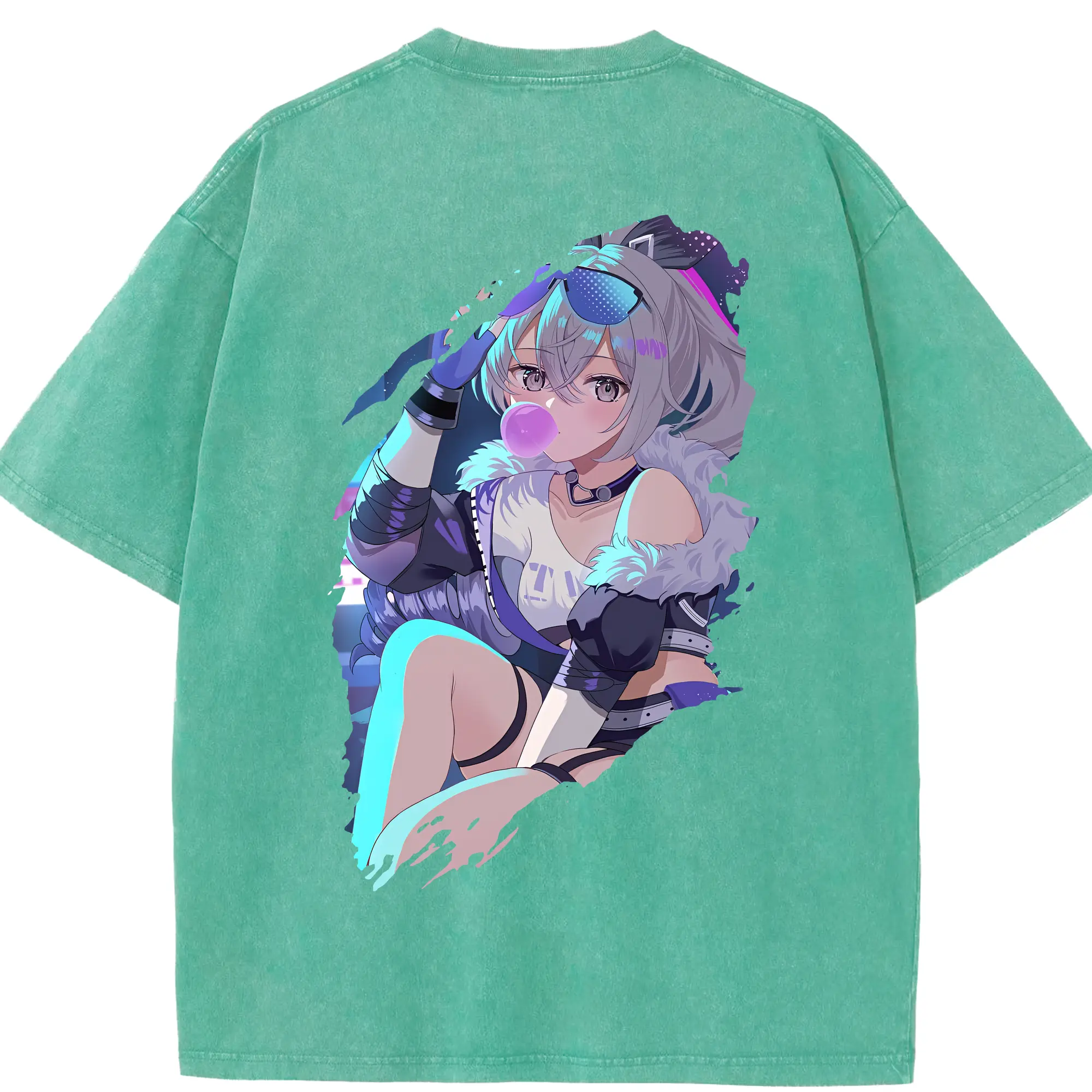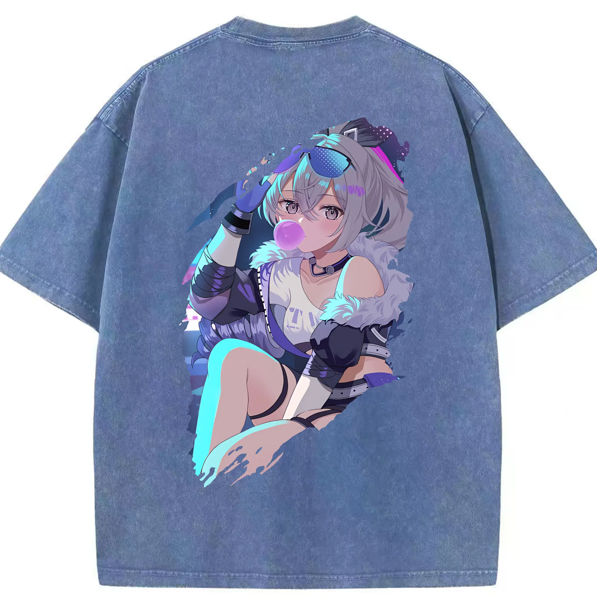 崩壊:スターレイル グッズ 銀狼 - 綿100% ヴィンテージ風 半袖Tシャツ ・ フロントプリント ・ 柔らか肌触り ・ 通気性 快適 ・ スポーツ カジュアル 外出用