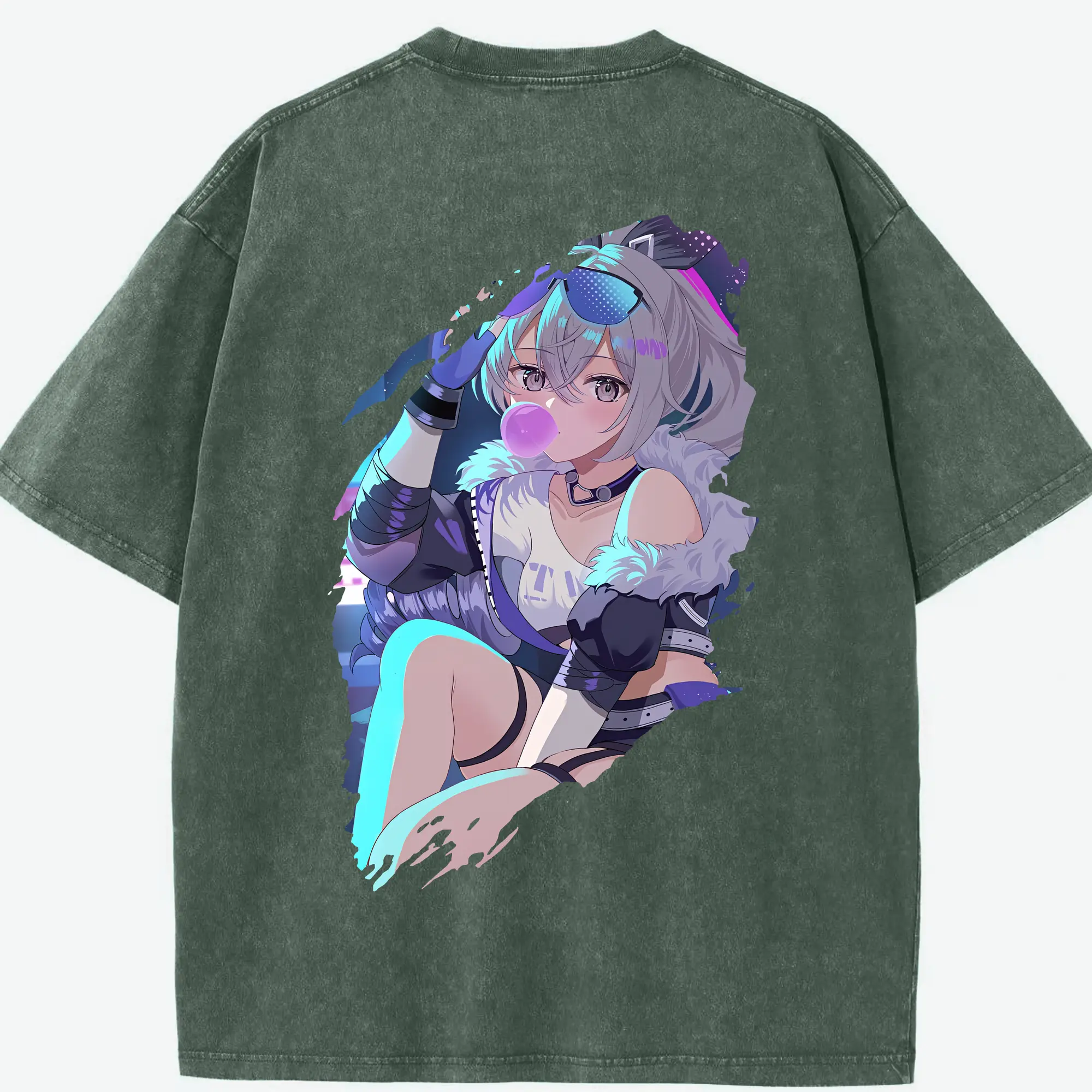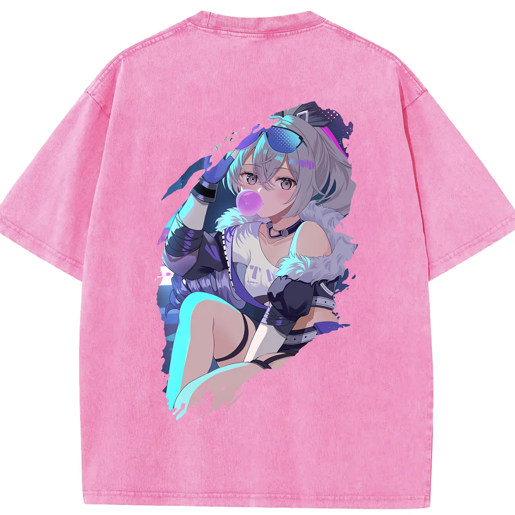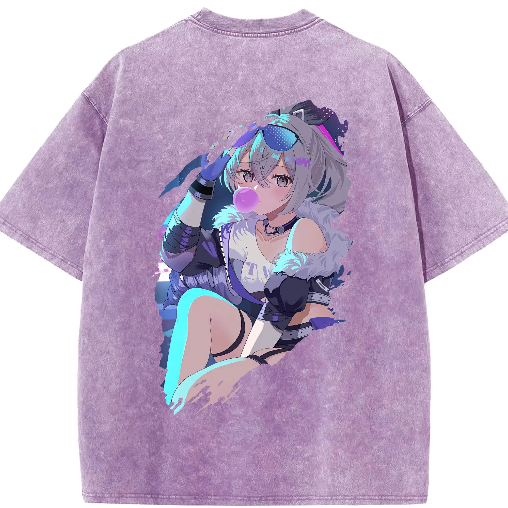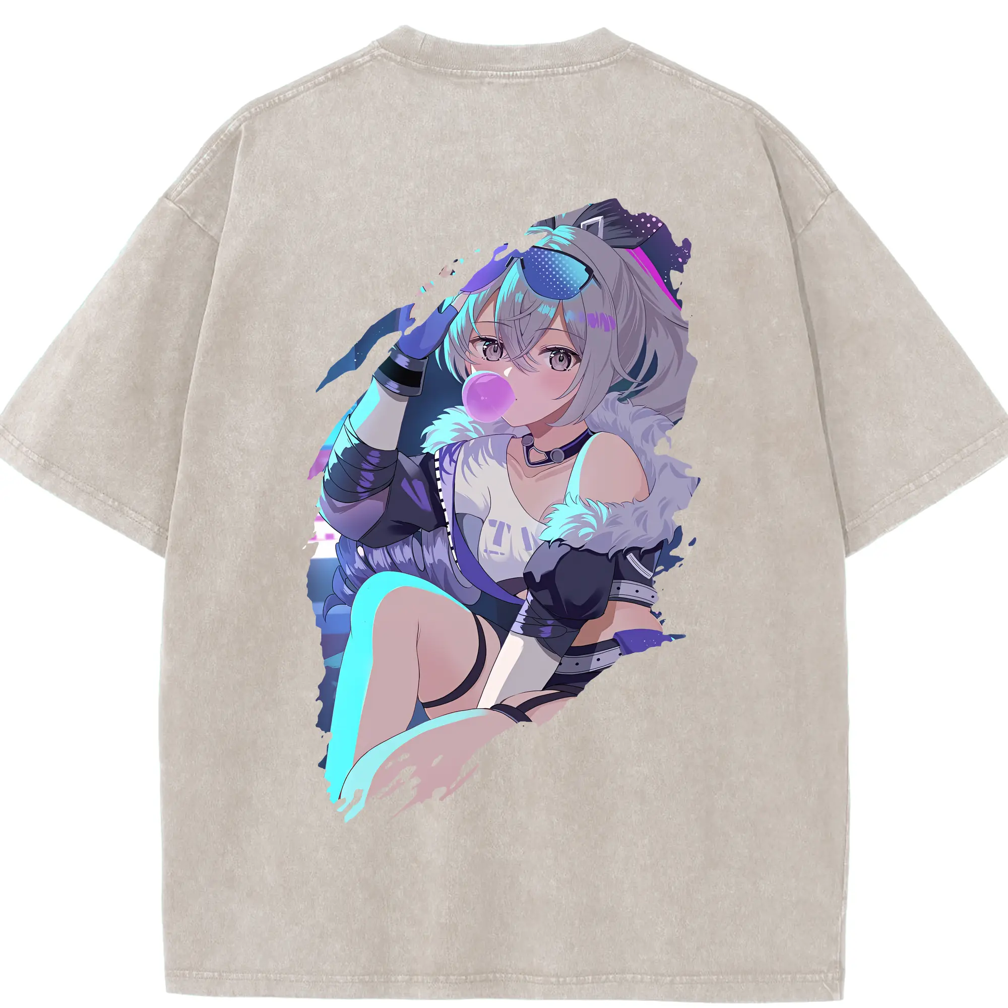崩壊:スターレイル グッズ 銀狼 - 綿100% ヴィンテージ風 半袖Tシャツ ・ フロントプリント ・ 柔らか肌触り ・ 通気性 快適 ・ スポーツ カジュアル 外出用