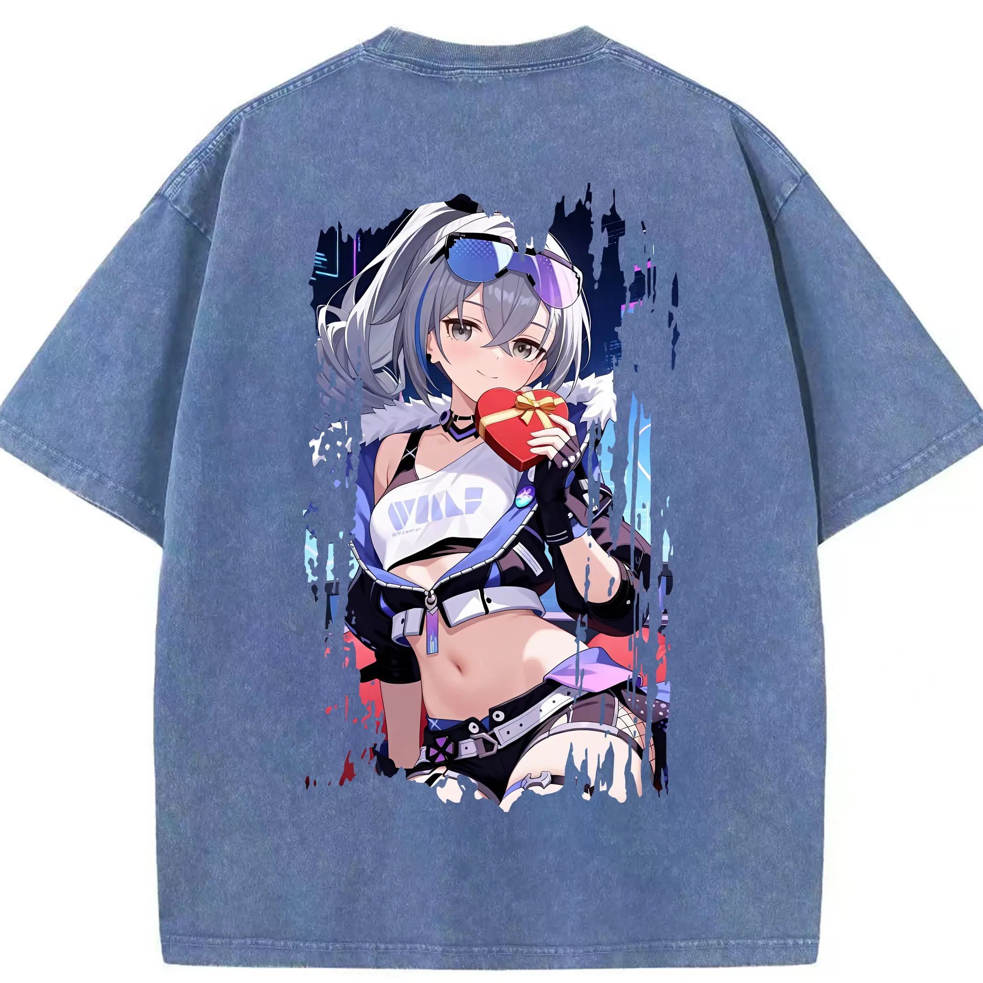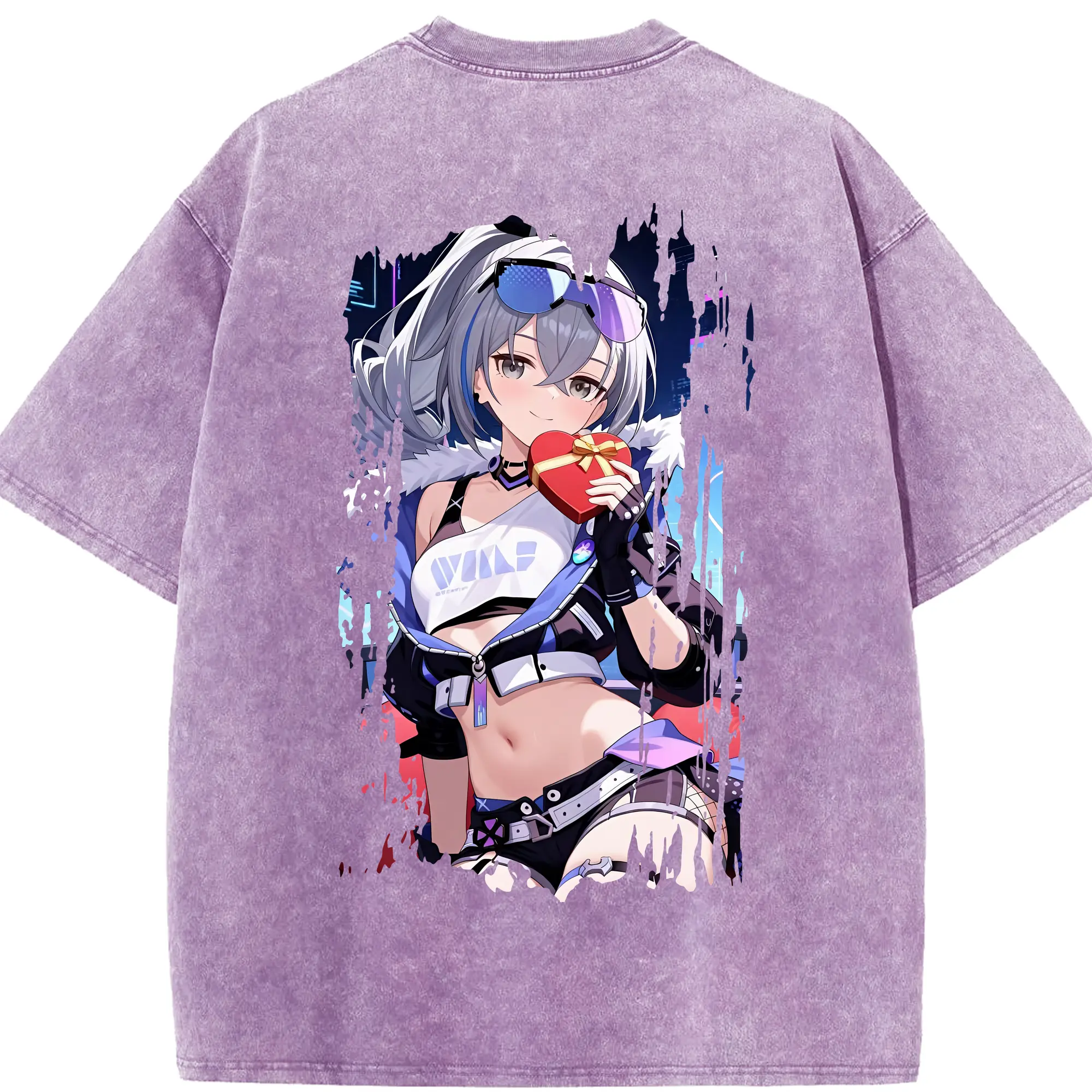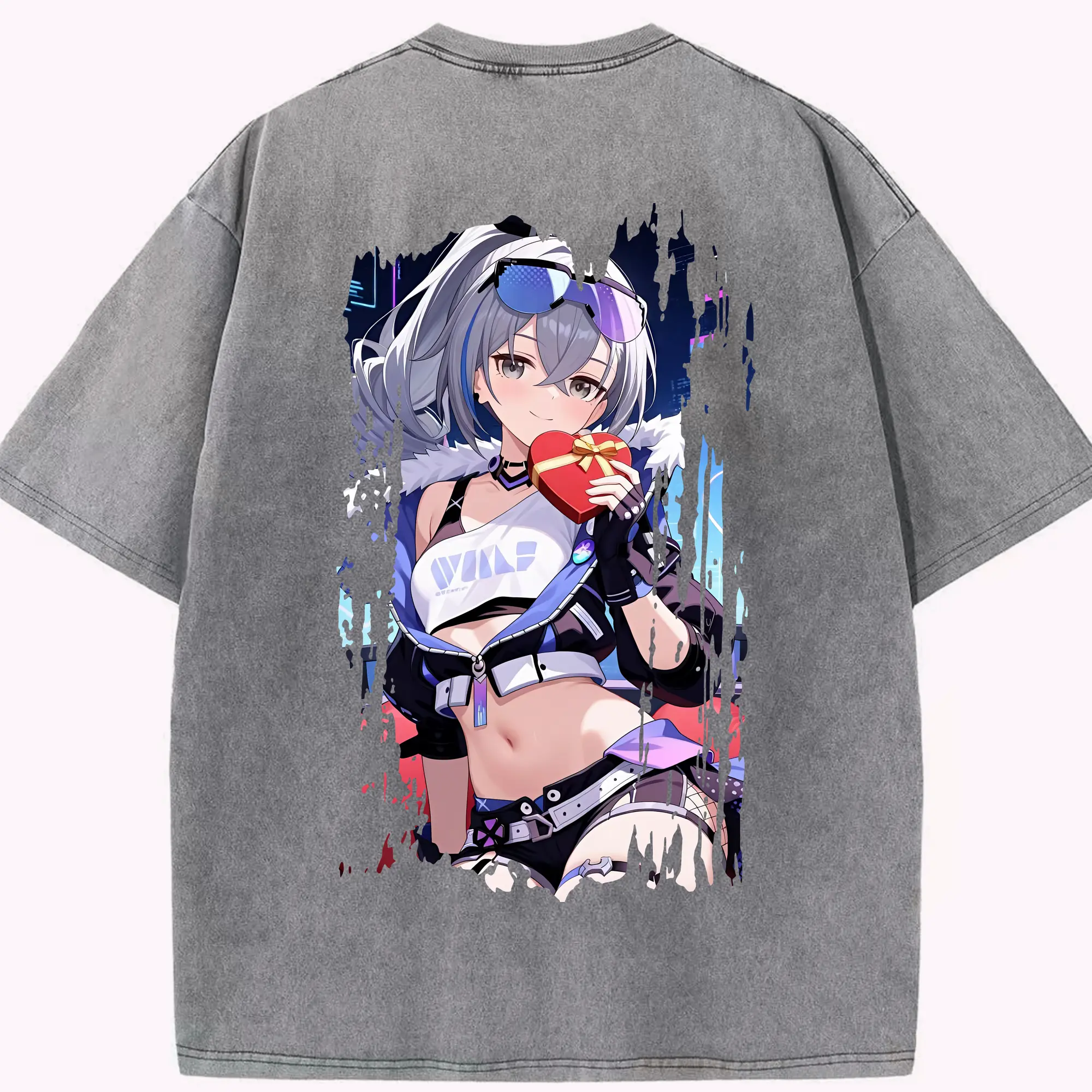 崩壊:スターレイル グッズ 銀狼 - 綿100% ヴィンテージ風 半袖Tシャツ ・ フロントプリント ・ 柔らか肌触り ・ 通気性 快適 ・ スポーツ カジュアル 外出用