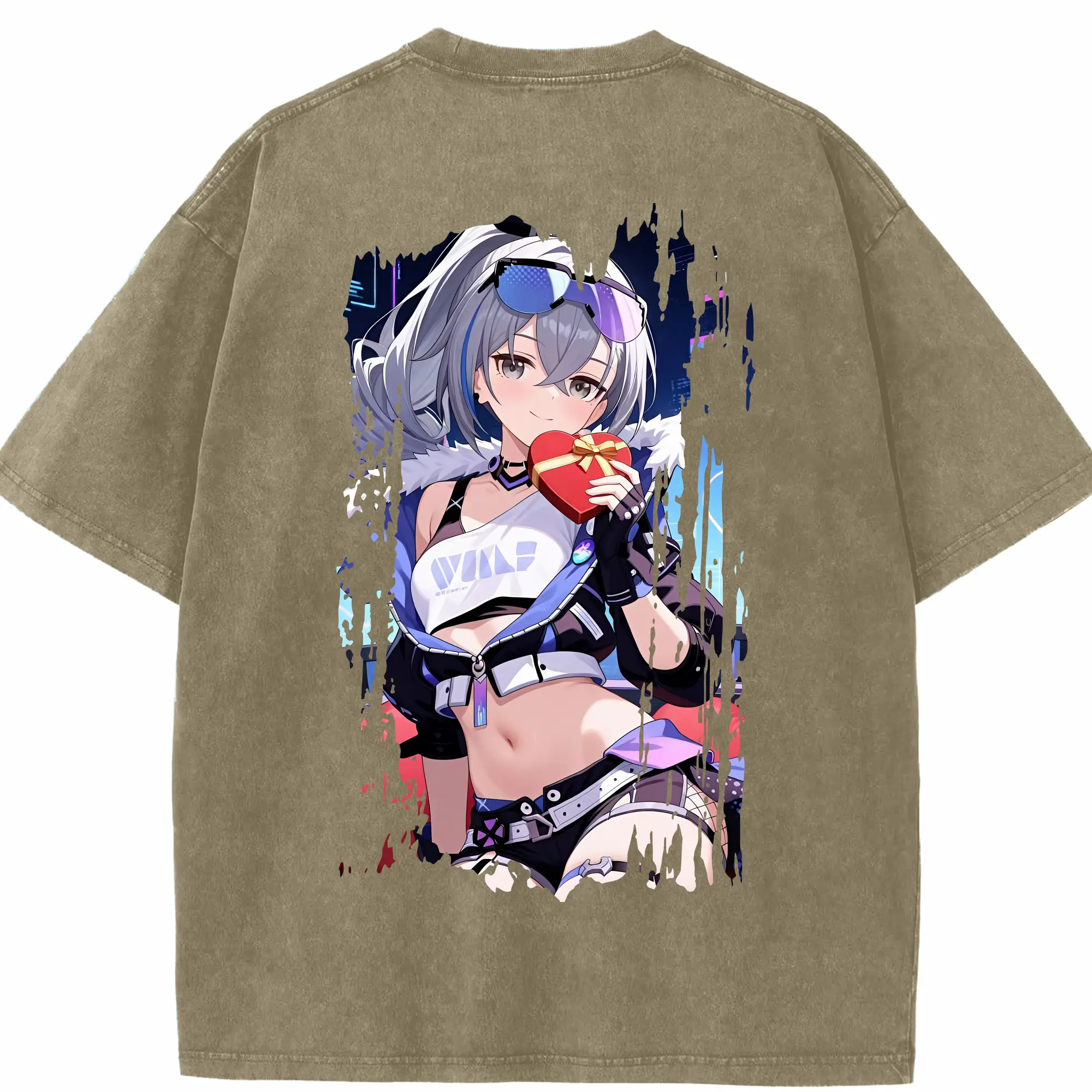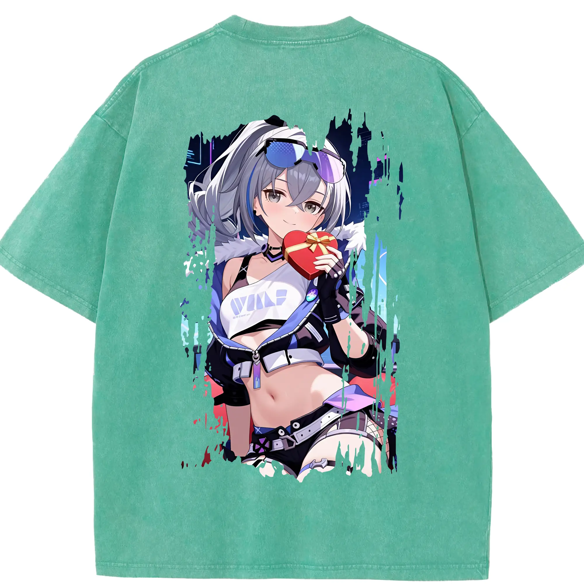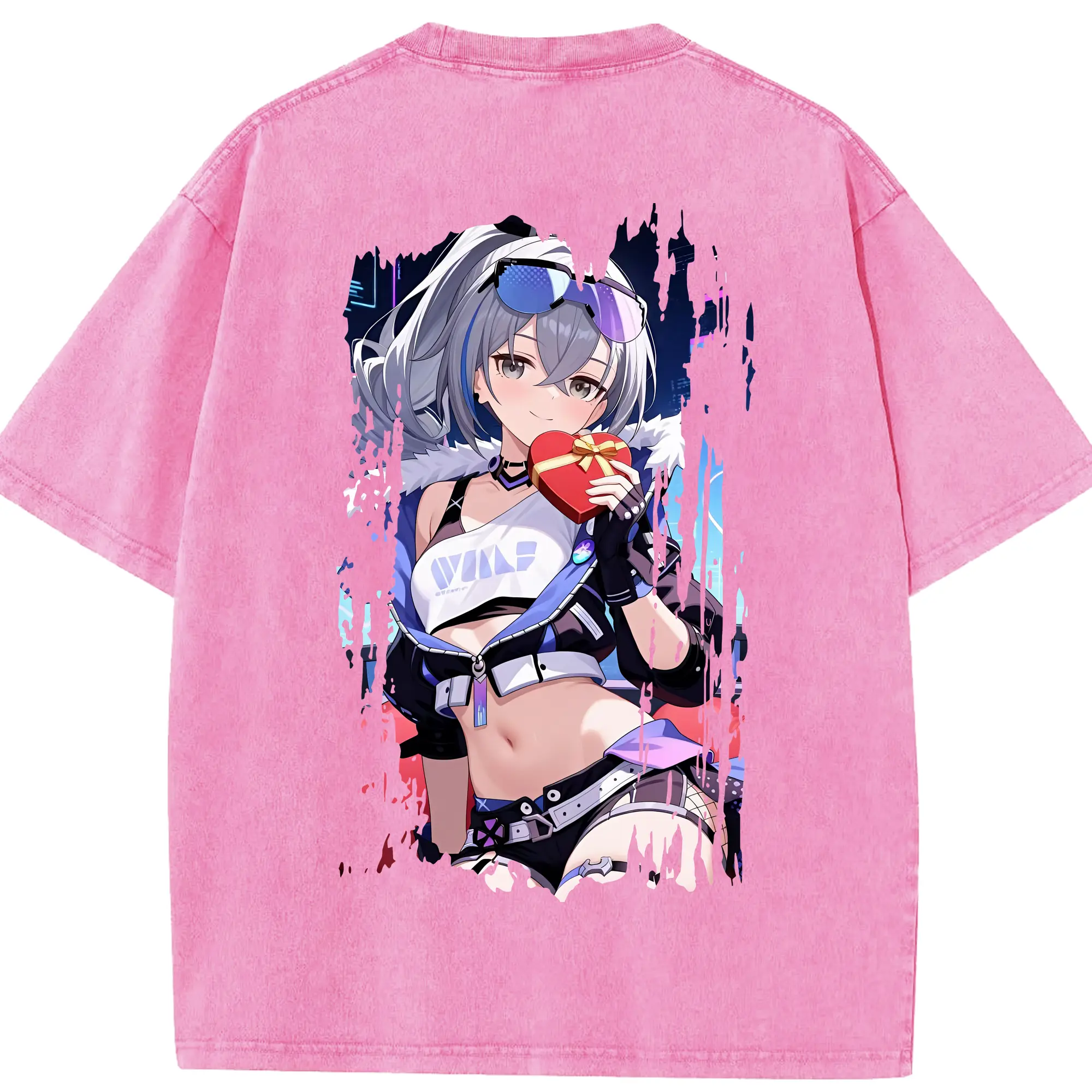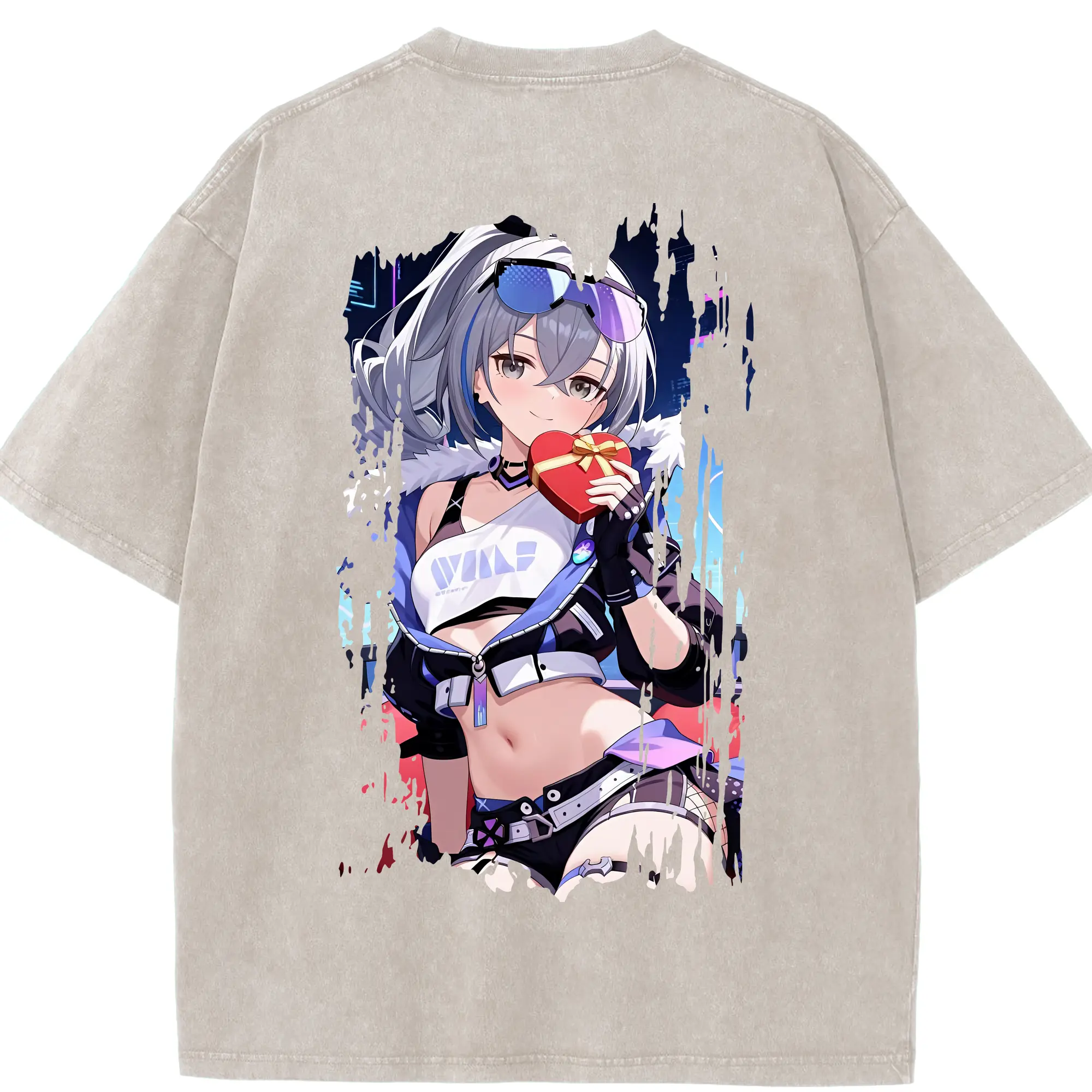 崩壊:スターレイル グッズ 銀狼 - 綿100% ヴィンテージ風 半袖Tシャツ ・ フロントプリント ・ 柔らか肌触り ・ 通気性 快適 ・ スポーツ カジュアル 外出用