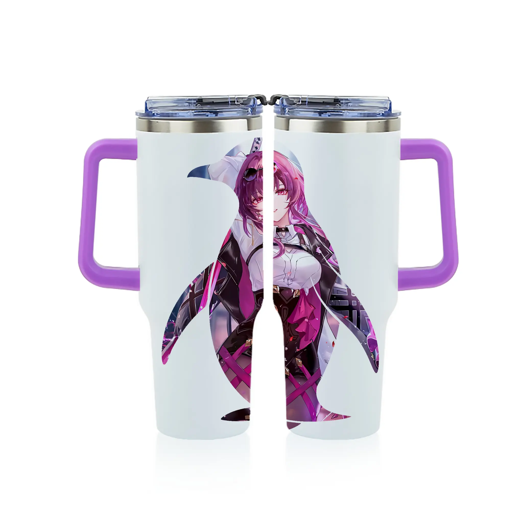 崩壊:スターレイル グッズ カフカ - 1200mL フルプリント車用タンブラー ・ 304ステンレス 内側 ・ 201ステンレス 外側 ・ 保温 保冷 ・ 通勤 ドライブ アウトドア用