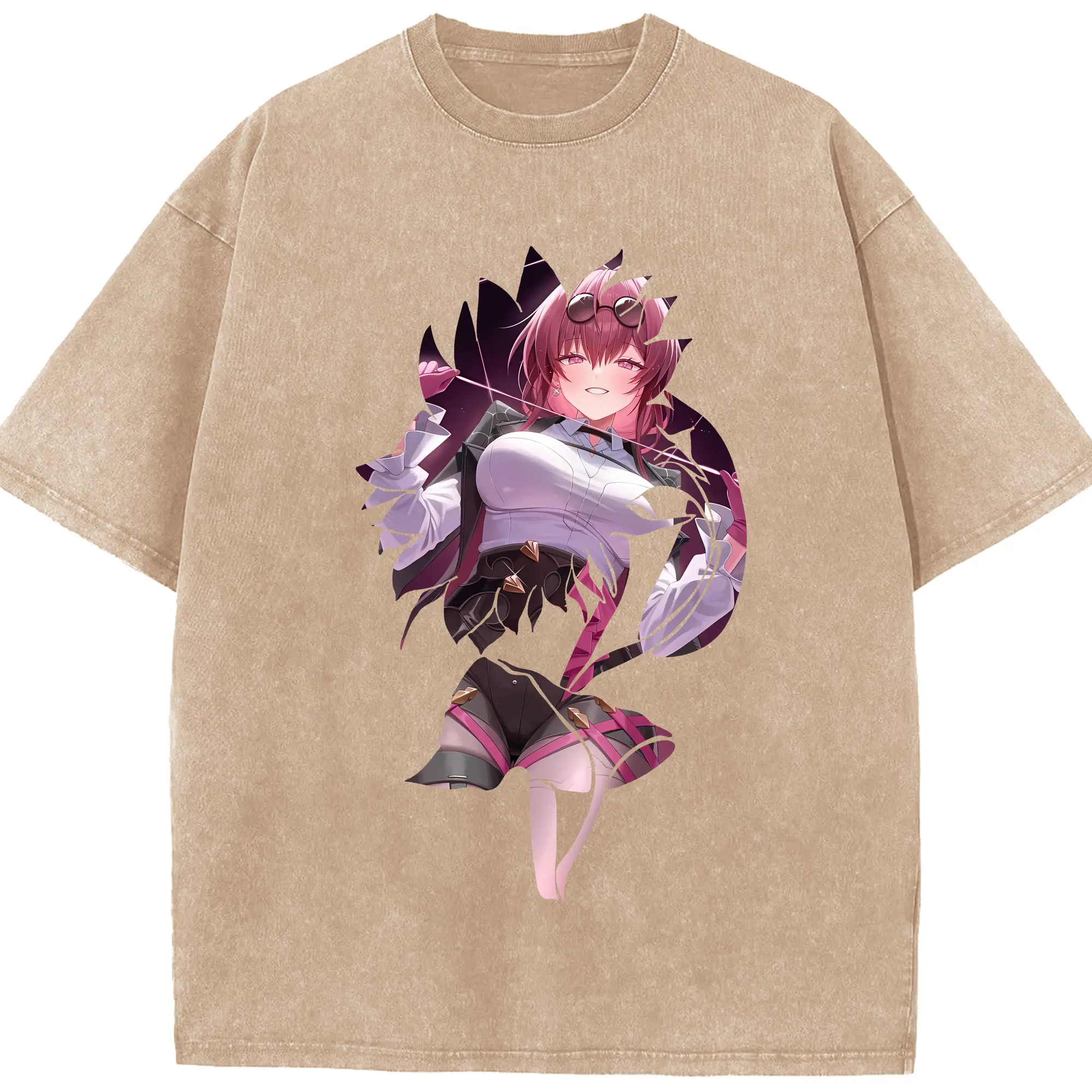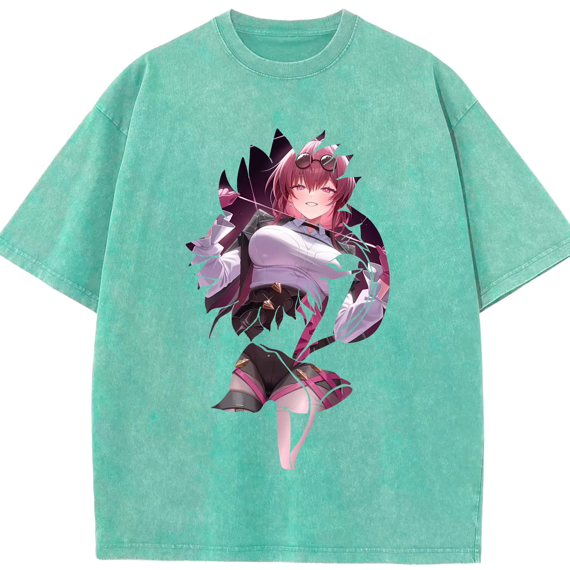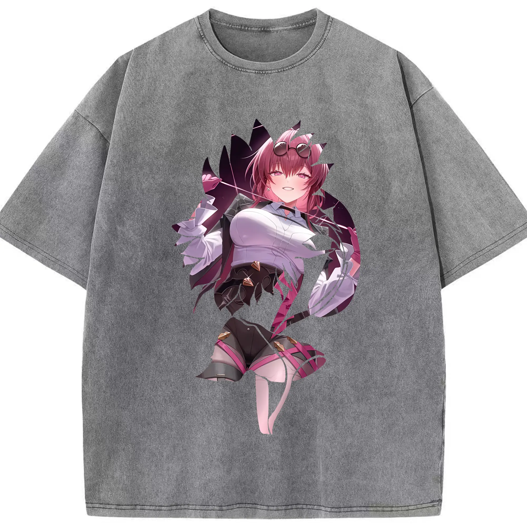 崩壊:スターレイル グッズ カフカ - 綿100% ヴィンテージ風 半袖Tシャツ ・ 背面プリント ・ 柔らか肌触り ・ 通気性 快適 ・ スポーツ カジュアル 外出用