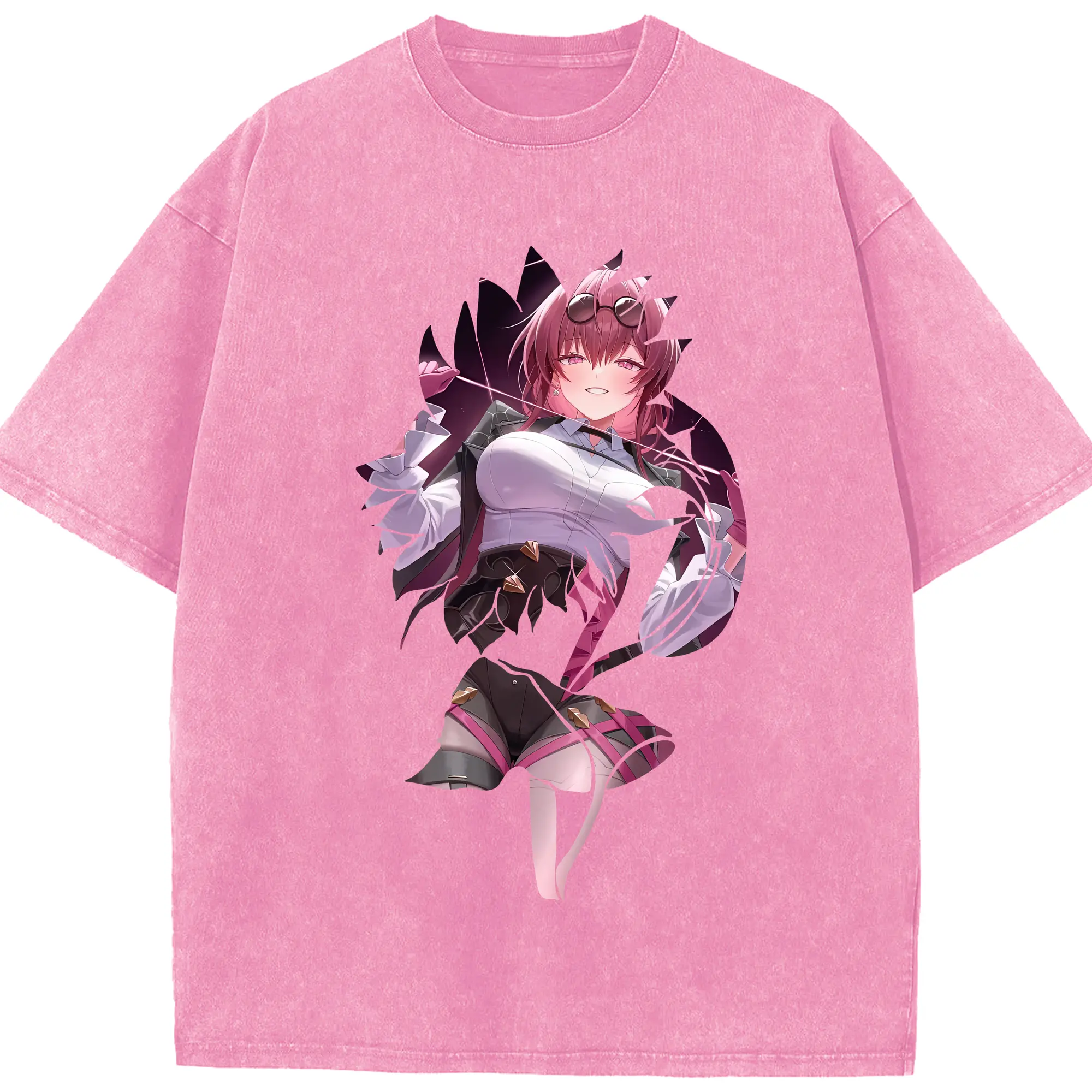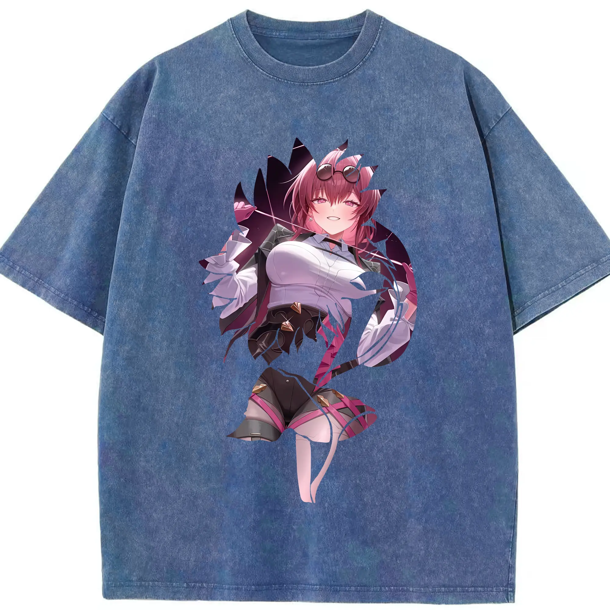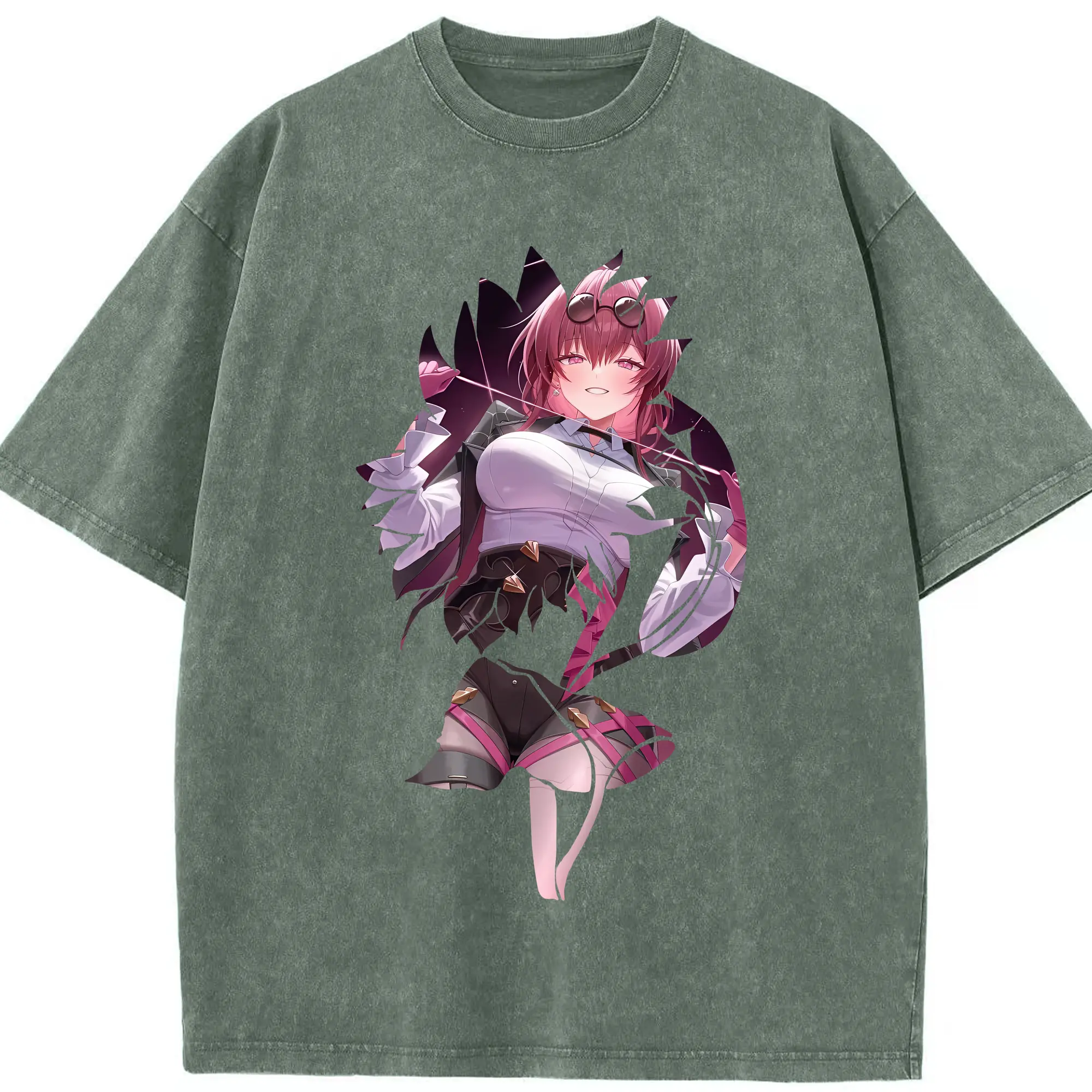 崩壊:スターレイル グッズ カフカ - 綿100% ヴィンテージ風 半袖Tシャツ ・ 背面プリント ・ 柔らか肌触り ・ 通気性 快適 ・ スポーツ カジュアル 外出用