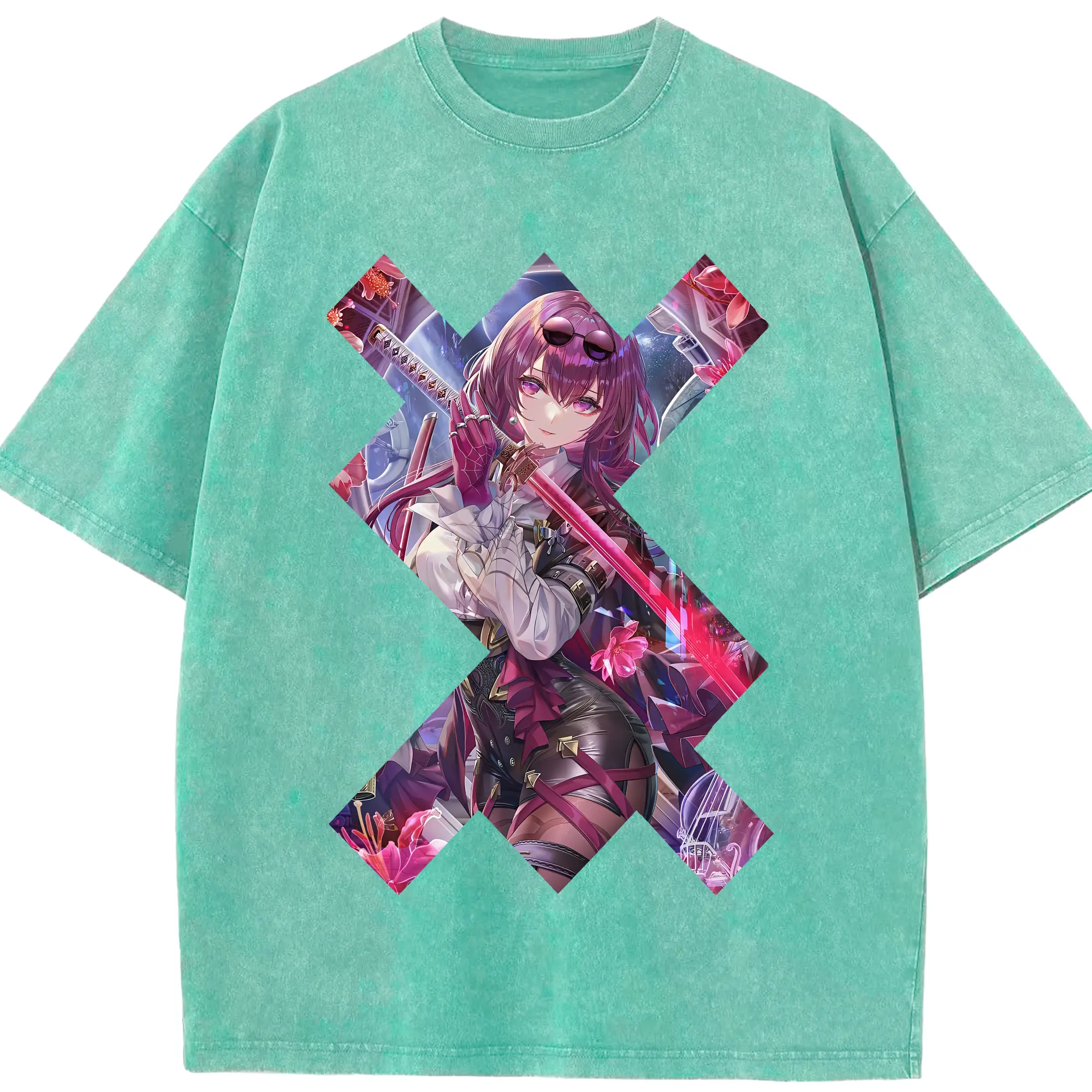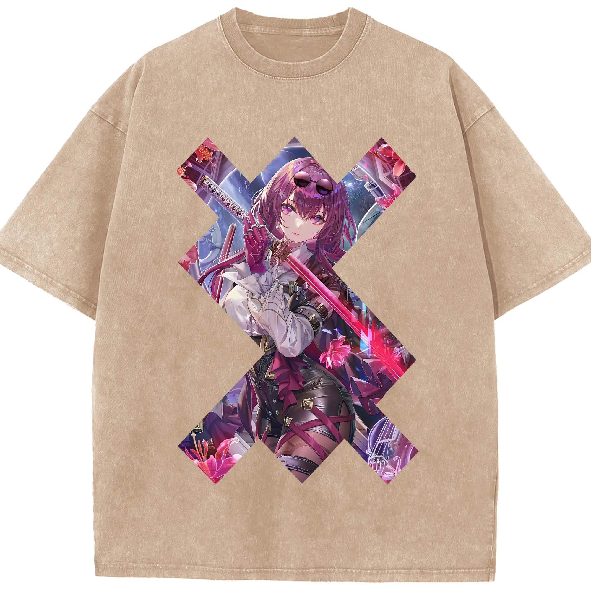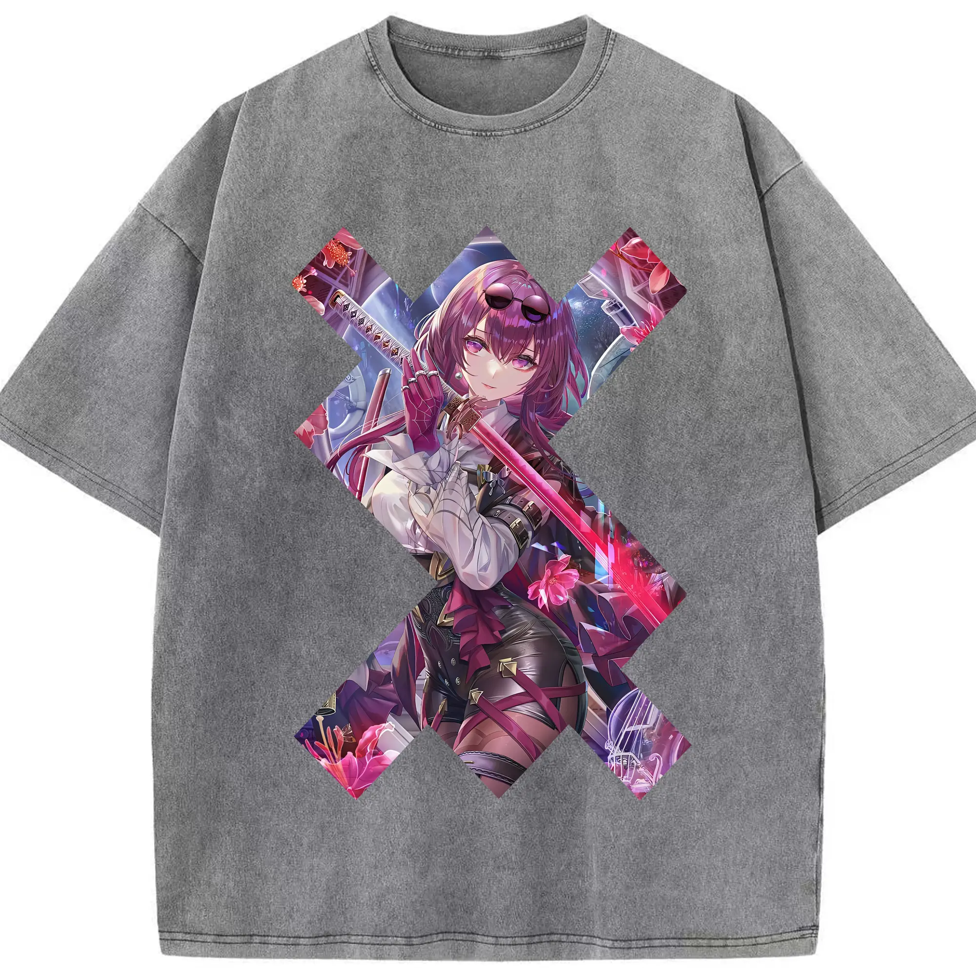 崩壊:スターレイル グッズ カフカ - 綿100% ヴィンテージ風 半袖Tシャツ ・ 背面プリント ・ 柔らか肌触り ・ 通気性 快適 ・ スポーツ カジュアル 外出用