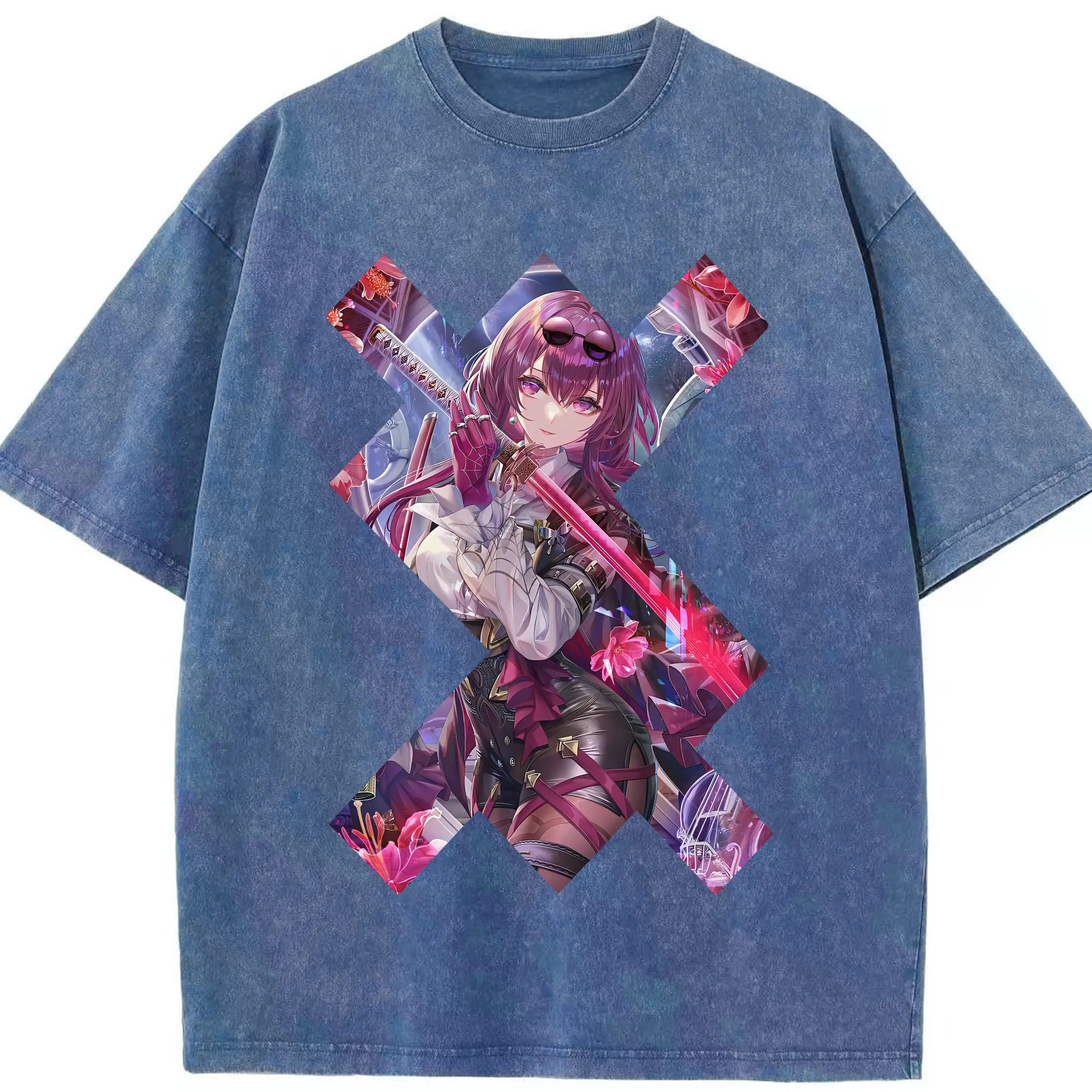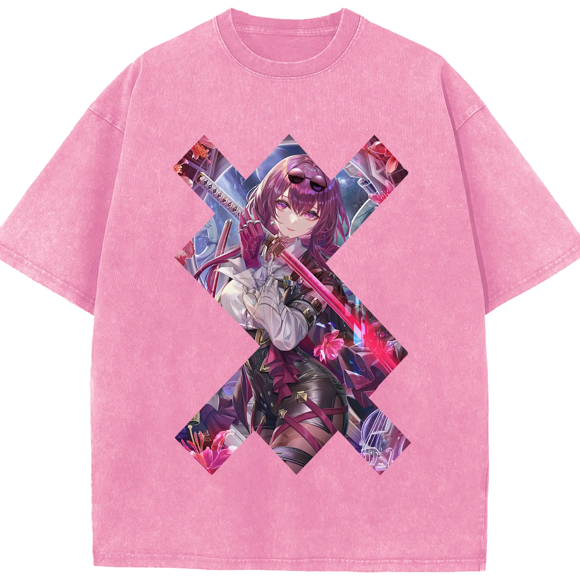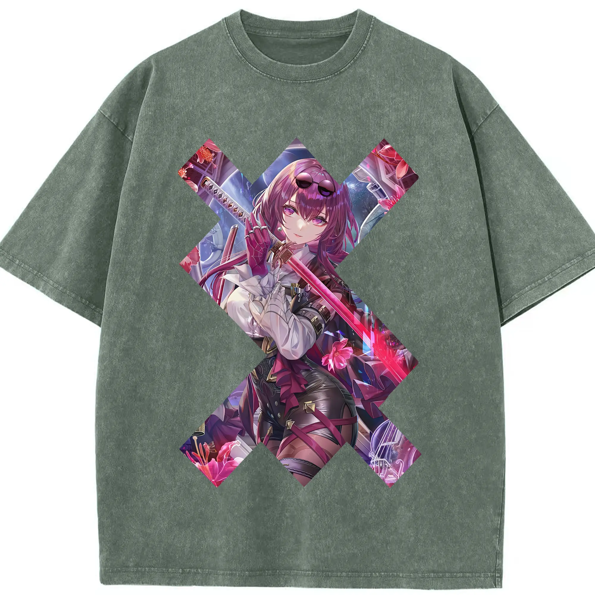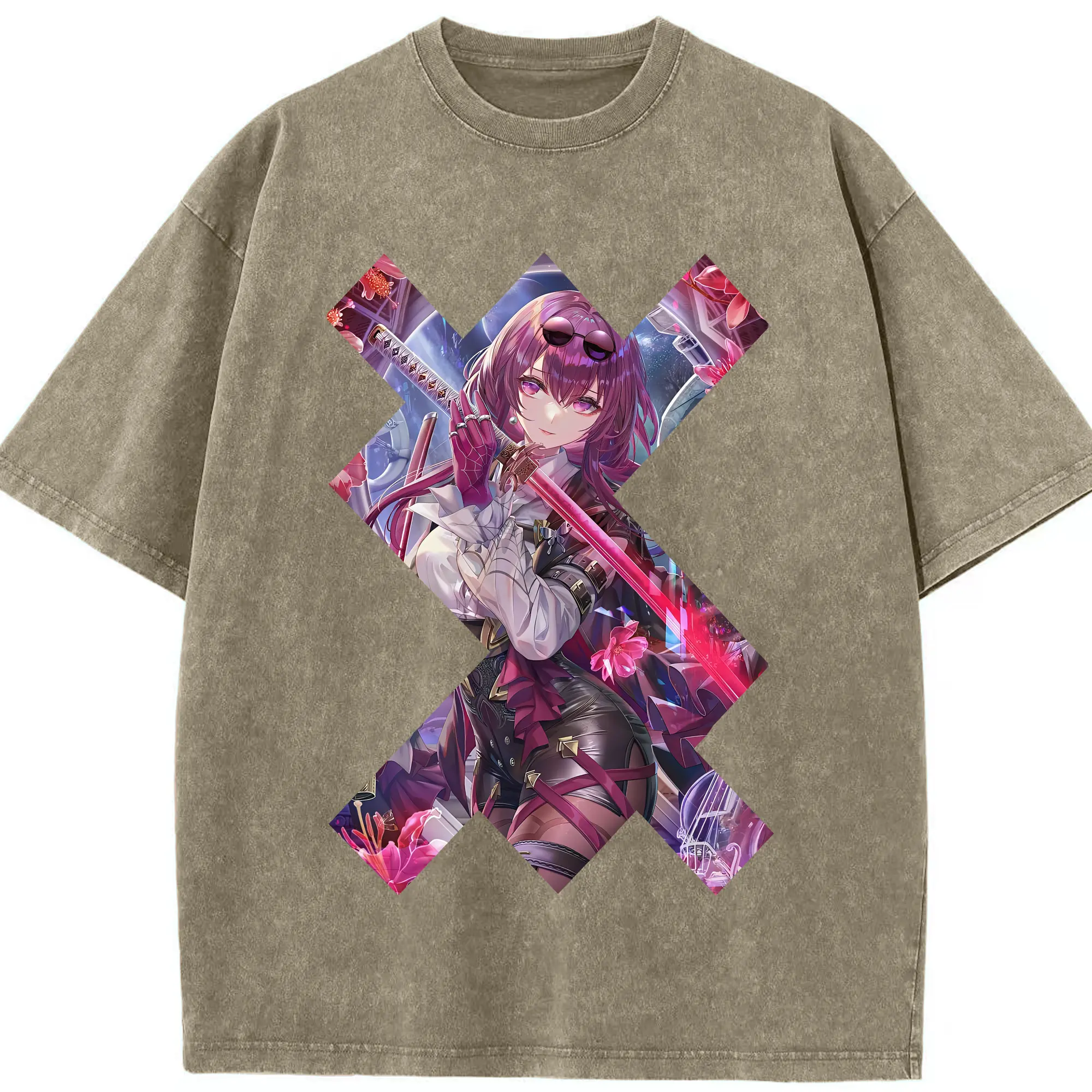 崩壊:スターレイル グッズ カフカ - 綿100% ヴィンテージ風 半袖Tシャツ ・ 背面プリント ・ 柔らか肌触り ・ 通気性 快適 ・ スポーツ カジュアル 外出用